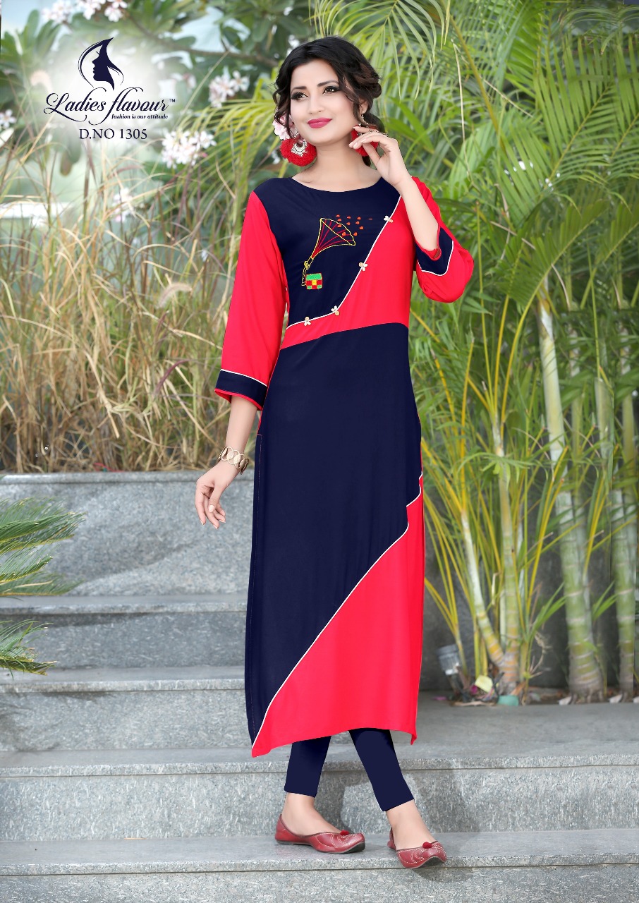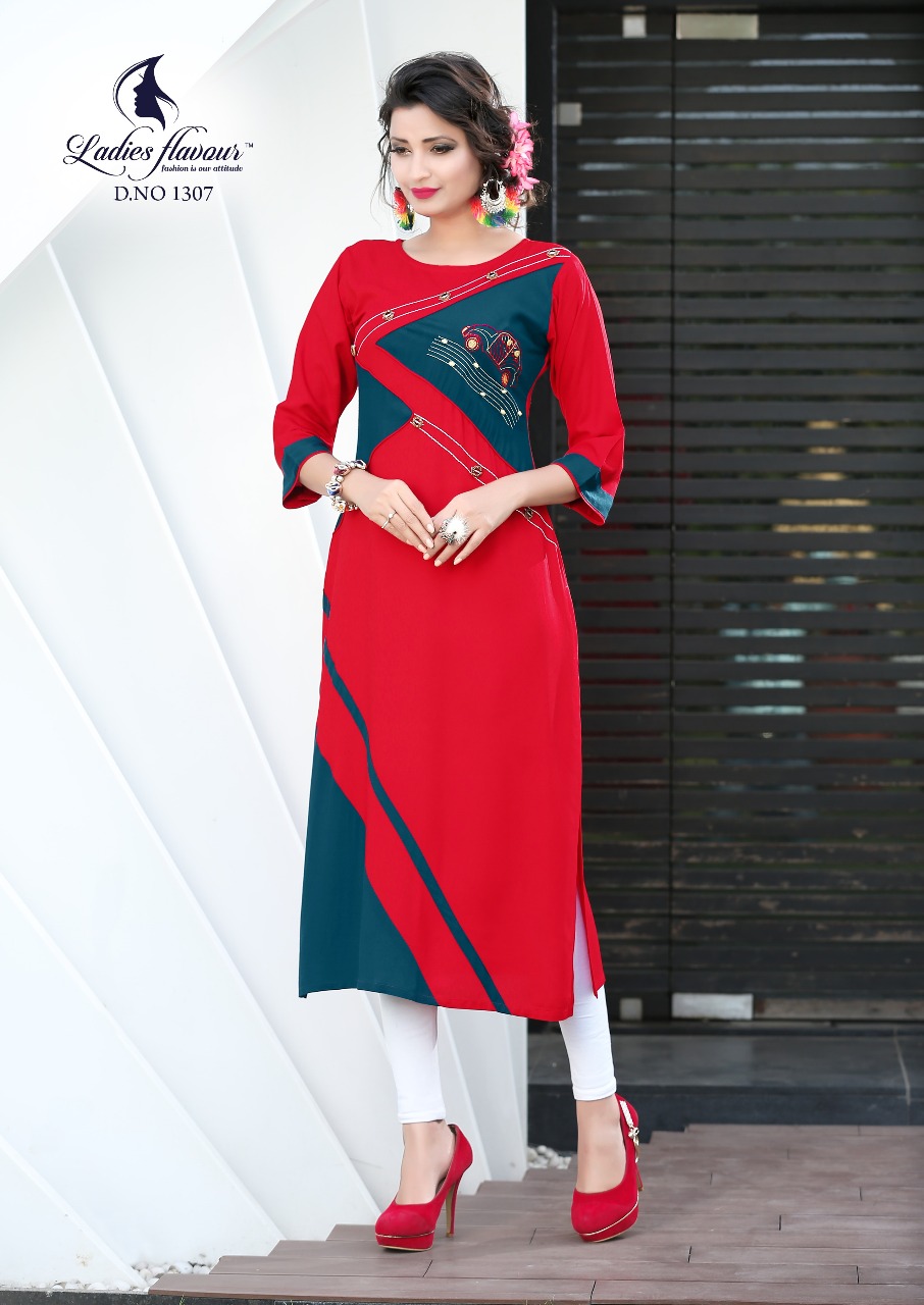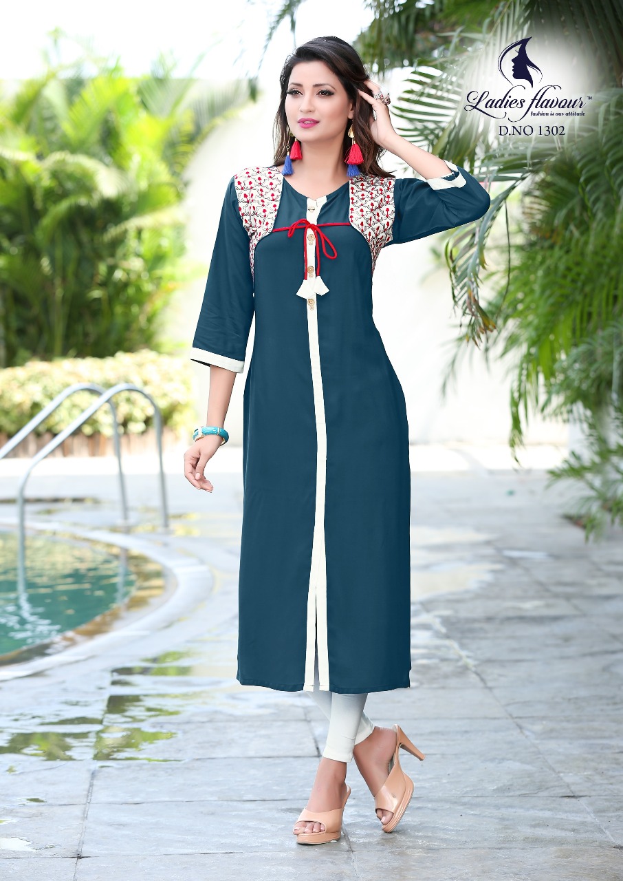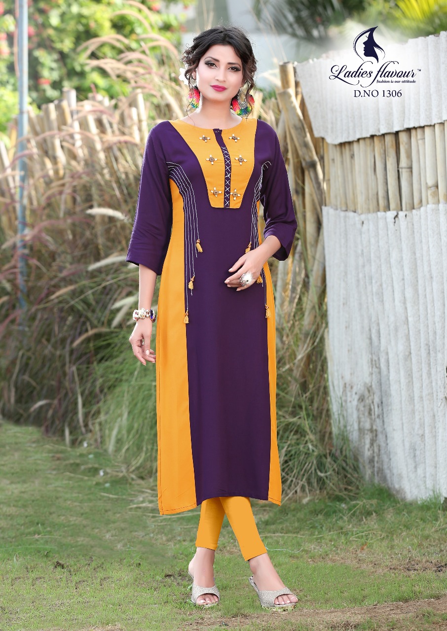 Buy Online Ladies Flavour Kudi 1301 Series Fancy Reyon Embroidery Kurti Catlog Wholesaler And Supplier Surat 7 Pcs of Full Catalogue at Wholesale Price. Looking for Ladies Flavour Kudi 1301 Series Fancy Reyon Embroidery Kurti Catlog Wholesaler And Supplier Surat Full Catalouge at Best Price? Buy Now Ladies Flavour Kudi 1301 Series Fancy Reyon Embroidery Kurti Catlog Wholesaler And Supplier Surat at Wholesale Rate of Rs 3150 with Total 7 Pcs from authroized dealer and supplier of Ladies Flavour Brand. Cost of Each piece is just only Rs 450 which is very low and affordable price to resale the product in your retail store ,This is Surat based Wholesale Supplier & Dealer of Ladies Flavour Brand. Click on Brand name to Know more about Ladies Flavour Brand's products.Call or Whatsapp on 9898838984 for booking or enquiry