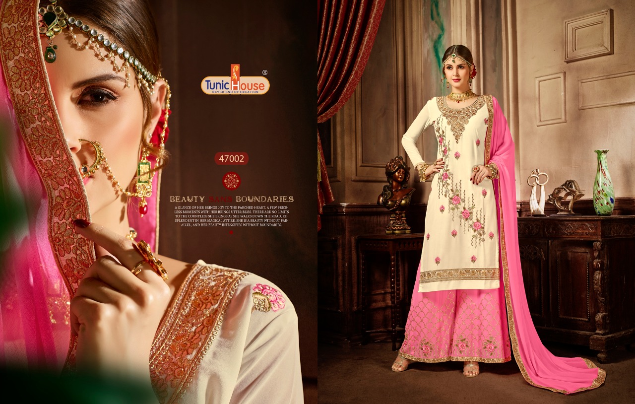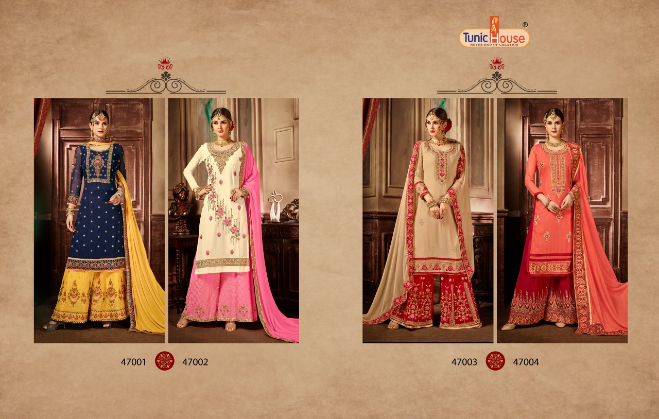 Buy Online Lado By Tunic House 47001 Series Sarara Pakistani Style Salwar Kameez 4 Pcs of Full Catalogue at Wholesale Price. Looking for Lado By Tunic House 47001 Series Sarara Pakistani Style Salwar Kameez Full Catalouge at Best Price? Buy Now Lado By Tunic House 47001 Series Sarara Pakistani Style Salwar Kameez at Wholesale Rate of Rs 7180 with Total 4 Pcs from authroized dealer and supplier of TUNIC HOUSE Brand. Cost of Each piece is just only Rs 1795 which is very low and affordable price to resale the product in your retail store ,This is Surat based Wholesale Supplier & Dealer of TUNIC HOUSE Brand. Click on Brand name to Know more about TUNIC HOUSE Brand's products.Call or Whatsapp on 9898838984 for booking or enquiry