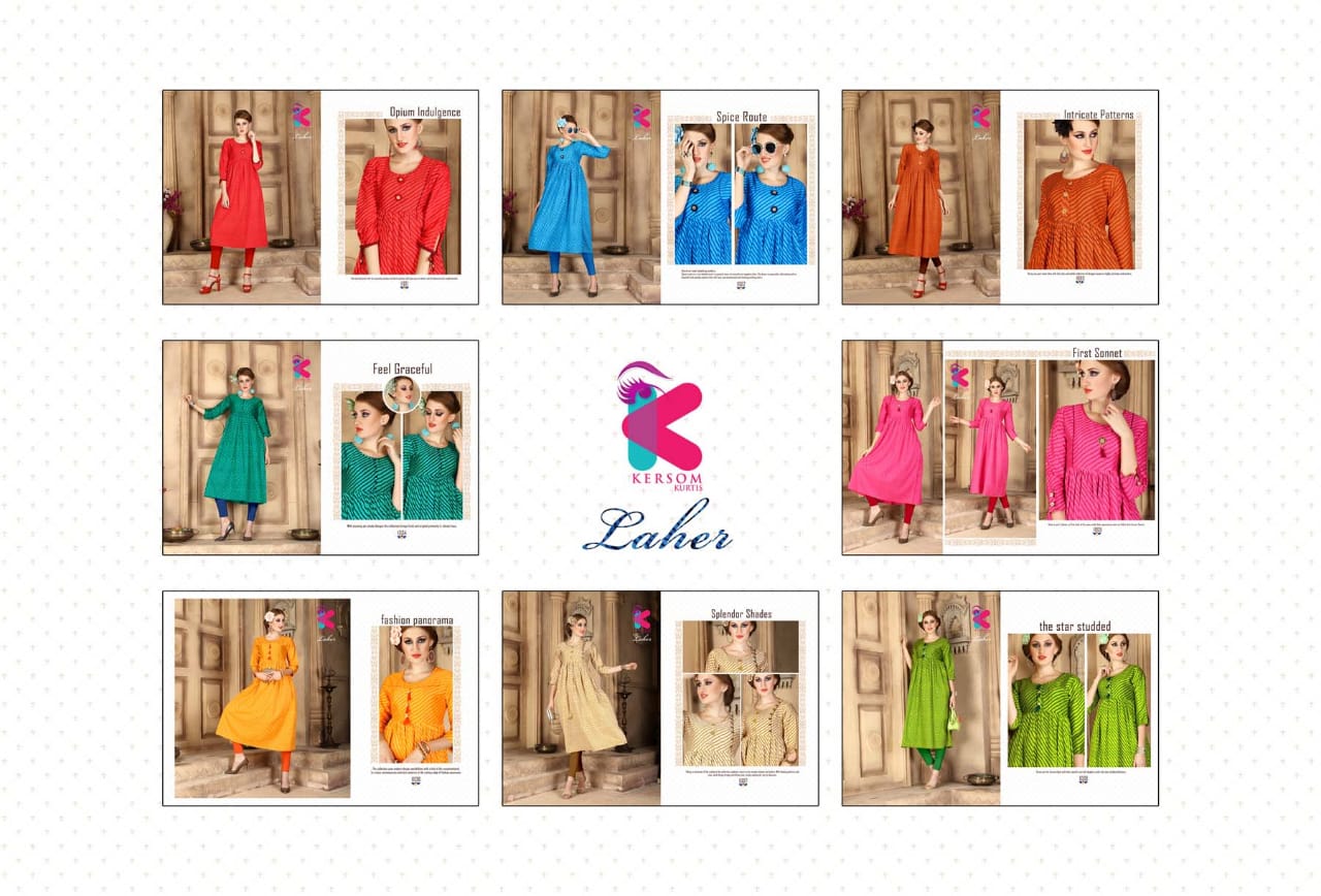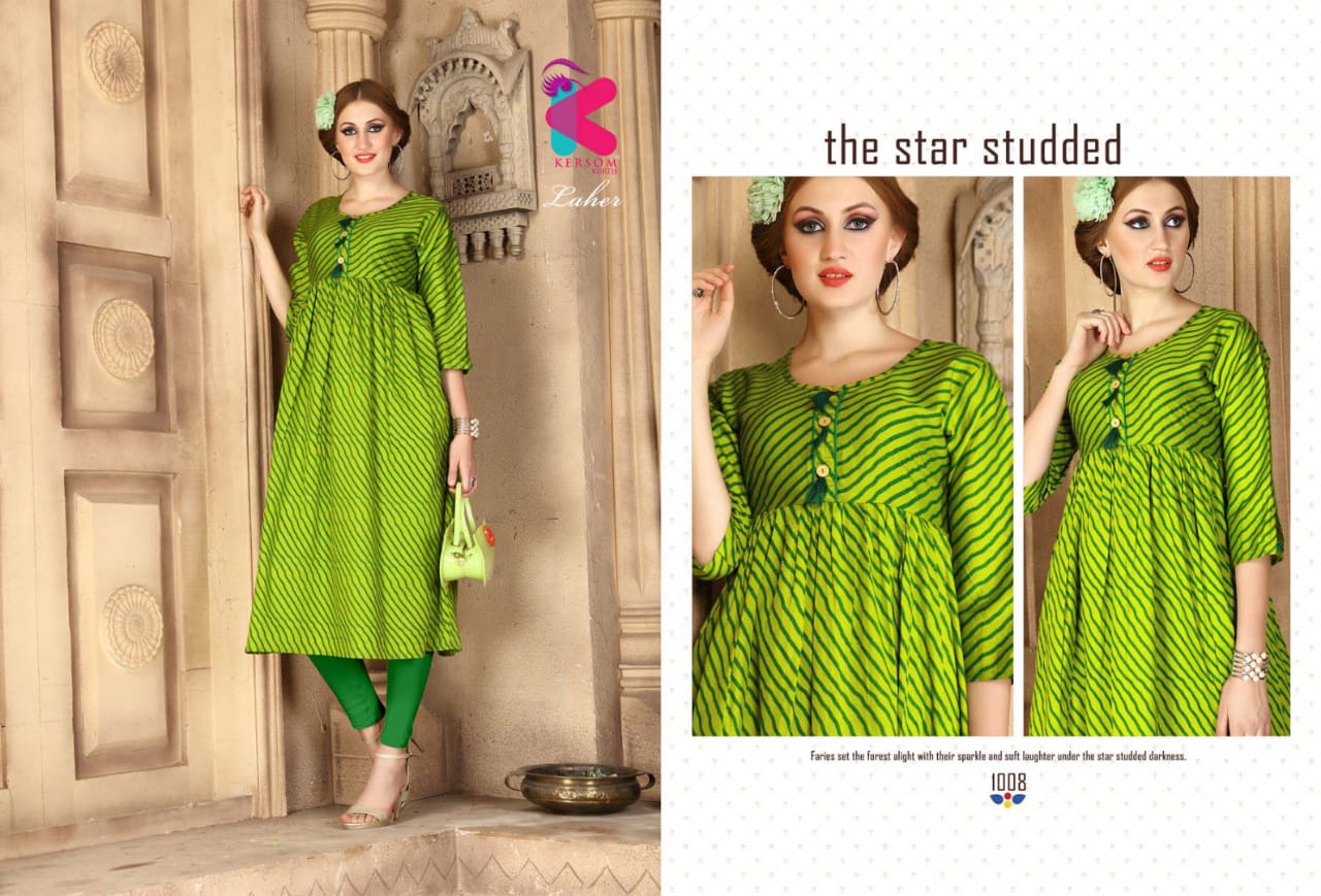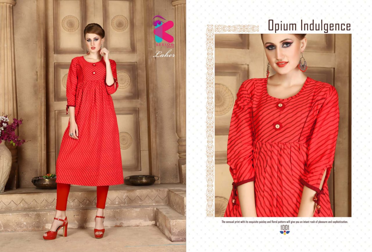 Laher By Kersom Kurties 1001 Series Fancy Satin Printed Kurti Catlog Wholesale Dealer Surat