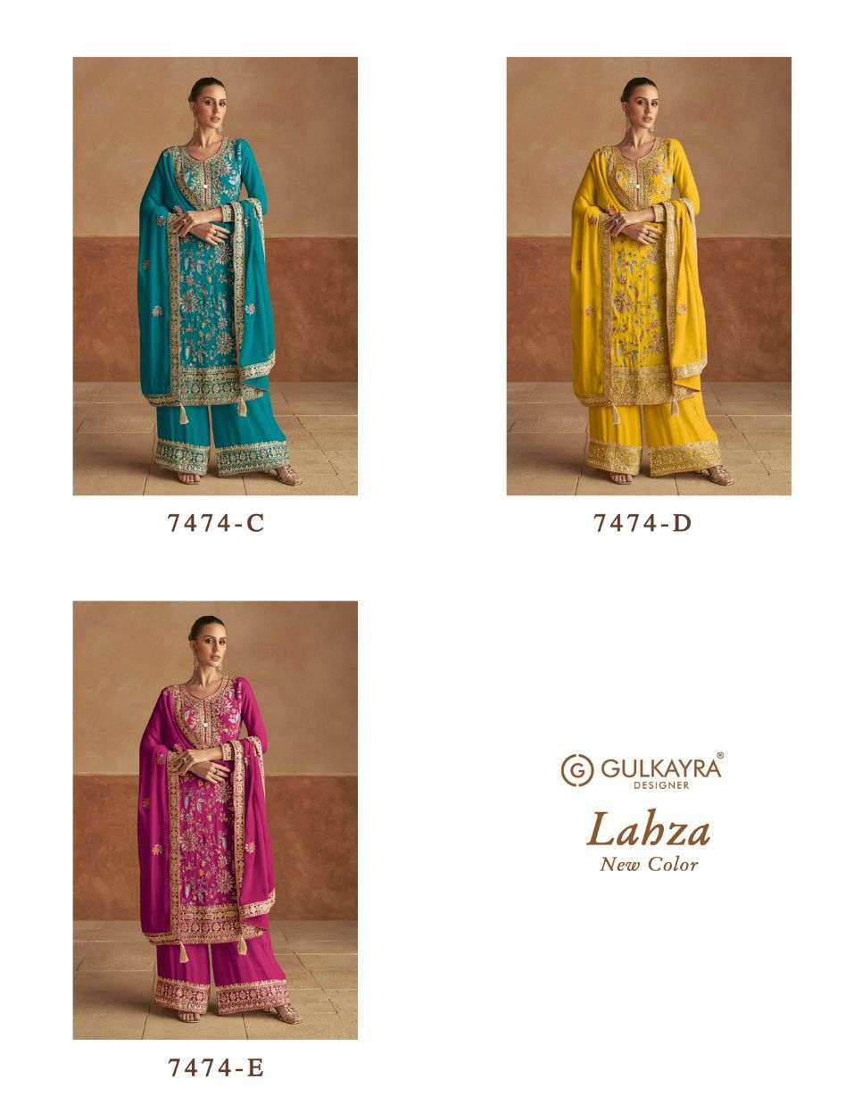 Buy Online LAHZA NEW COLOUR by Gulkayra Designer Real Chinon suit collection manufacturer surat 3 Pcs of Full Catalogue at Wholesale Price. Looking for LAHZA NEW COLOUR by Gulkayra Designer Real Chinon suit collection manufacturer surat Full Catalouge at Best Price? Buy Now LAHZA NEW COLOUR by Gulkayra Designer Real Chinon suit collection manufacturer surat at Wholesale Rate of Rs 8700 with Total 3 Pcs from authroized dealer and supplier of Gulkayra designer Brand. Cost of Each piece is just only Rs 2900 which is very low and affordable price to resale the product in your retail store ,This is Surat based Wholesale Supplier & Dealer of Gulkayra designer Brand. Click on Brand name to Know more about Gulkayra designer Brand's products.Call or Whatsapp on 9898838984 for booking or enquiry