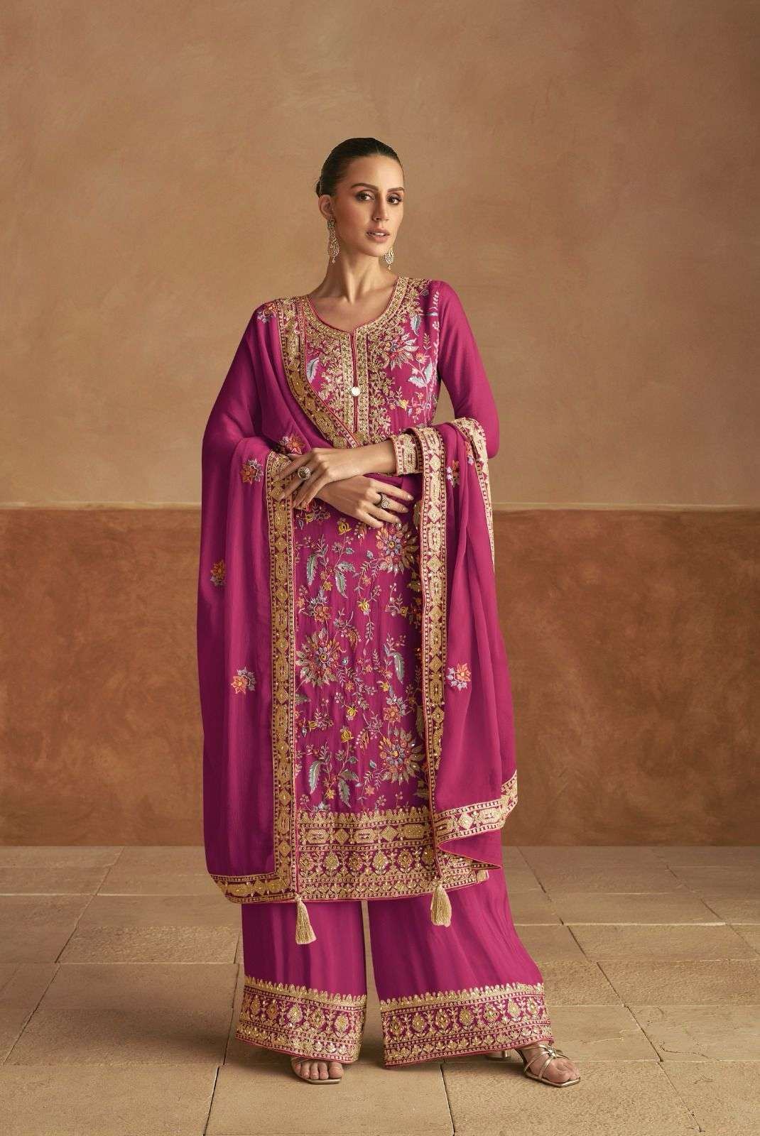 Fabric Detail…!! *_Top - Real Chinon_* *_Dupatta- Real Chinon_* *_Plazoo - Real Chinon_*