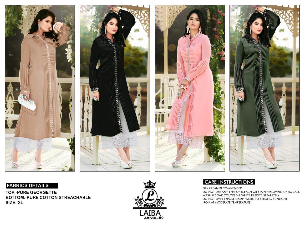 Buy Online Laiba Vol 50 Kurti With Designer Palazzo Pants Dealer And Exporter Surat 4 Pcs of Full Catalogue at Wholesale Price. Looking for Laiba Vol 50 Kurti With Designer Palazzo Pants Dealer And Exporter Surat Full Catalouge at Best Price? Buy Now Laiba Vol 50 Kurti With Designer Palazzo Pants Dealer And Exporter Surat at Wholesale Rate of Rs 3800 with Total 4 Pcs from authroized dealer and supplier of Brand. Cost of Each piece is just only Rs 950 which is very low and affordable price to resale the product in your retail store ,This is Surat based Wholesale Supplier & Dealer of Brand. Click on Brand name to Know more about Brand's products.Call or Whatsapp on 9898838984 for booking or enquiry