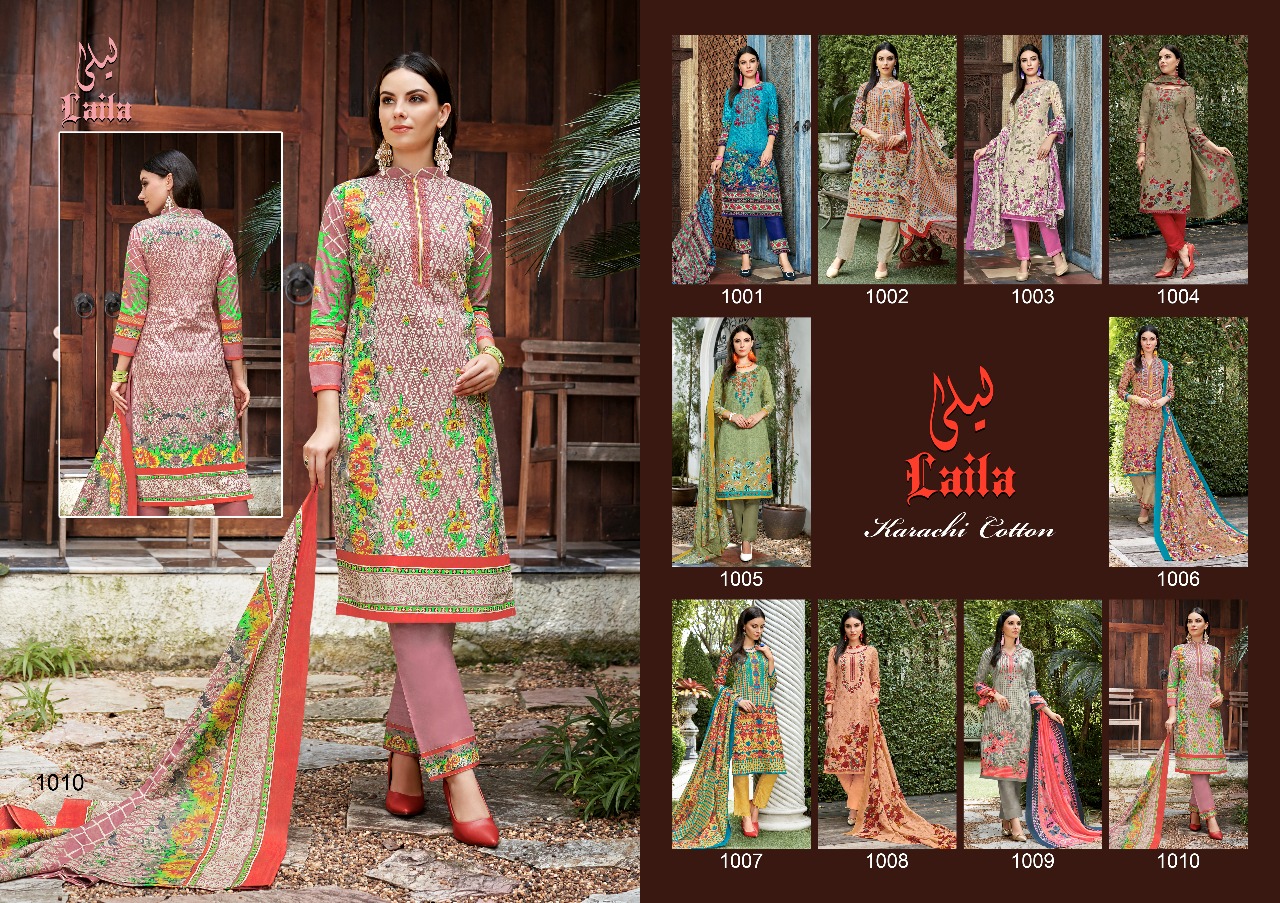 Buy Online Laila Karachi Cotton Suits Wholesale Supplier Gujarat 10 Pcs of Full Catalogue at Wholesale Price. Looking for Laila Karachi Cotton Suits Wholesale Supplier Gujarat Full Catalouge at Best Price? Buy Now Laila Karachi Cotton Suits Wholesale Supplier Gujarat at Wholesale Rate of Rs 3000 with Total 10 Pcs from authroized dealer and supplier of Brand. Cost of Each piece is just only Rs 300 which is very low and affordable price to resale the product in your retail store ,This is Surat based Wholesale Supplier & Dealer of Brand. Click on Brand name to Know more about Brand's products.Call or Whatsapp on 9898838984 for booking or enquiry