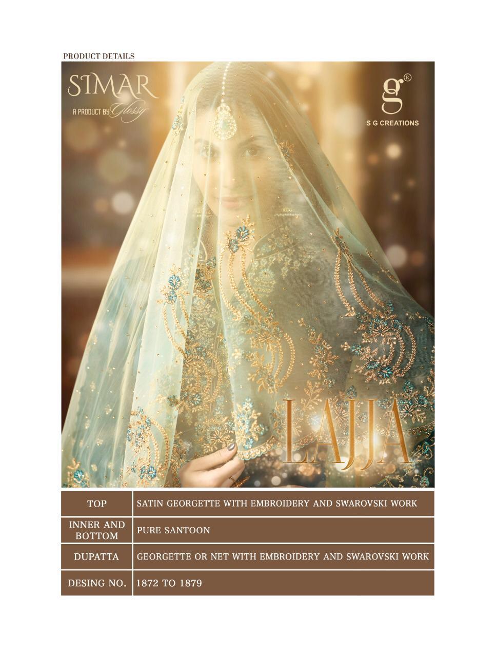 Buy Online Lajja By Glossy Series 1872 To 1879 Designer Party Wear Suits Wholesale Supplier Gujarat 8 Pcs of Full Catalogue at Wholesale Price. Looking for Lajja By Glossy Series 1872 To 1879 Designer Party Wear Suits Wholesale Supplier Gujarat Full Catalouge at Best Price? Buy Now Lajja By Glossy Series 1872 To 1879 Designer Party Wear Suits Wholesale Supplier Gujarat at Wholesale Rate of Rs 14360 with Total 8 Pcs from authroized dealer and supplier of GLOSSY Brand. Cost of Each piece is just only Rs 1795 which is very low and affordable price to resale the product in your retail store ,This is Surat based Wholesale Supplier & Dealer of GLOSSY Brand. Click on Brand name to Know more about GLOSSY Brand's products.Call or Whatsapp on 9898838984 for booking or enquiry