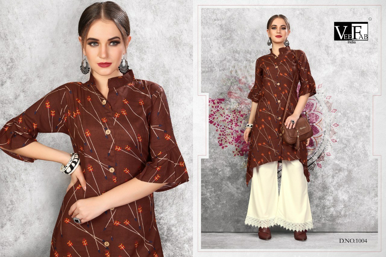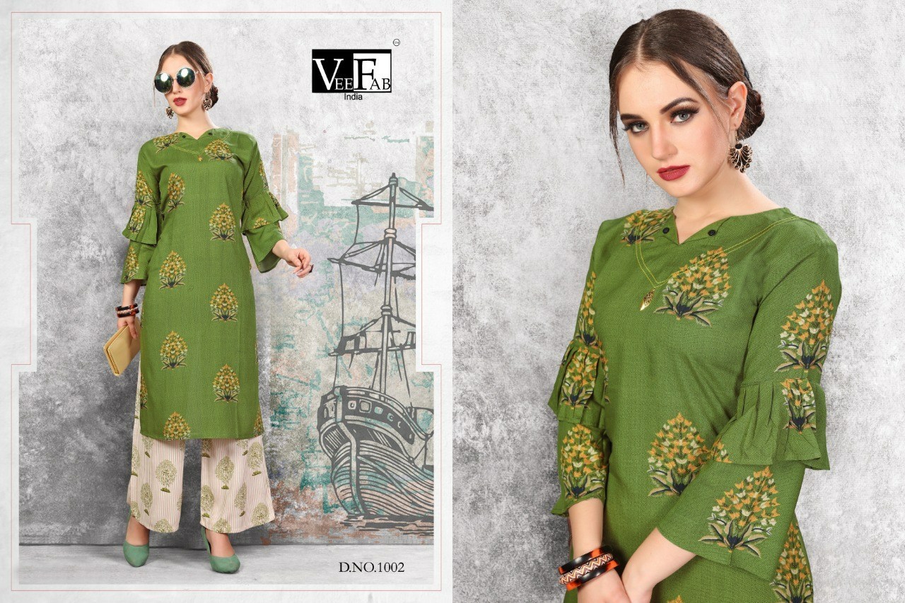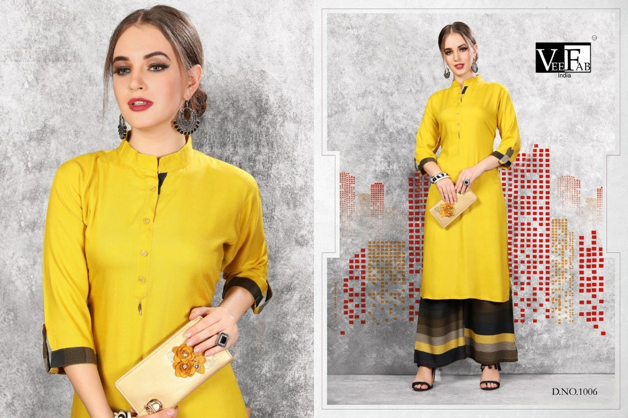 Buy Online Lakhi By Vee Fab India Reyon Kurtis With Plazzo Wholesale Supplier Surat 6 Pcs of Full Catalogue at Wholesale Price. Looking for Lakhi By Vee Fab India Reyon Kurtis With Plazzo Wholesale Supplier Surat Full Catalouge at Best Price? Buy Now Lakhi By Vee Fab India Reyon Kurtis With Plazzo Wholesale Supplier Surat at Wholesale Rate of Rs 3720 with Total 6 Pcs from authroized dealer and supplier of Veefab india Brand. Cost of Each piece is just only Rs 620 which is very low and affordable price to resale the product in your retail store ,This is Surat based Wholesale Supplier & Dealer of Veefab india Brand. Click on Brand name to Know more about Veefab india Brand's products.Call or Whatsapp on 9898838984 for booking or enquiry