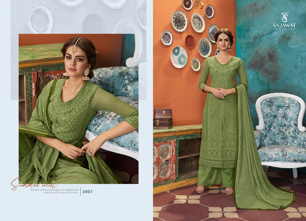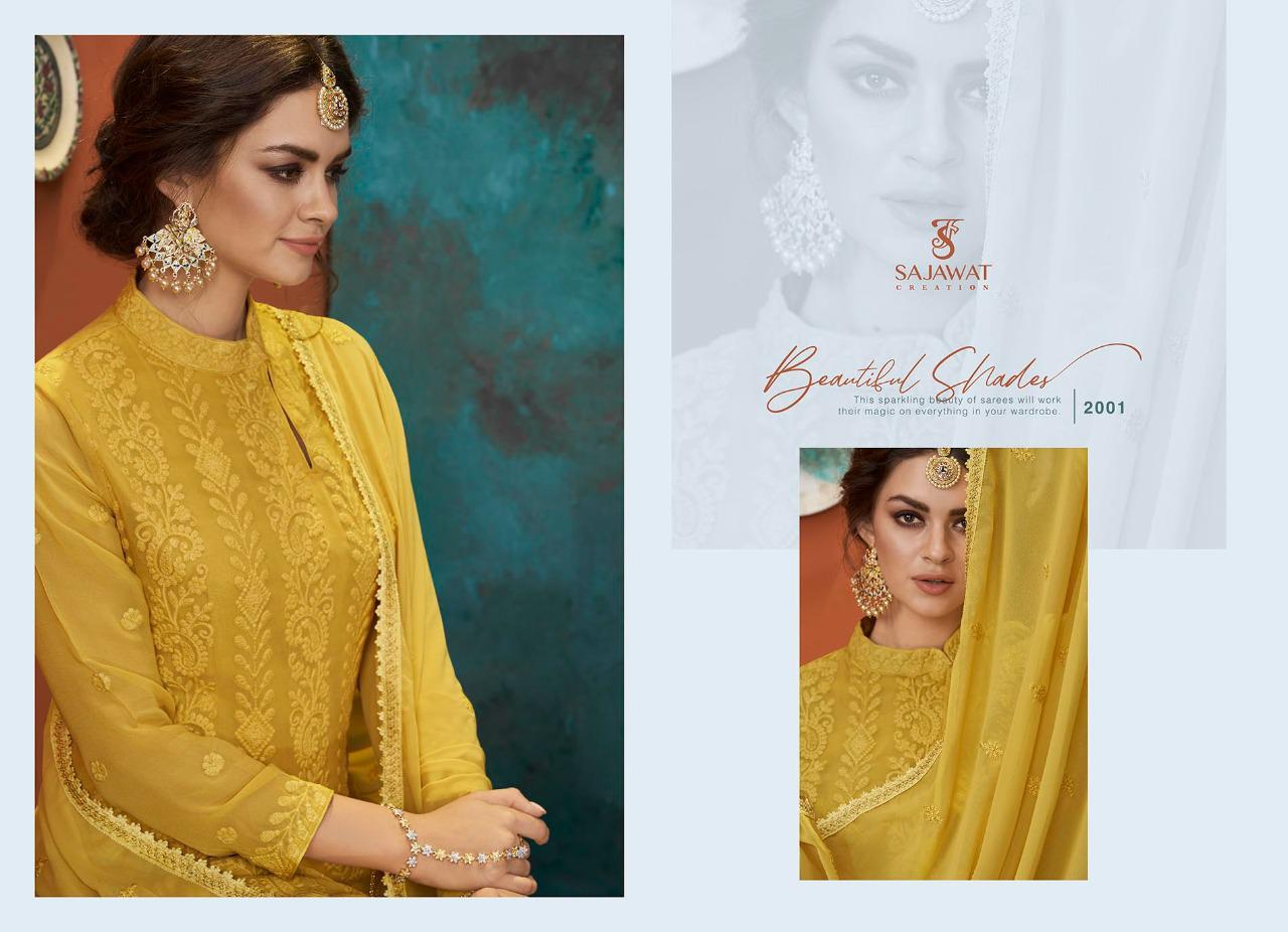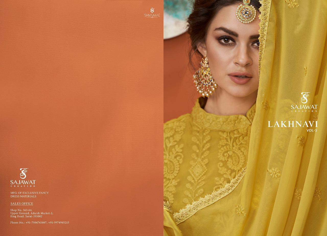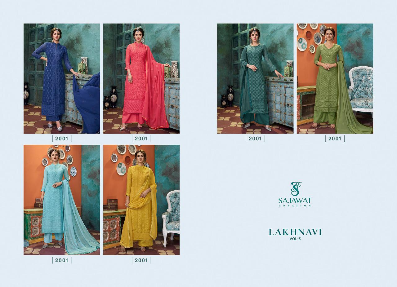 Buy Online Lakhnavi Vol 5 By Sajawat Series 2001 Designer Party Wear Suits Wholesale Supplier Gujarat 6 Pcs of Full Catalogue at Wholesale Price. Looking for Lakhnavi Vol 5 By Sajawat Series 2001 Designer Party Wear Suits Wholesale Supplier Gujarat Full Catalouge at Best Price? Buy Now Lakhnavi Vol 5 By Sajawat Series 2001 Designer Party Wear Suits Wholesale Supplier Gujarat at Wholesale Rate of Rs 8370 with Total 6 Pcs from authroized dealer and supplier of SAJAWAT Brand. Cost of Each piece is just only Rs 1395 which is very low and affordable price to resale the product in your retail store ,This is Surat based Wholesale Supplier & Dealer of SAJAWAT Brand. Click on Brand name to Know more about SAJAWAT Brand's products.Call or Whatsapp on 9898838984 for booking or enquiry
