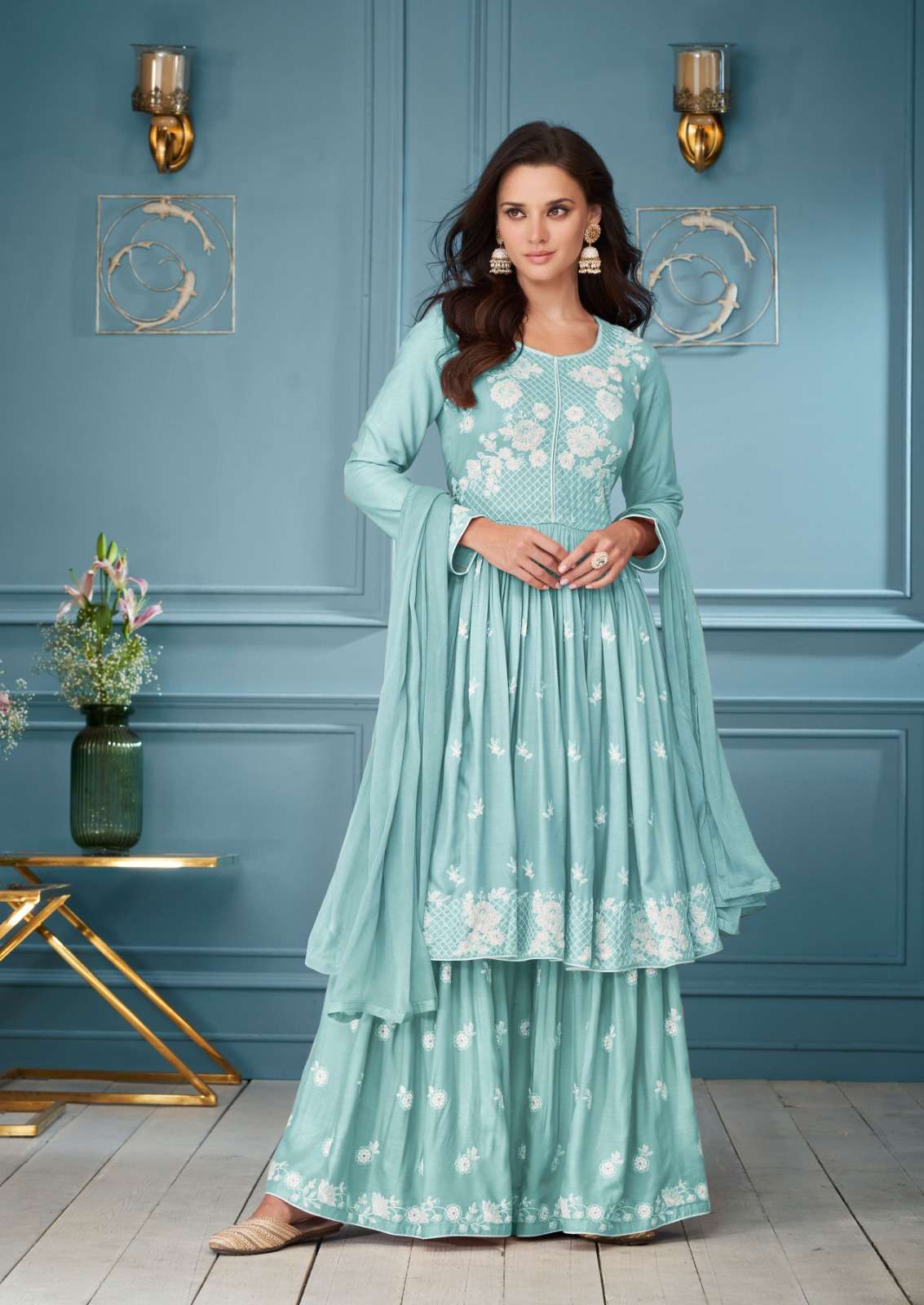 *Fabrics Details:-* *Top:- Hevy Reyon Viscos With Work Hevy* *PLAZO:- Hevy Reyon Viscos with Work Hevy* *DUPPATTA:-Hevy Nazmin*