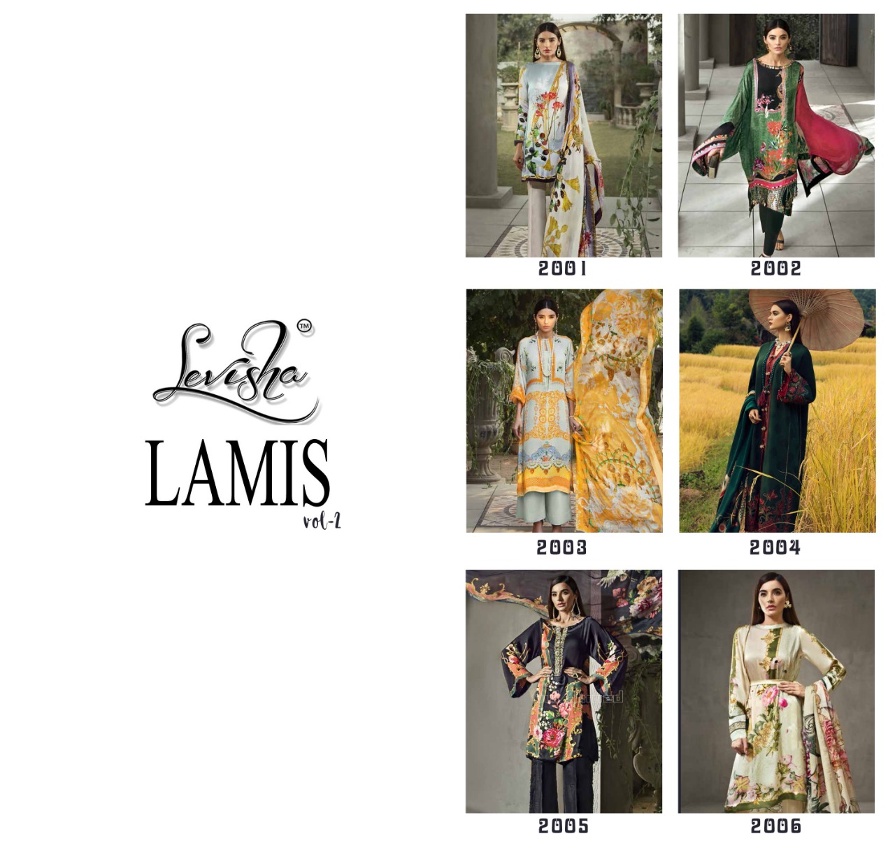 Buy Online Lamis Vol 2 By Levisha 2001 Series Fancy Silk Digital Printed Salwar Kameez Catlog Wholesale Dealer Surat 6 Pcs of Full Catalogue at Wholesale Price. Looking for Lamis Vol 2 By Levisha 2001 Series Fancy Silk Digital Printed Salwar Kameez Catlog Wholesale Dealer Surat Full Catalouge at Best Price? Buy Now Lamis Vol 2 By Levisha 2001 Series Fancy Silk Digital Printed Salwar Kameez Catlog Wholesale Dealer Surat at Wholesale Rate of Rs 4170 with Total 6 Pcs from authroized dealer and supplier of LEVISHA Brand. Cost of Each piece is just only Rs 695 which is very low and affordable price to resale the product in your retail store ,This is Surat based Wholesale Supplier & Dealer of LEVISHA Brand. Click on Brand name to Know more about LEVISHA Brand's products.Call or Whatsapp on 9898838984 for booking or enquiry