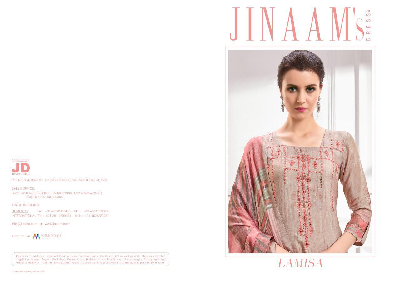 JDL SURAT *(INDIA)* Presents - *Jinaam Lamisa* Price-2,050/- *Fabric Details:-* ? *Top Front* its Digital Printed Russian Silk(Emb + Stone Work) *?Bottom* is Dyed (Viscose Santoon) *Dupatta* Digital Printed pure Chinon silk *5% GST applicable* Lovely and Endearing of Digital Printed Russian Silk Collection Launched In Our New Jinaam Lamisa Regards, *Jinaam dress ltd* surat |