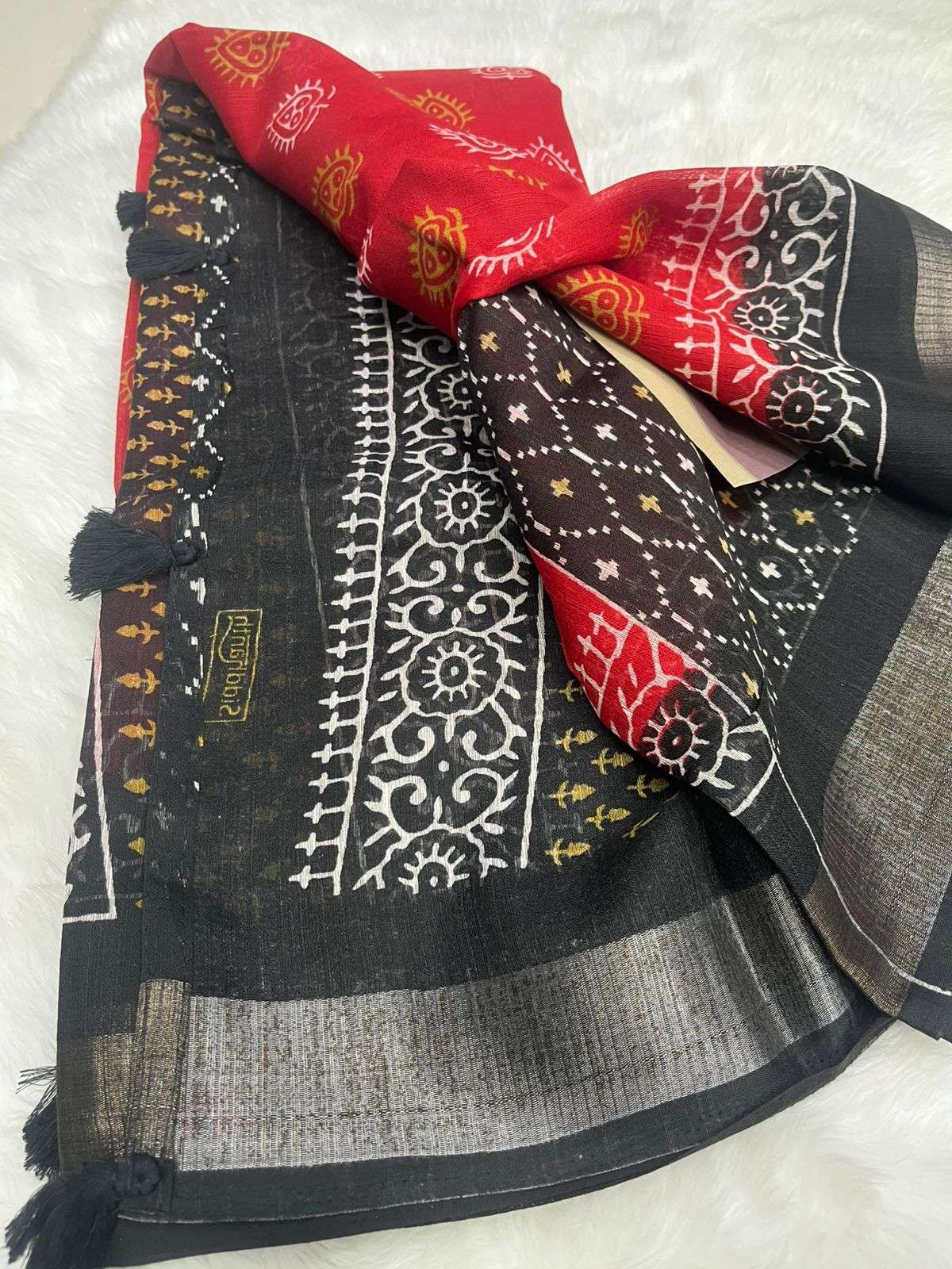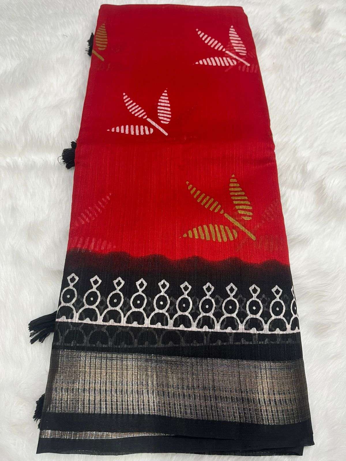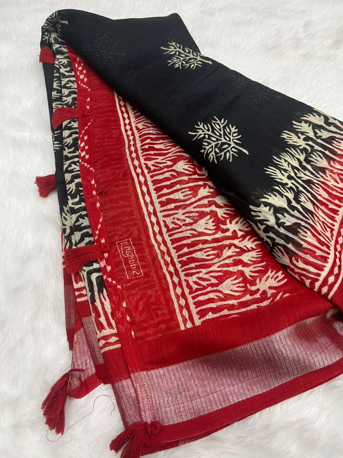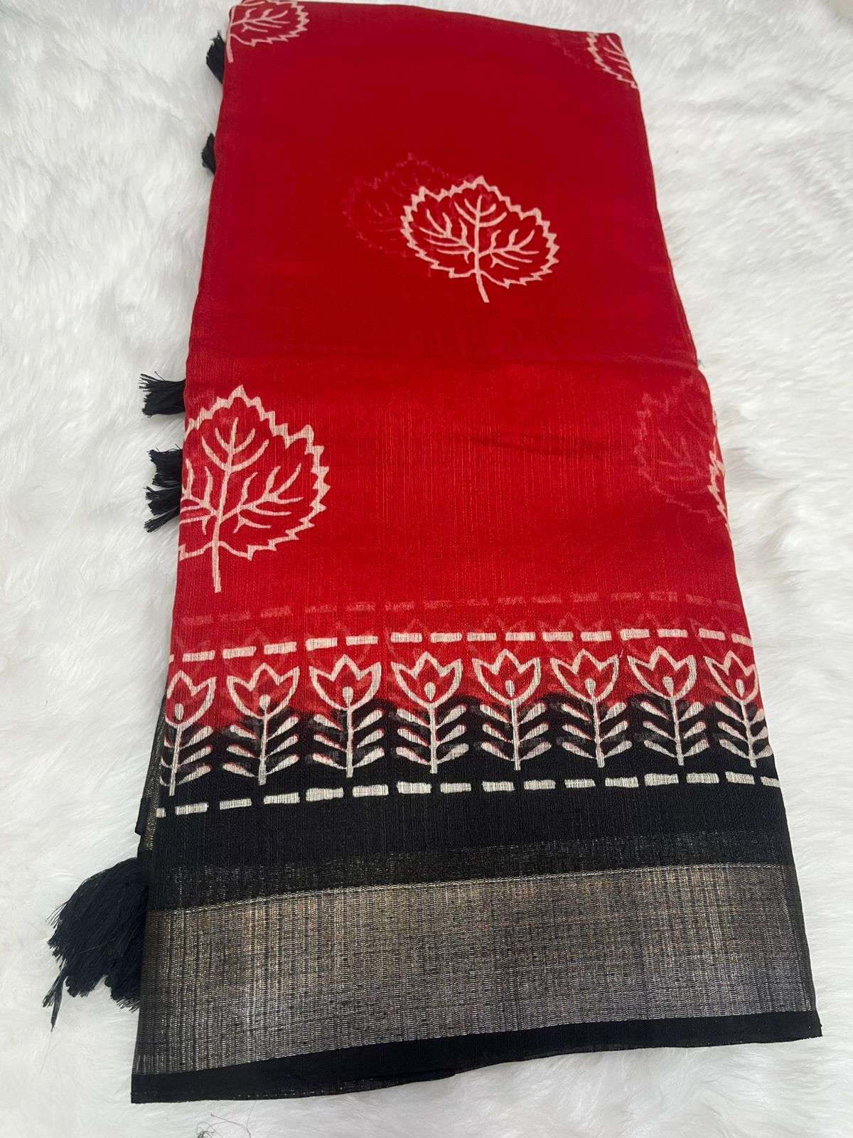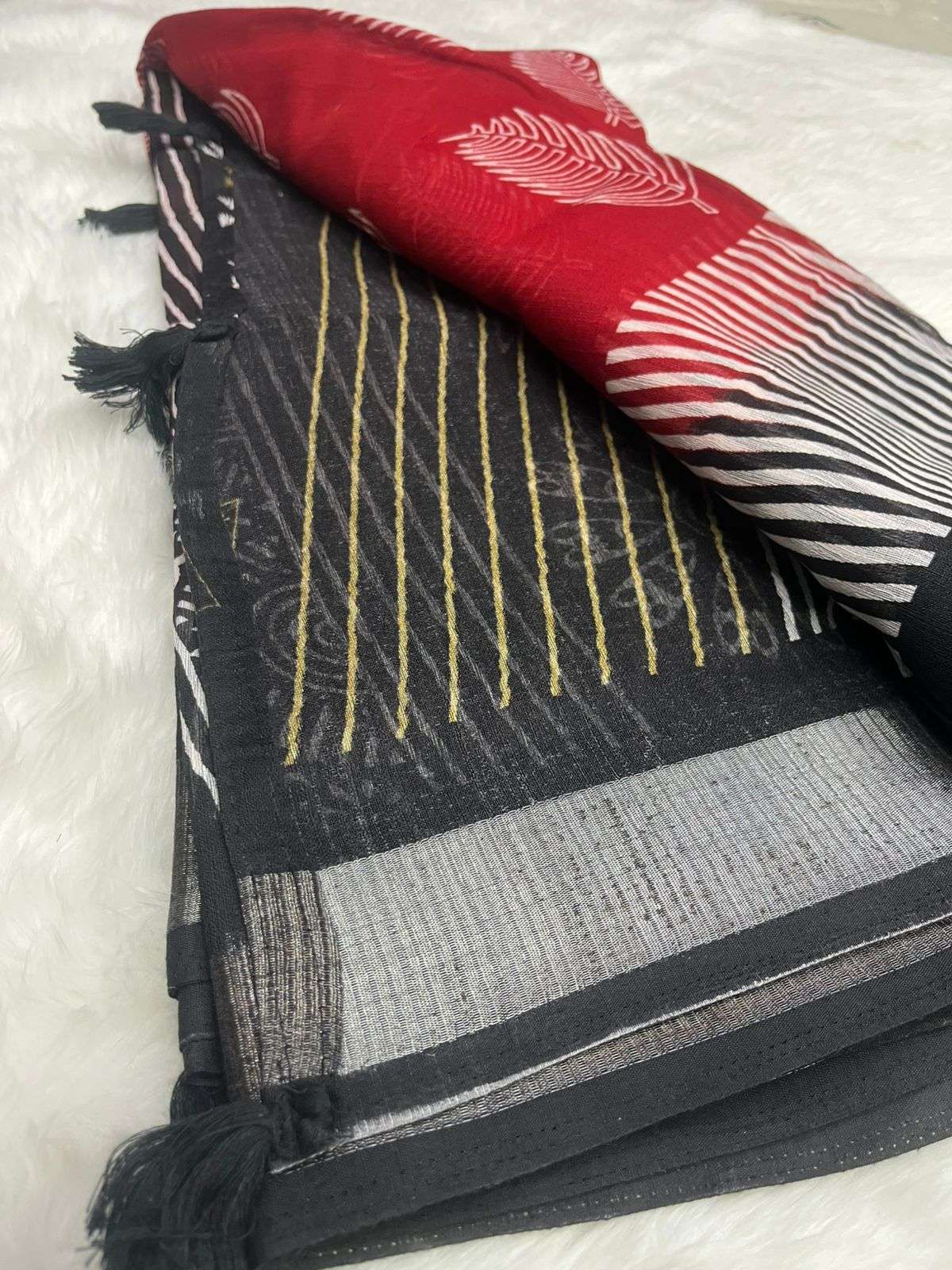 Launching Soft Linen Saree in Stunning Red & Black Prints