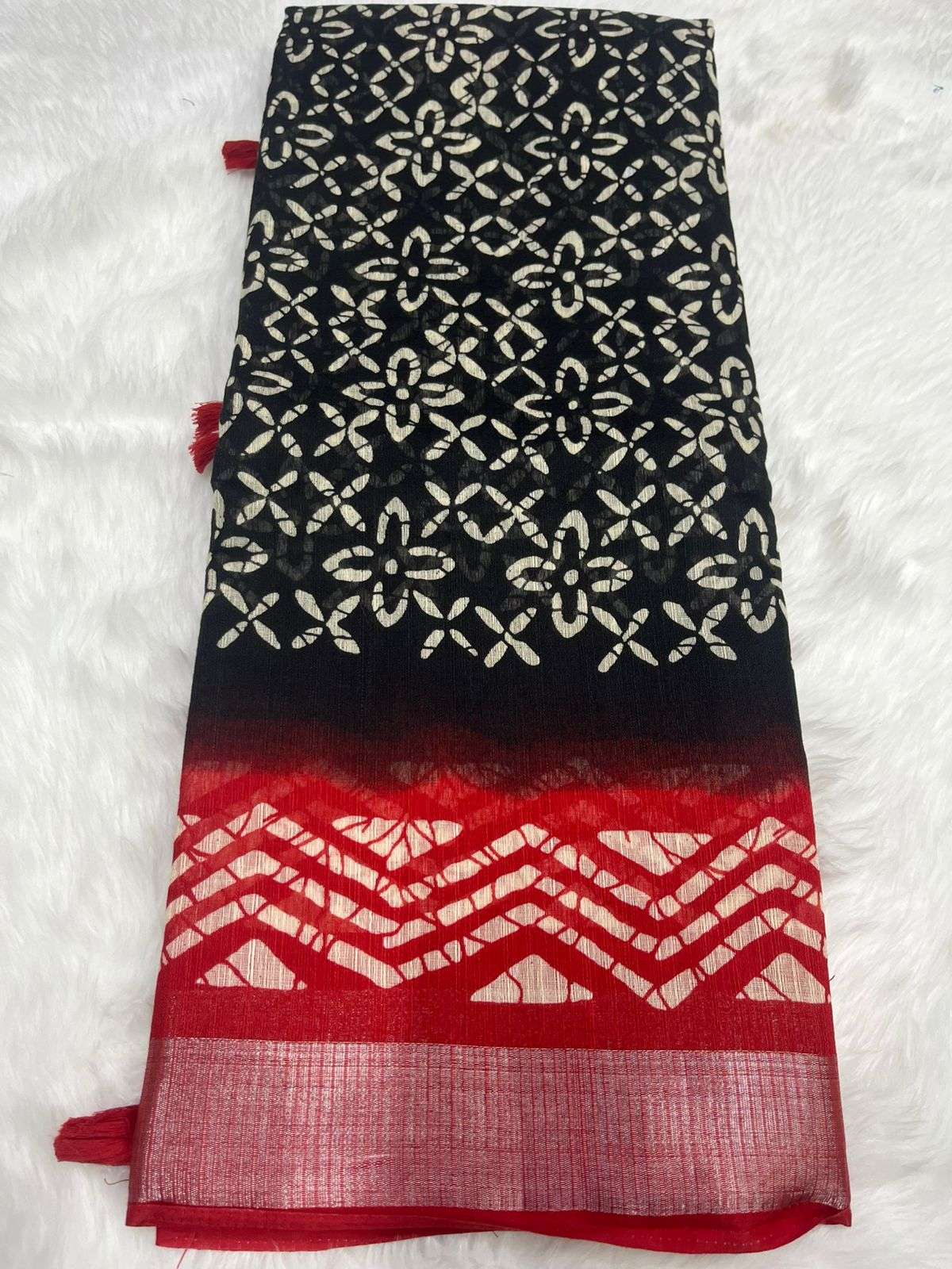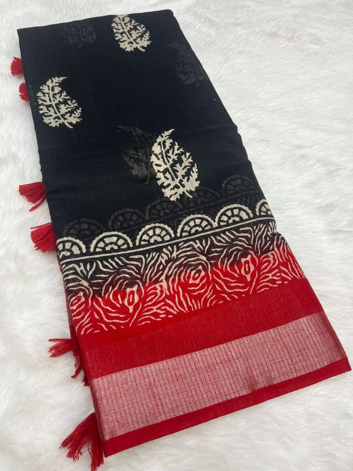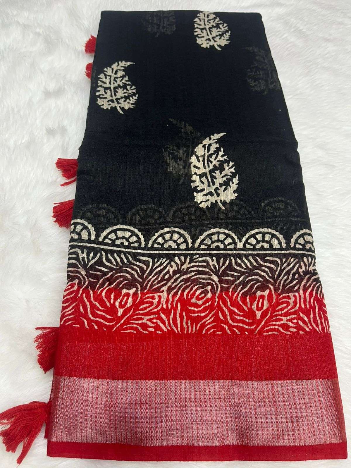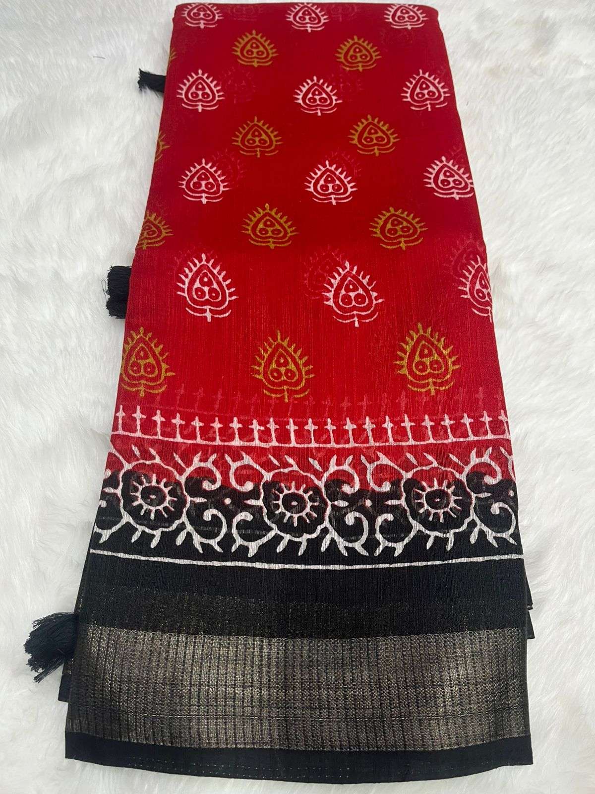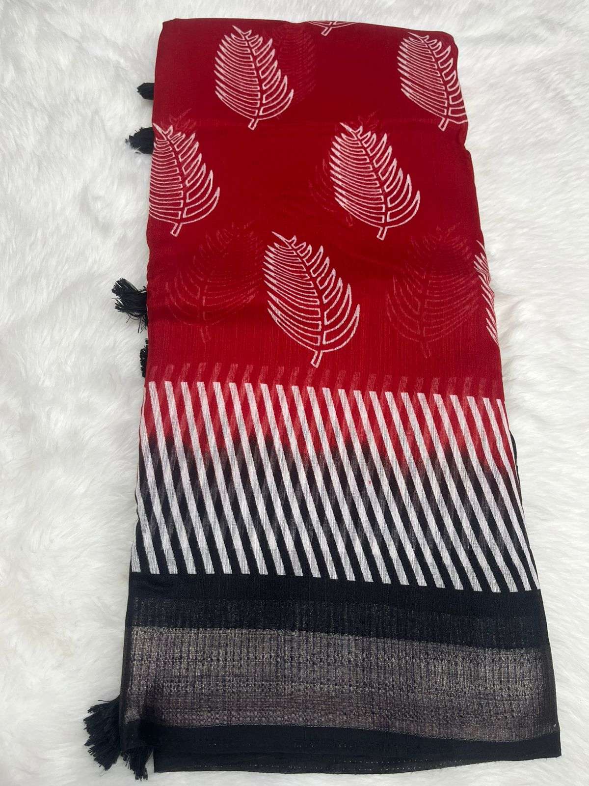 Launching Soft Linen Saree in Stunning Red & Black Prints