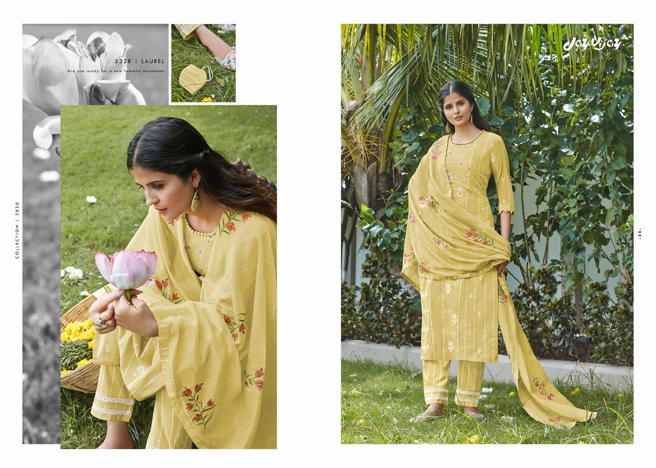 Buy Online Laurel Vol 2 By Jay Vijay Series 5321 To 5330 Designer Suits Wholesale Supplier Gujarat 10 Pcs of Full Catalogue at Wholesale Price. Looking for Laurel Vol 2 By Jay Vijay Series 5321 To 5330 Designer Suits Wholesale Supplier Gujarat Full Catalouge at Best Price? Buy Now Laurel Vol 2 By Jay Vijay Series 5321 To 5330 Designer Suits Wholesale Supplier Gujarat at Wholesale Rate of Rs 11500 with Total 10 Pcs from authroized dealer and supplier of JAY VIJAY Brand. Cost of Each piece is just only Rs 1150 which is very low and affordable price to resale the product in your retail store ,This is Surat based Wholesale Supplier & Dealer of JAY VIJAY Brand. Click on Brand name to Know more about JAY VIJAY Brand's products.Call or Whatsapp on 9898838984 for booking or enquiry