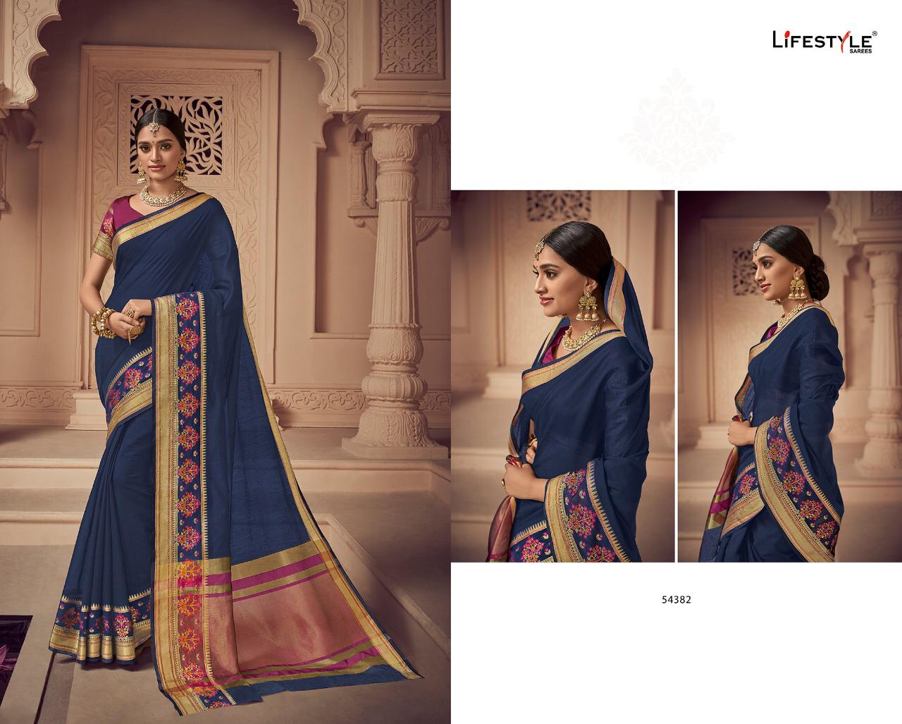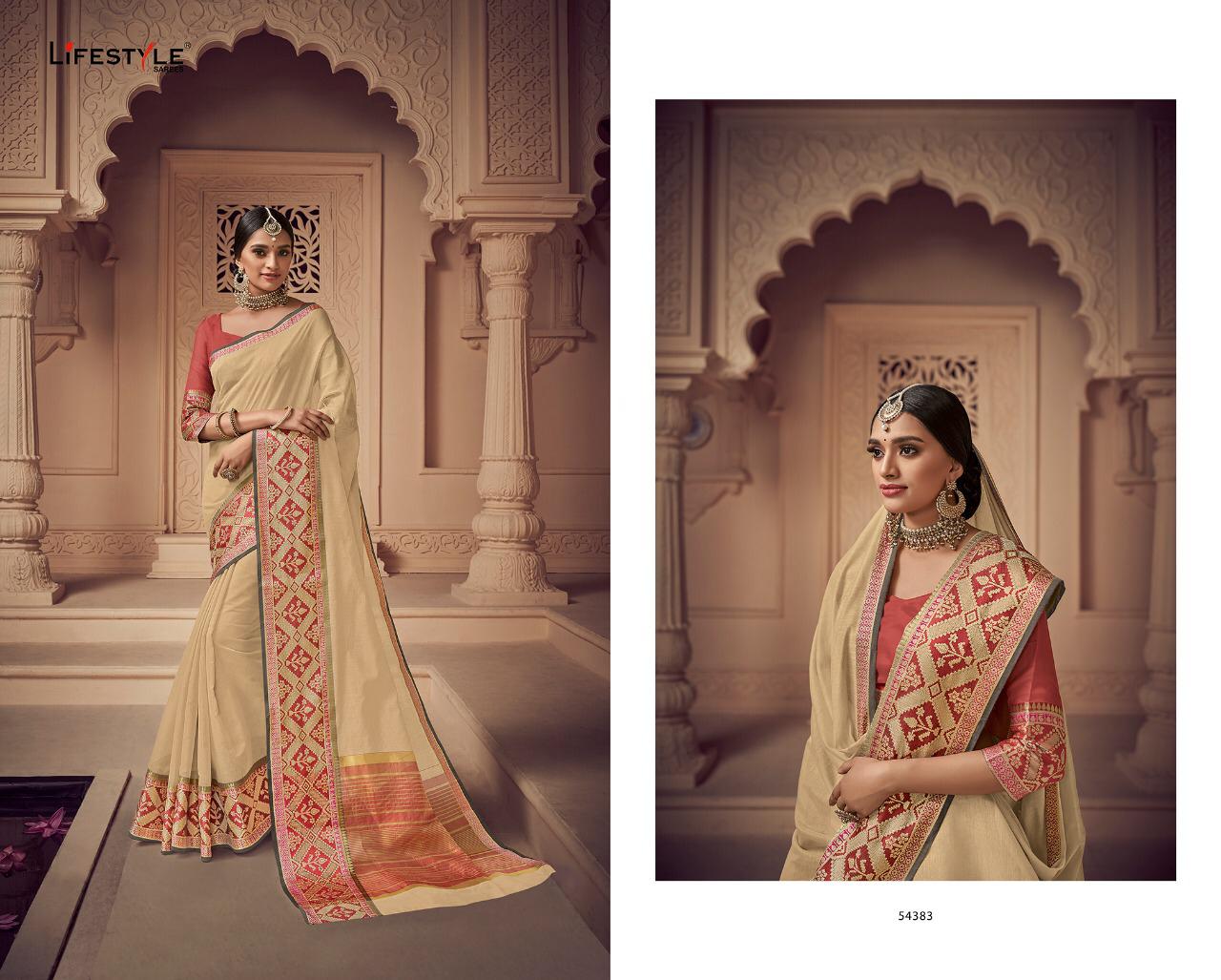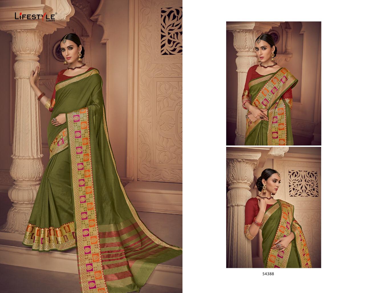 Buy Online Lavanyam Vol 6 By Lifestyle 54381 Series Fancy Chanderi Weaving Silk Saree Wholesaler Surat 12 Pcs of Full Catalogue at Wholesale Price. Looking for Lavanyam Vol 6 By Lifestyle 54381 Series Fancy Chanderi Weaving Silk Saree Wholesaler Surat Full Catalouge at Best Price? Buy Now Lavanyam Vol 6 By Lifestyle 54381 Series Fancy Chanderi Weaving Silk Saree Wholesaler Surat at Wholesale Rate of Rs 8100 with Total 12 Pcs from authroized dealer and supplier of LIFESTYLE Brand. Cost of Each piece is just only Rs 675 which is very low and affordable price to resale the product in your retail store ,This is Surat based Wholesale Supplier & Dealer of LIFESTYLE Brand. Click on Brand name to Know more about LIFESTYLE Brand's products.Call or Whatsapp on 9898838984 for booking or enquiry