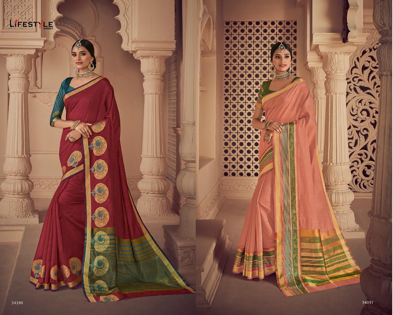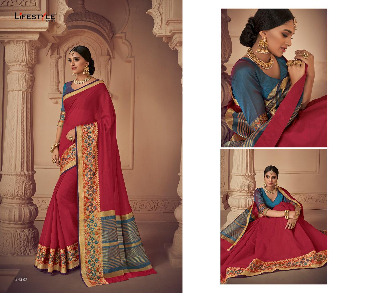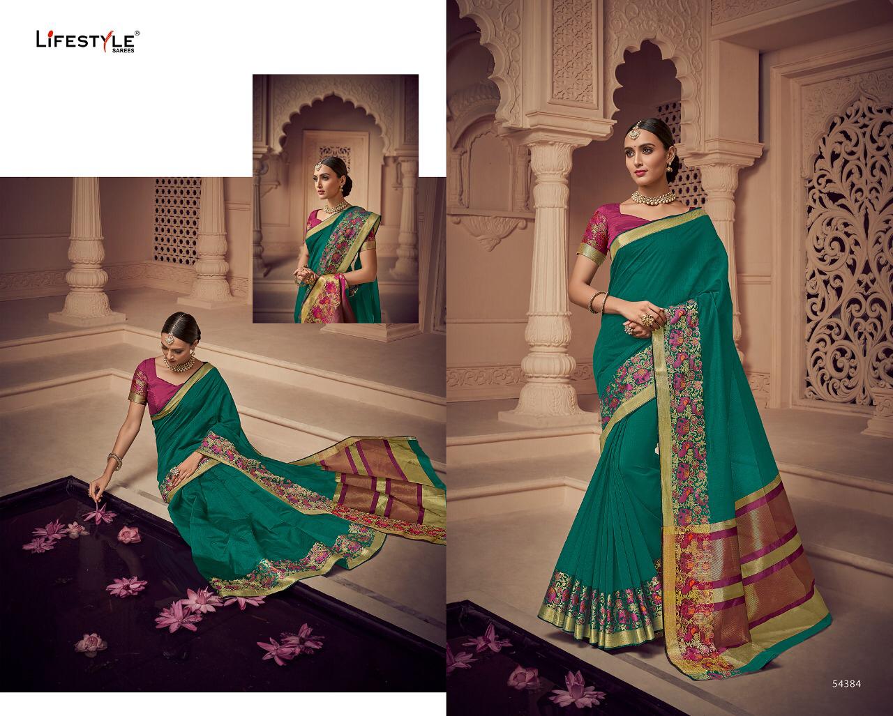 Buy Online Lavanyam Vol 6 By Lifestyle 54381 Series Fancy Chanderi Weaving Silk Saree Wholesaler Surat 12 Pcs of Full Catalogue at Wholesale Price. Looking for Lavanyam Vol 6 By Lifestyle 54381 Series Fancy Chanderi Weaving Silk Saree Wholesaler Surat Full Catalouge at Best Price? Buy Now Lavanyam Vol 6 By Lifestyle 54381 Series Fancy Chanderi Weaving Silk Saree Wholesaler Surat at Wholesale Rate of Rs 8100 with Total 12 Pcs from authroized dealer and supplier of LIFESTYLE Brand. Cost of Each piece is just only Rs 675 which is very low and affordable price to resale the product in your retail store ,This is Surat based Wholesale Supplier & Dealer of LIFESTYLE Brand. Click on Brand name to Know more about LIFESTYLE Brand's products.Call or Whatsapp on 9898838984 for booking or enquiry