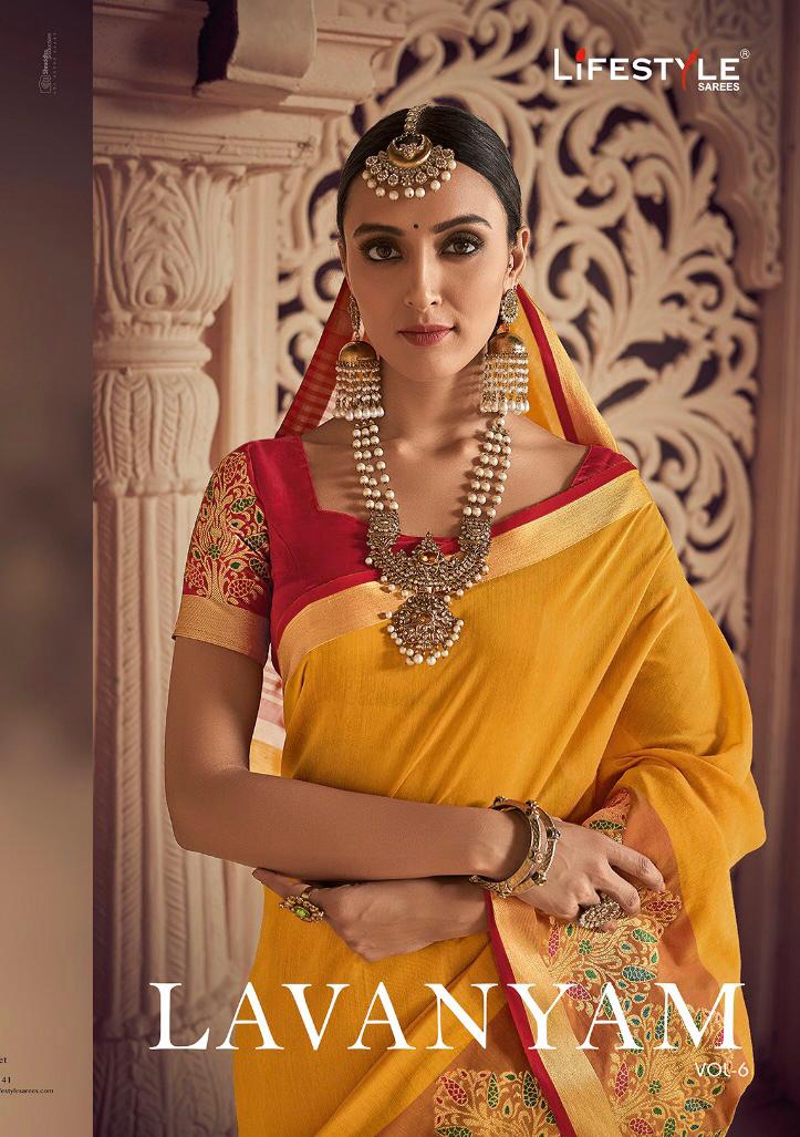 Lavanyam Vol 6 By Lifestyle 54381 Series Fancy Chanderi Weaving Silk Saree Wholesaler Surat