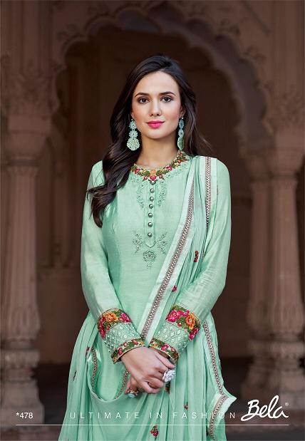 Brand - Bela . Type - Suit . Series - 477 to 483. * set & Loose * GST 5 Percent Extra. Delivery 2-3 days . |