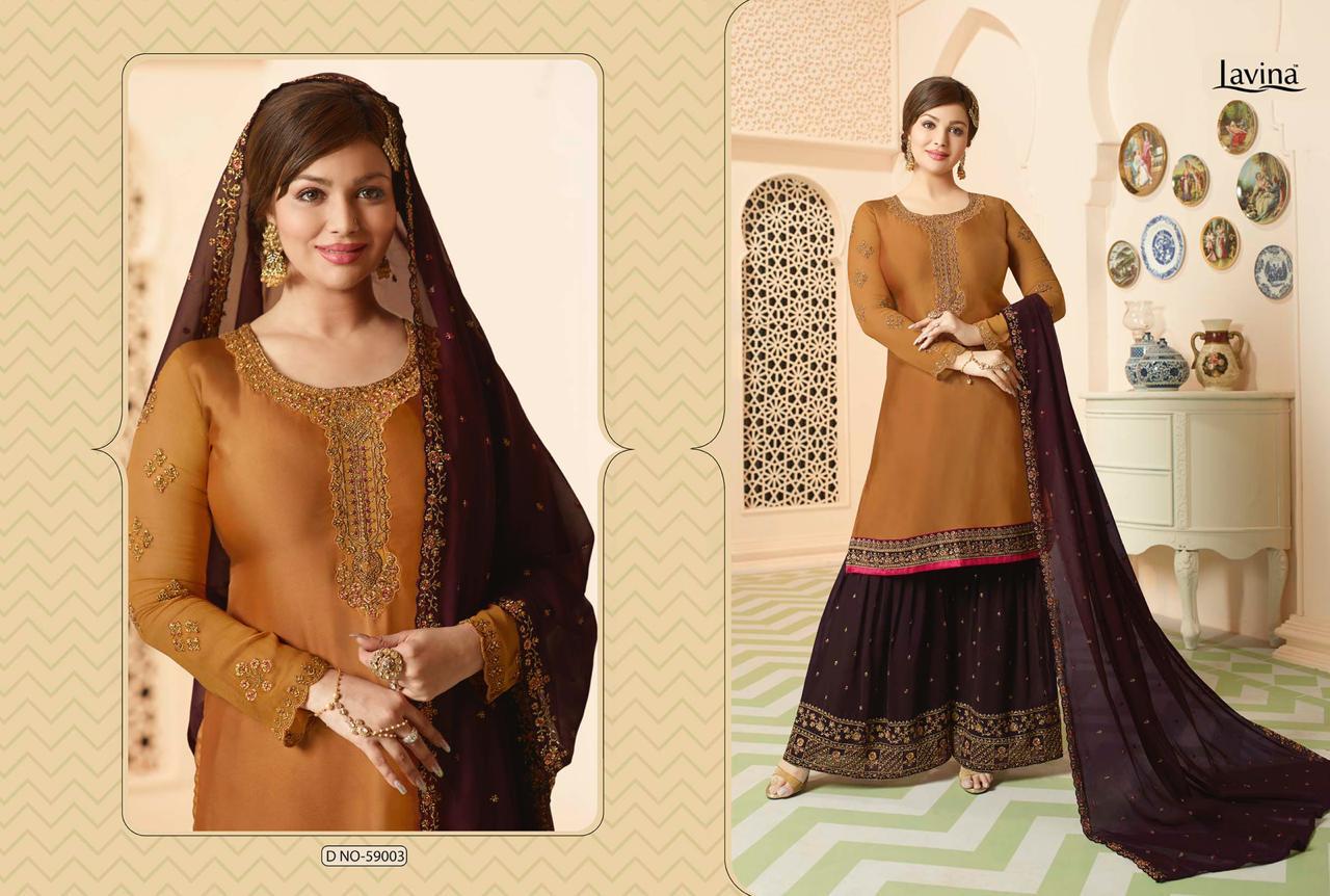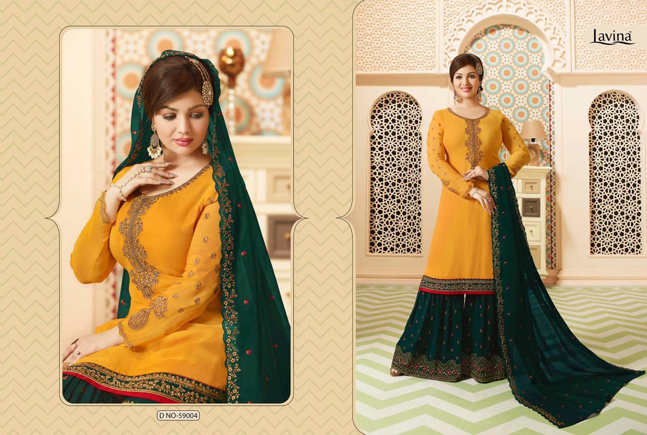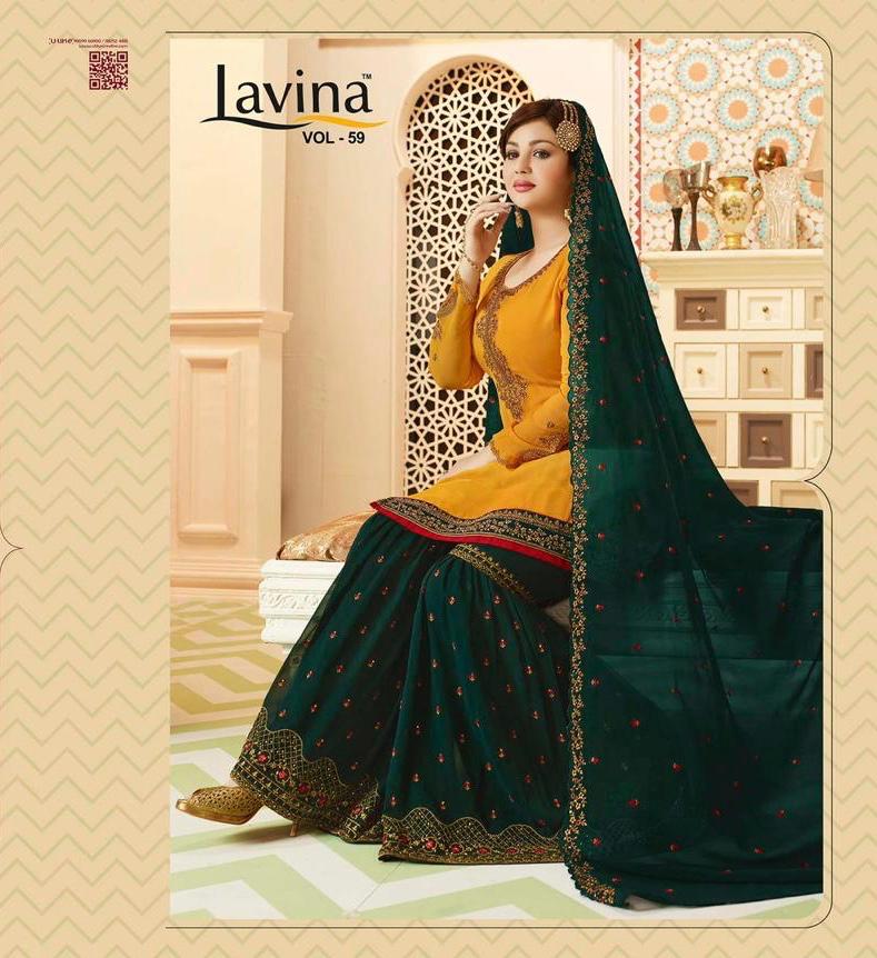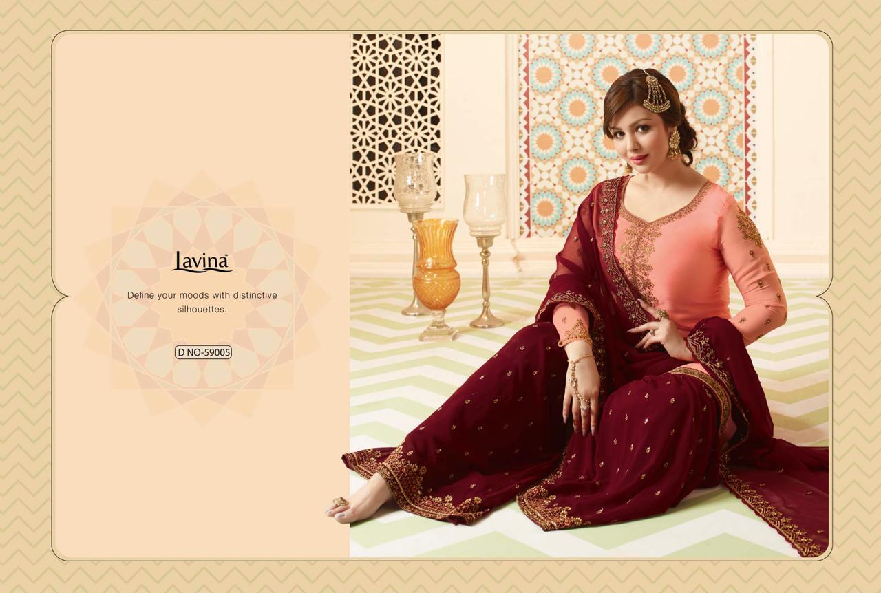Buy Online Lavina 59 Series 59001 To 59005 Designer Party Wear Suits Wholesale Supplier Gujarat 5 Pcs of Full Catalogue at Wholesale Price. Looking for Lavina 59 Series 59001 To 59005 Designer Party Wear Suits Wholesale Supplier Gujarat Full Catalouge at Best Price? Buy Now Lavina 59 Series 59001 To 59005 Designer Party Wear Suits Wholesale Supplier Gujarat at Wholesale Rate of Rs 9995 with Total 5 Pcs from authroized dealer and supplier of LAVINA Brand. Cost of Each piece is just only Rs 1999 which is very low and affordable price to resale the product in your retail store ,This is Surat based Wholesale Supplier & Dealer of LAVINA Brand. Click on Brand name to Know more about LAVINA Brand's products.Call or Whatsapp on 9898838984 for booking or enquiry