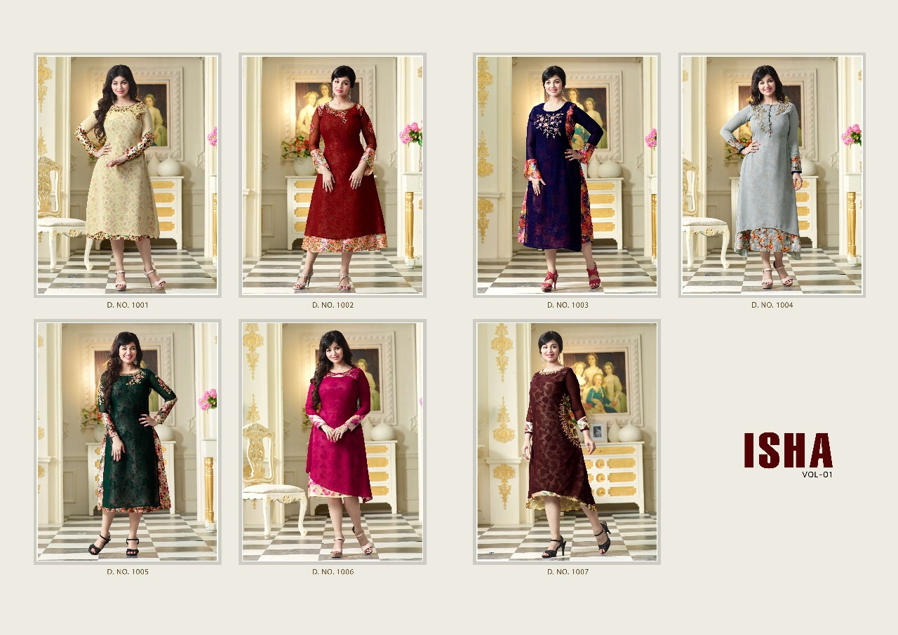 Buy Online Lavina Isha Vol 1 1001 Series Kurties Catalog Supplier Surat 7 Pcs of Full Catalogue at Wholesale Price. Looking for Lavina Isha Vol 1 1001 Series Kurties Catalog Supplier Surat Full Catalouge at Best Price? Buy Now Lavina Isha Vol 1 1001 Series Kurties Catalog Supplier Surat at Wholesale Rate of Rs 4865 with Total 7 Pcs from authroized dealer and supplier of LAVINA Brand. Cost of Each piece is just only Rs 695 which is very low and affordable price to resale the product in your retail store ,This is Surat based Wholesale Supplier & Dealer of LAVINA Brand. Click on Brand name to Know more about LAVINA Brand's products.Call or Whatsapp on 9898838984 for booking or enquiry