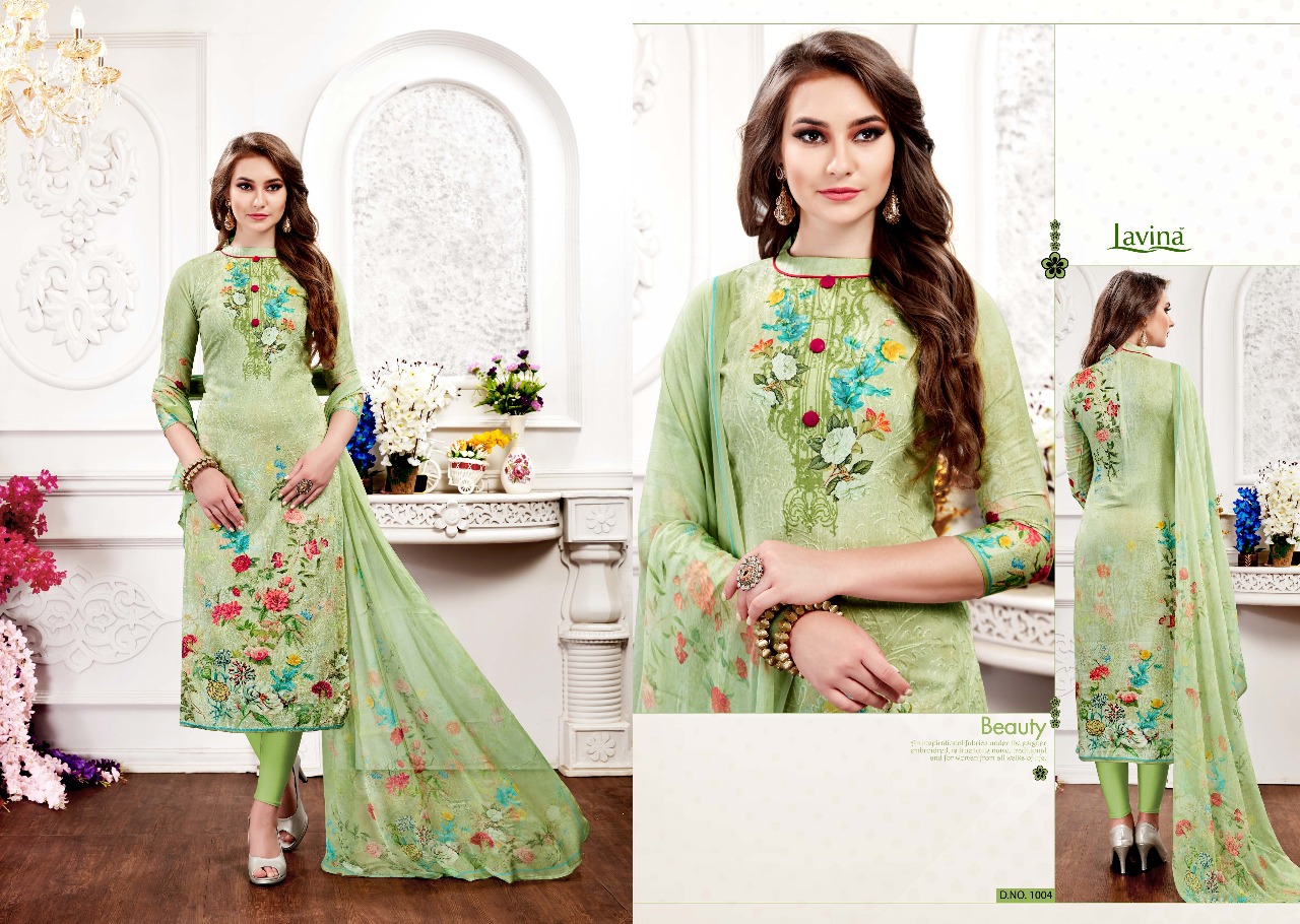 Buy Online Lavina Vibrance Vol 1 Designer Suits Wholesale Supplier And Dealer Surat 8 Pcs of Full Catalogue at Wholesale Price. Looking for Lavina Vibrance Vol 1 Designer Suits Wholesale Supplier And Dealer Surat Full Catalouge at Best Price? Buy Now Lavina Vibrance Vol 1 Designer Suits Wholesale Supplier And Dealer Surat at Wholesale Rate of Rs 12760 with Total 8 Pcs from authroized dealer and supplier of LAVINA Brand. Cost of Each piece is just only Rs 1595 which is very low and affordable price to resale the product in your retail store ,This is Surat based Wholesale Supplier & Dealer of LAVINA Brand. Click on Brand name to Know more about LAVINA Brand's products.Call or Whatsapp on 9898838984 for booking or enquiry