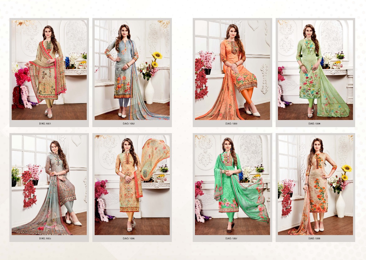 Lavina vibrance vo 1 Top jamm satin aari work plus with digital prints Bottom jamm satin dyed Duptta pure digital prints Rate 1595 Dispatch date 11/7/2018 |