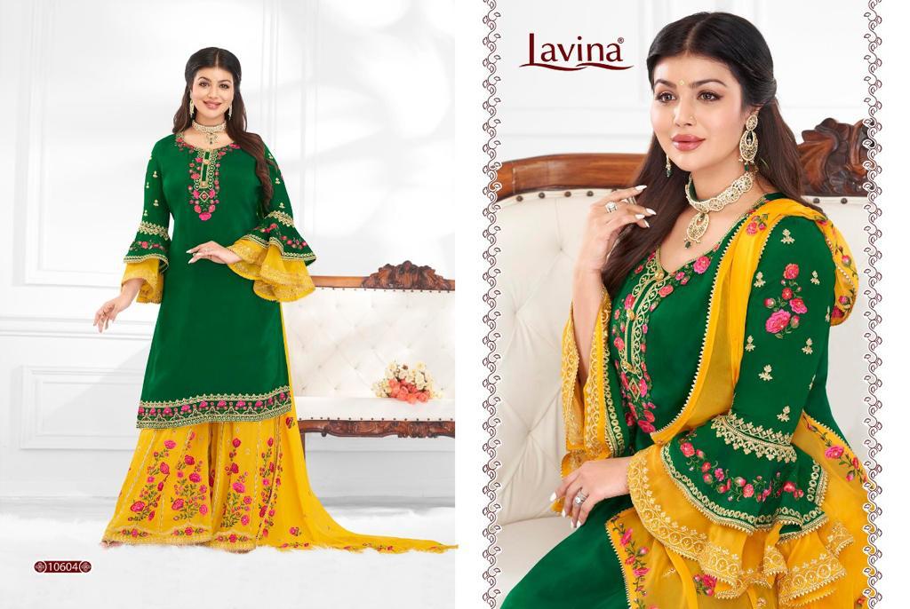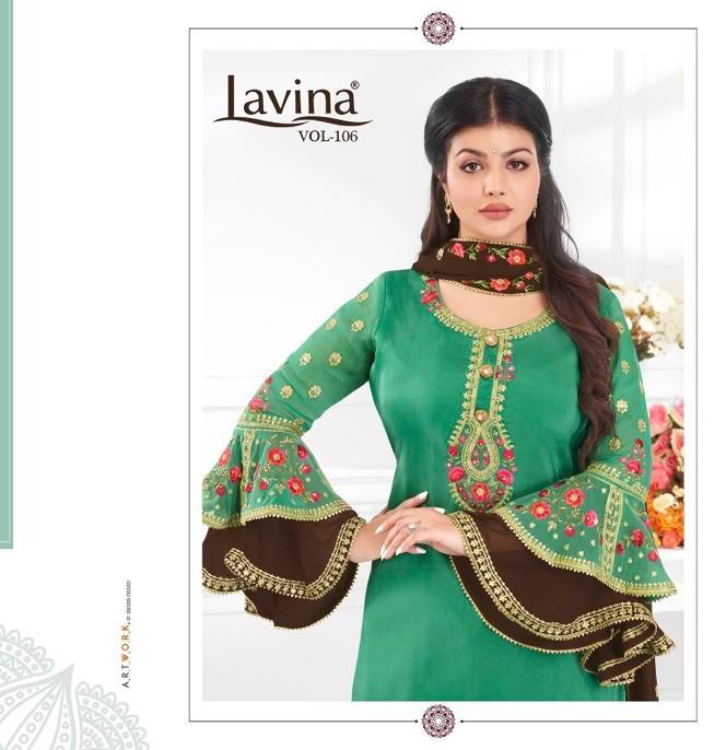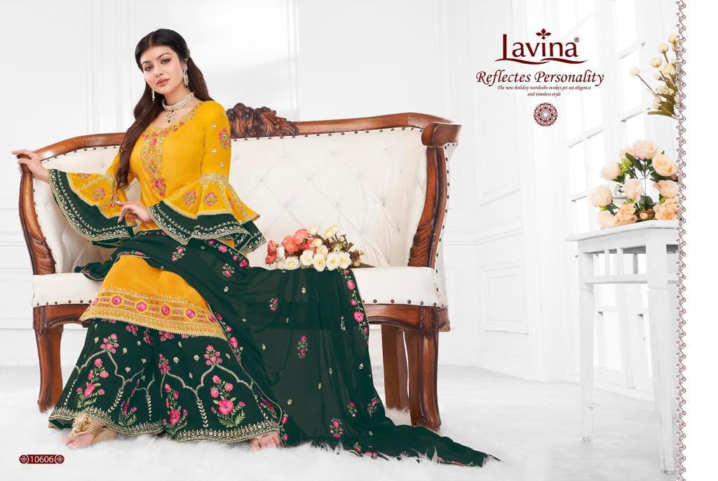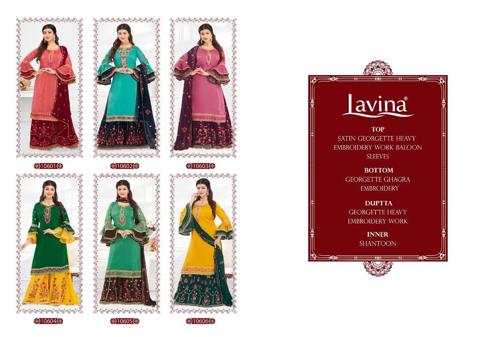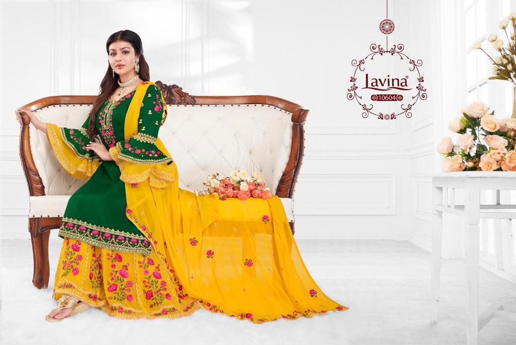 Buy Online Lavina Vol 106 Gharara Suits Wholesale Supplier Gujarat 6 Pcs of Full Catalogue at Wholesale Price. Looking for Lavina Vol 106 Gharara Suits Wholesale Supplier Gujarat Full Catalouge at Best Price? Buy Now Lavina Vol 106 Gharara Suits Wholesale Supplier Gujarat at Wholesale Rate of Rs 12570 with Total 6 Pcs from authroized dealer and supplier of LAVINA Brand. Cost of Each piece is just only Rs 2095 which is very low and affordable price to resale the product in your retail store ,This is Surat based Wholesale Supplier & Dealer of LAVINA Brand. Click on Brand name to Know more about LAVINA Brand's products.Call or Whatsapp on 9898838984 for booking or enquiry
