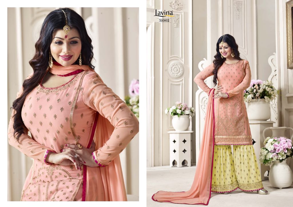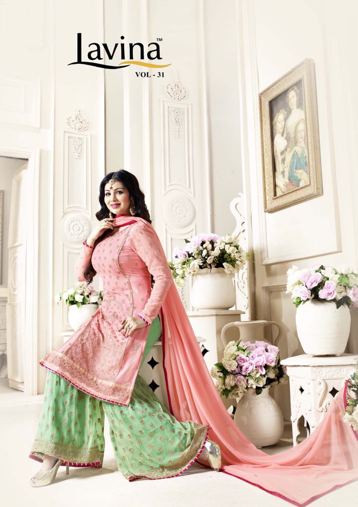 Buy Online Lavina Vol 31 Top Georgette Emboidery Sarara Wholesale Dealer And Supplier India 4 Pcs of Full Catalogue at Wholesale Price. Looking for Lavina Vol 31 Top Georgette Emboidery Sarara Wholesale Dealer And Supplier India Full Catalouge at Best Price? Buy Now Lavina Vol 31 Top Georgette Emboidery Sarara Wholesale Dealer And Supplier India at Wholesale Rate of Rs 7596 with Total 4 Pcs from authroized dealer and supplier of LAVINA Brand. Cost of Each piece is just only Rs 1899 which is very low and affordable price to resale the product in your retail store ,This is Surat based Wholesale Supplier & Dealer of LAVINA Brand. Click on Brand name to Know more about LAVINA Brand's products.Call or Whatsapp on 9898838984 for booking or enquiry