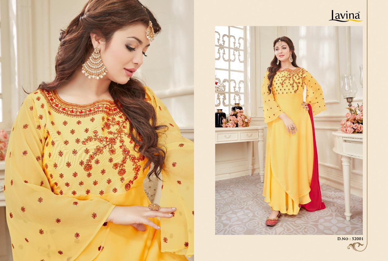 Buy Online Lavina Vol 52 Motif By Lavina Series 52001 To 52005 Georgette Embroidered Designer Party Wear Suits Wholesale Supplier Gujarat 5 Pcs of Full Catalogue at Wholesale Price. Looking for Lavina Vol 52 Motif By Lavina Series 52001 To 52005 Georgette Embroidered Designer Party Wear Suits Wholesale Supplier Gujarat Full Catalouge at Best Price? Buy Now Lavina Vol 52 Motif By Lavina Series 52001 To 52005 Georgette Embroidered Designer Party Wear Suits Wholesale Supplier Gujarat at Wholesale Rate of Rs 7975 with Total 5 Pcs from authroized dealer and supplier of LAVINA Brand. Cost of Each piece is just only Rs 1595 which is very low and affordable price to resale the product in your retail store ,This is Surat based Wholesale Supplier & Dealer of LAVINA Brand. Click on Brand name to Know more about LAVINA Brand's products.Call or Whatsapp on 9898838984 for booking or enquiry