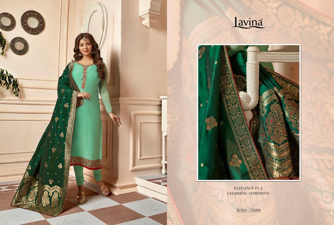 Buy Online Lavina Vol 55 By Lavina 55001 Series Fancy Satin Ceorgette Party Wear Salwar Kameez Catlog Wholesaler Surat 6 Pcs of Full Catalogue at Wholesale Price. Looking for Lavina Vol 55 By Lavina 55001 Series Fancy Satin Ceorgette Party Wear Salwar Kameez Catlog Wholesaler Surat Full Catalouge at Best Price? Buy Now Lavina Vol 55 By Lavina 55001 Series Fancy Satin Ceorgette Party Wear Salwar Kameez Catlog Wholesaler Surat at Wholesale Rate of Rs 8370 with Total 6 Pcs from authroized dealer and supplier of LAVINA Brand. Cost of Each piece is just only Rs 1395 which is very low and affordable price to resale the product in your retail store ,This is Surat based Wholesale Supplier & Dealer of LAVINA Brand. Click on Brand name to Know more about LAVINA Brand's products.Call or Whatsapp on 9898838984 for booking or enquiry
