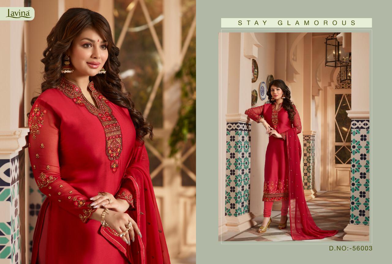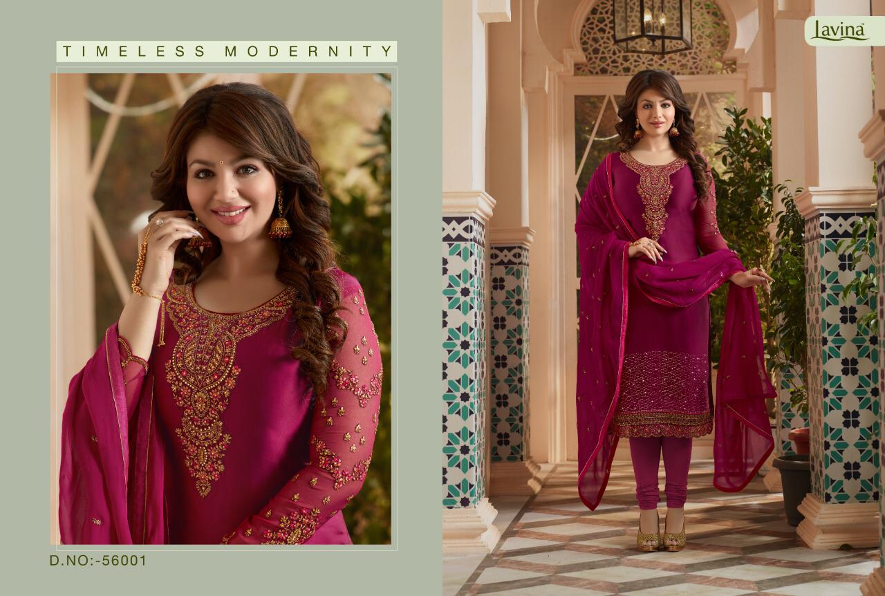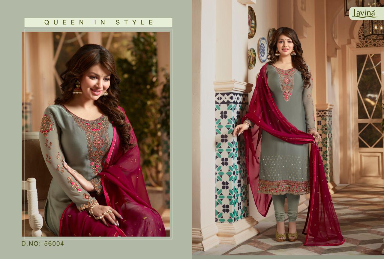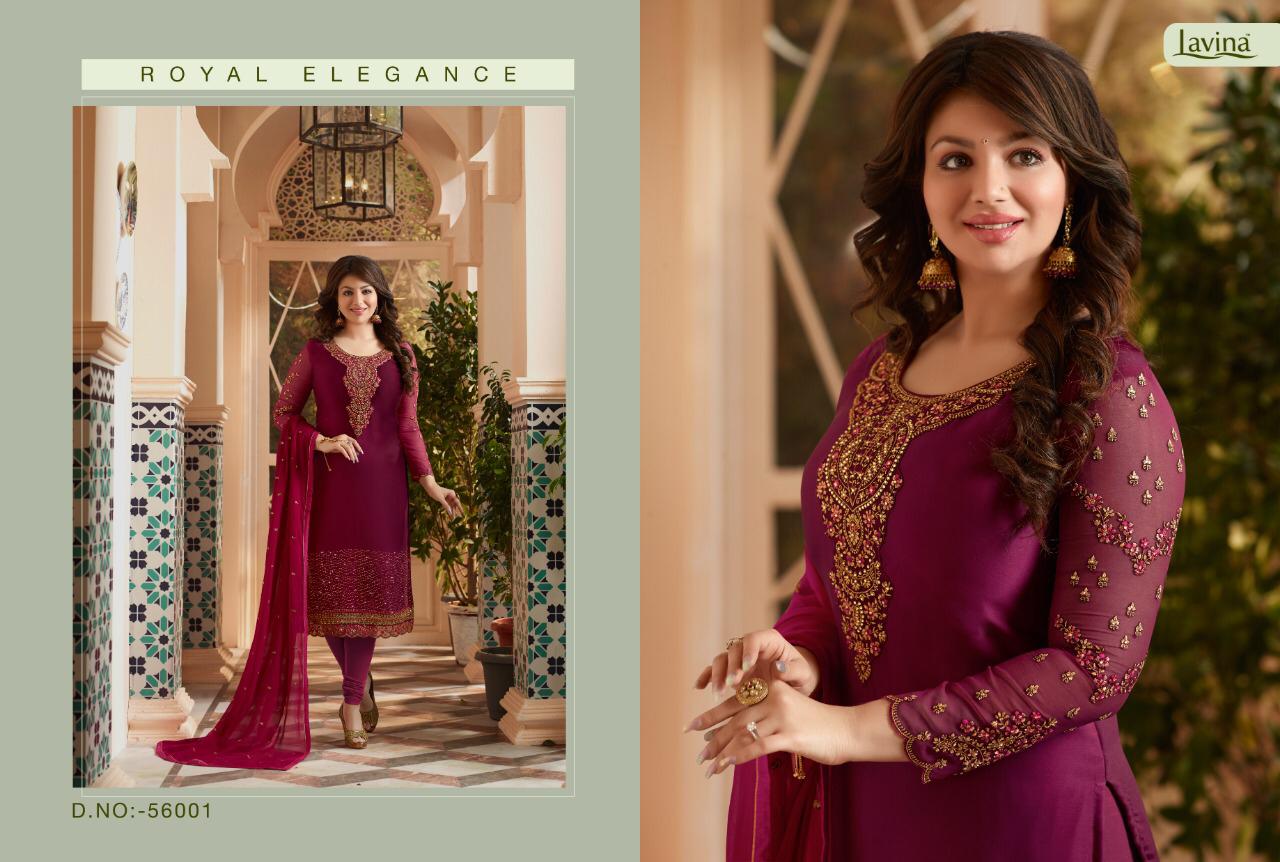 Lavina Vol 56 Series 56001 To 56006 Satin Georgette Embroidered Designer Party Wear Suits Wholesale Supplier India