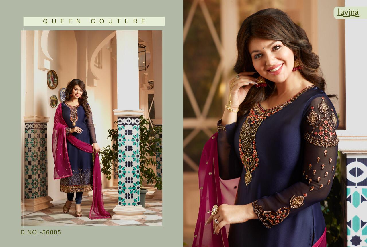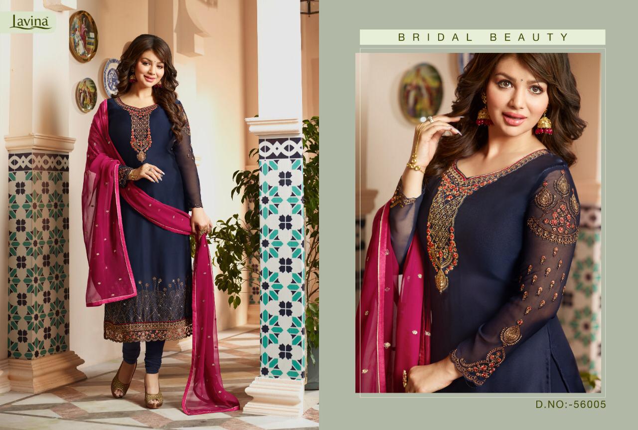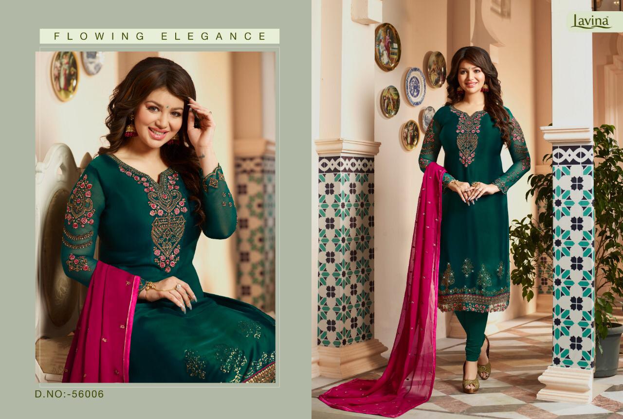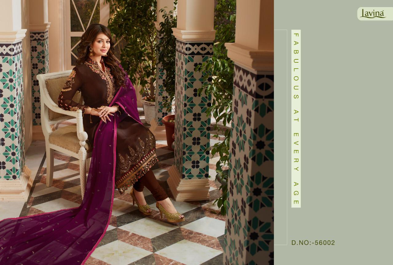 Lavina Vol 56 Series 56001 To 56006 Satin Georgette Embroidered Designer Party Wear Suits Wholesale Supplier India