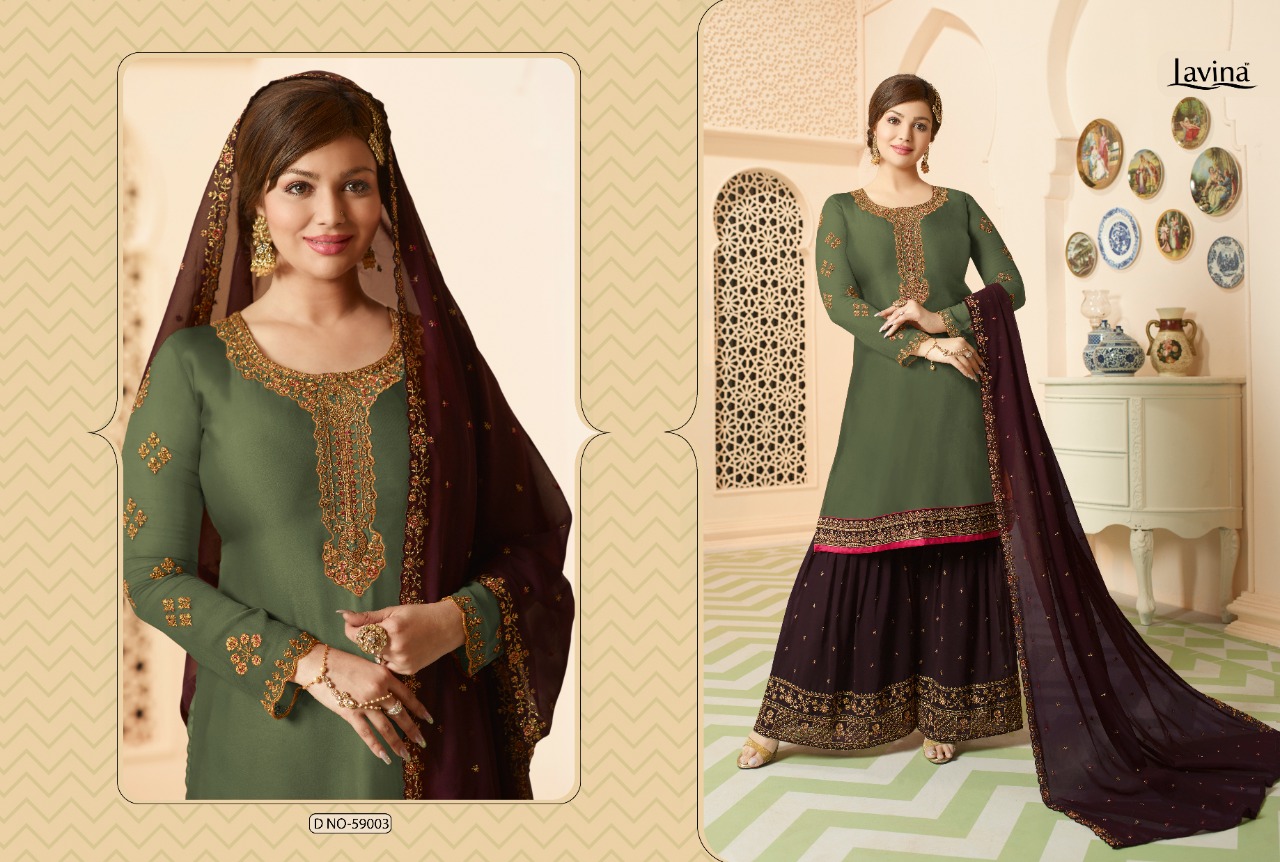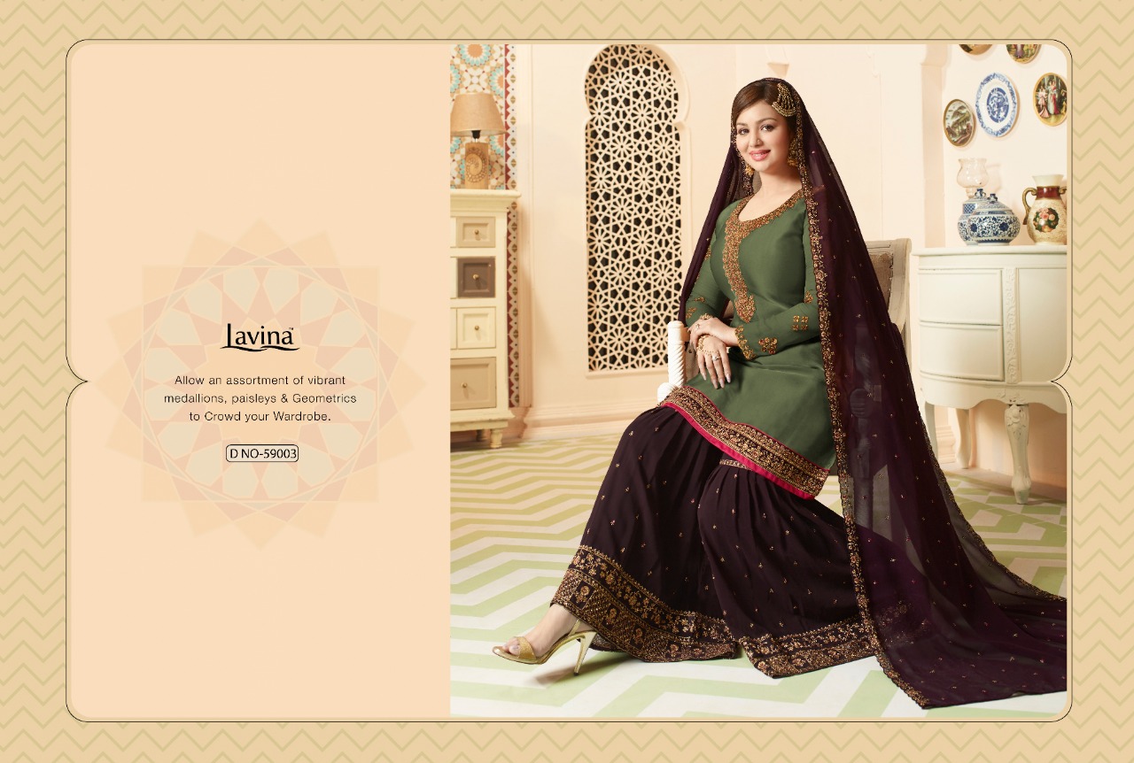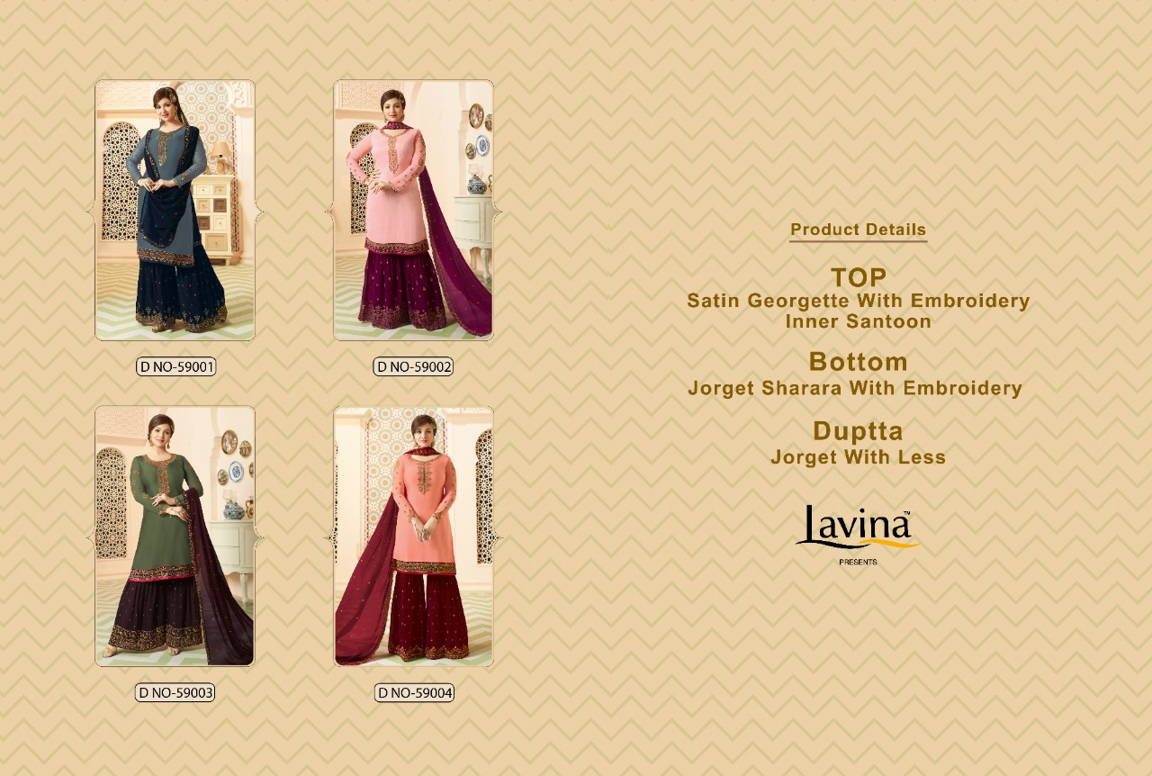 Buy Online Lavina Vol 59 Sharara Hits Series 59001 To 59004 Designer Party Wear Sarara Suits Wholesale Supplier Gujarat 4 Pcs of Full Catalogue at Wholesale Price. Looking for Lavina Vol 59 Sharara Hits Series 59001 To 59004 Designer Party Wear Sarara Suits Wholesale Supplier Gujarat Full Catalouge at Best Price? Buy Now Lavina Vol 59 Sharara Hits Series 59001 To 59004 Designer Party Wear Sarara Suits Wholesale Supplier Gujarat at Wholesale Rate of Rs 7996 with Total 4 Pcs from authroized dealer and supplier of LAVINA Brand. Cost of Each piece is just only Rs 1999 which is very low and affordable price to resale the product in your retail store ,This is Surat based Wholesale Supplier & Dealer of LAVINA Brand. Click on Brand name to Know more about LAVINA Brand's products.Call or Whatsapp on 9898838984 for booking or enquiry