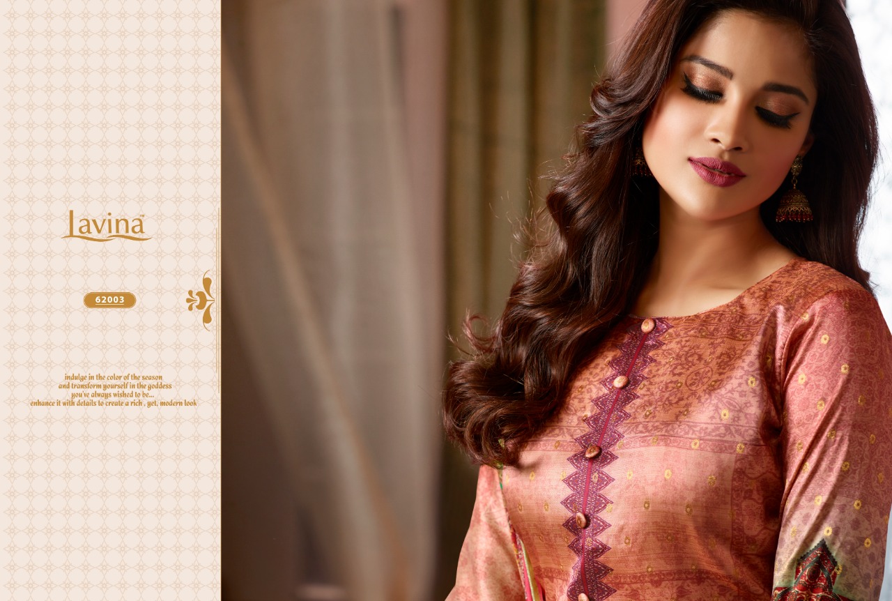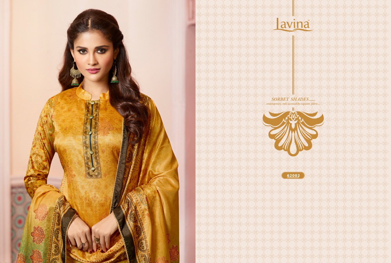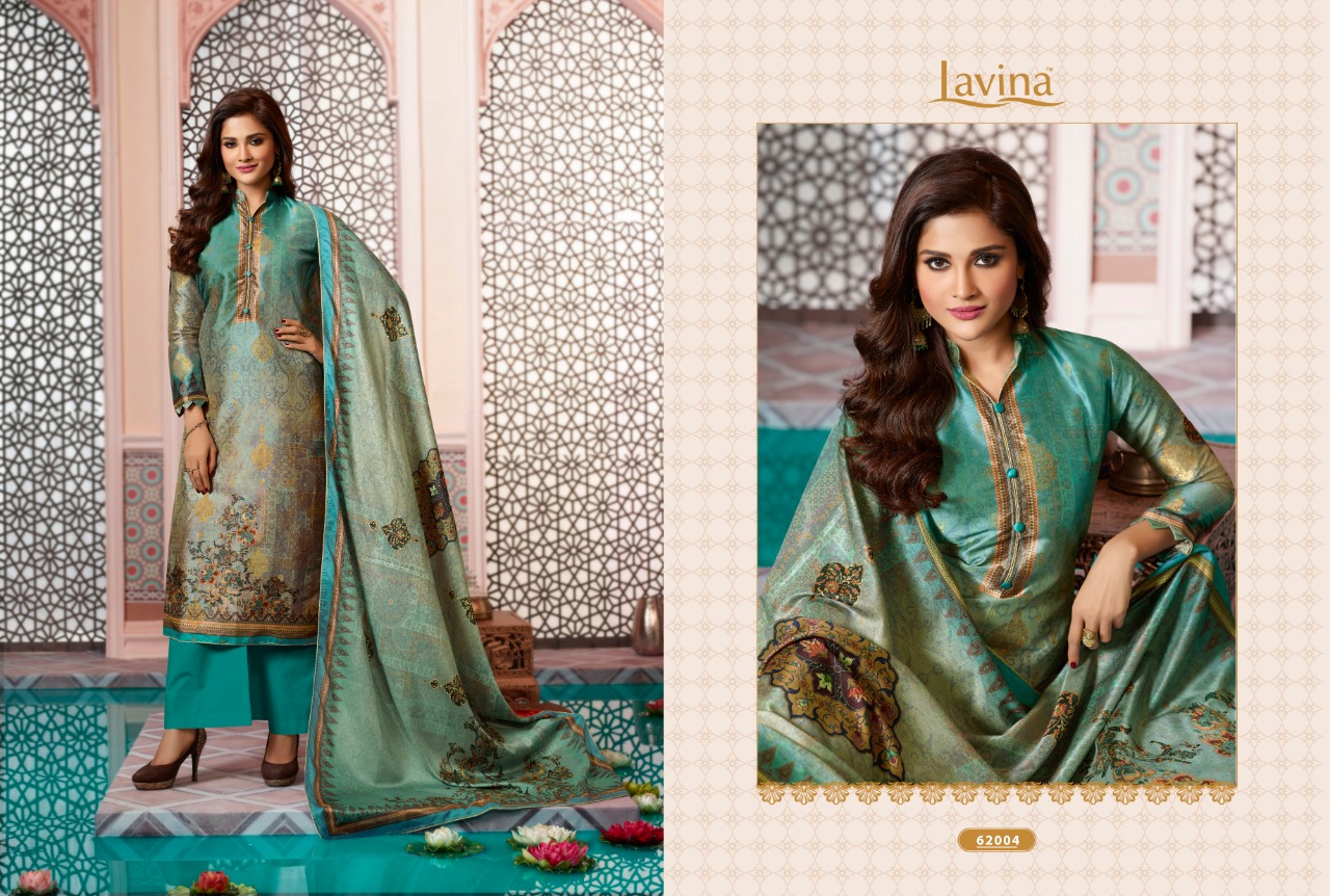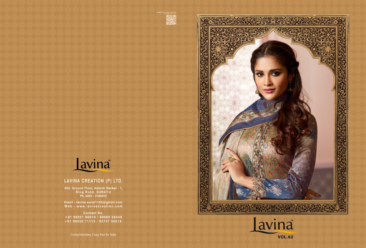 Buy Online Lavina Vol 62 Silk Jaquard Digital Printed Suits Wholesale Supplier Gujarat 5 Pcs of Full Catalogue at Wholesale Price. Looking for Lavina Vol 62 Silk Jaquard Digital Printed Suits Wholesale Supplier Gujarat Full Catalouge at Best Price? Buy Now Lavina Vol 62 Silk Jaquard Digital Printed Suits Wholesale Supplier Gujarat at Wholesale Rate of Rs 7475 with Total 5 Pcs from authroized dealer and supplier of LAVINA Brand. Cost of Each piece is just only Rs 1495 which is very low and affordable price to resale the product in your retail store ,This is Surat based Wholesale Supplier & Dealer of LAVINA Brand. Click on Brand name to Know more about LAVINA Brand's products.Call or Whatsapp on 9898838984 for booking or enquiry