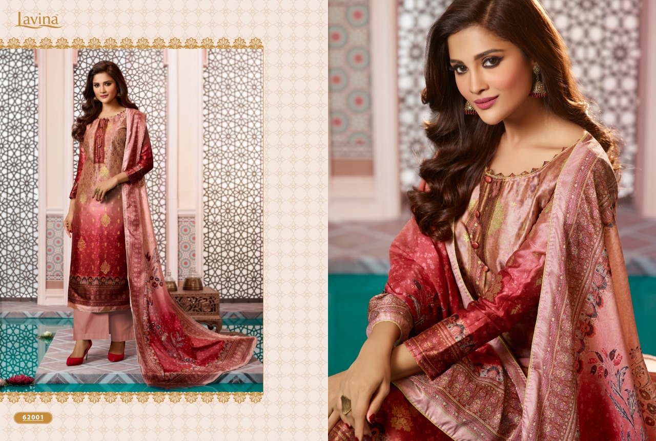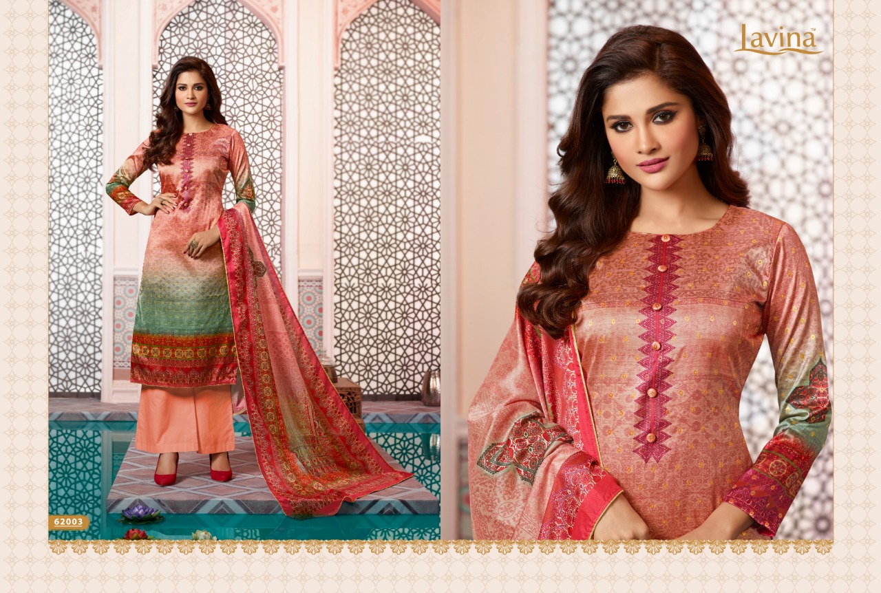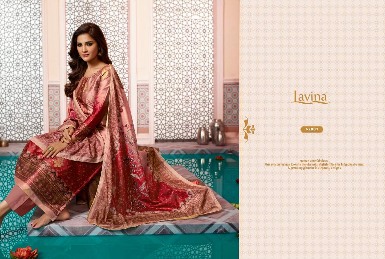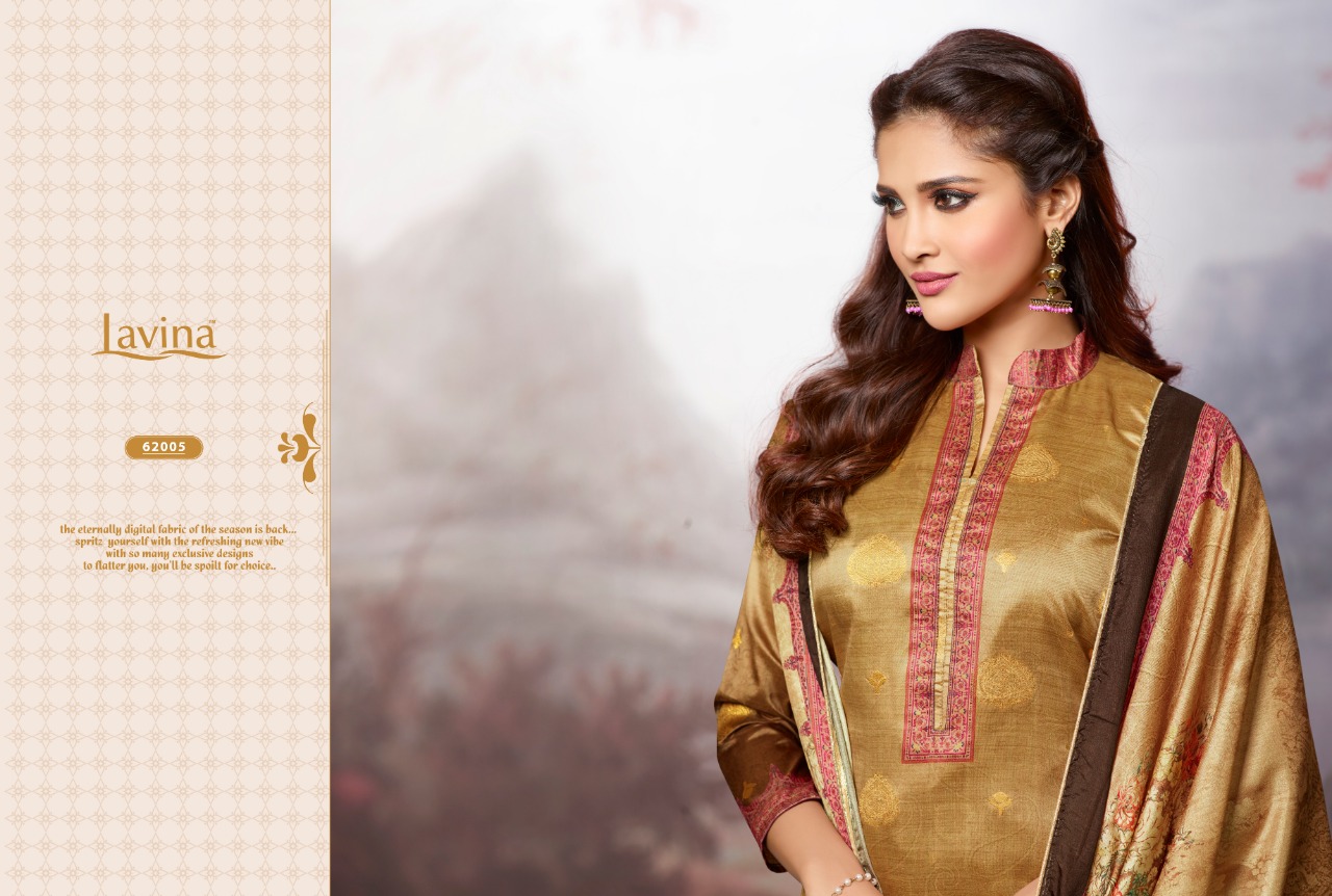 Lavina Vol 62 Silk Jaquard Digital Printed Suits Wholesale Supplier Gujarat