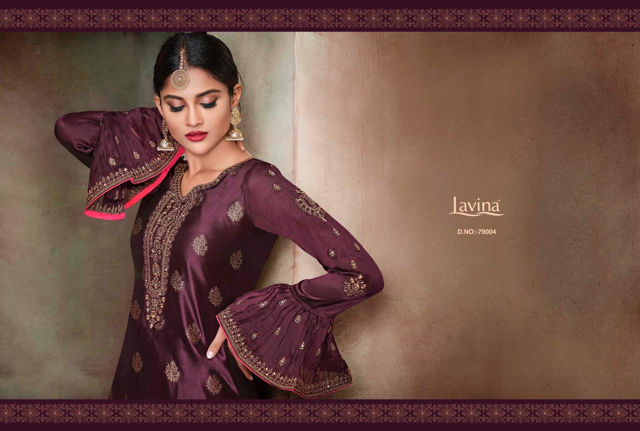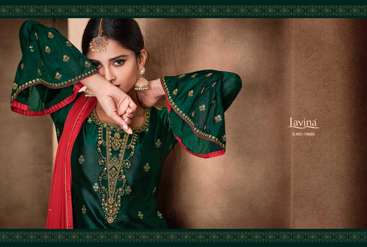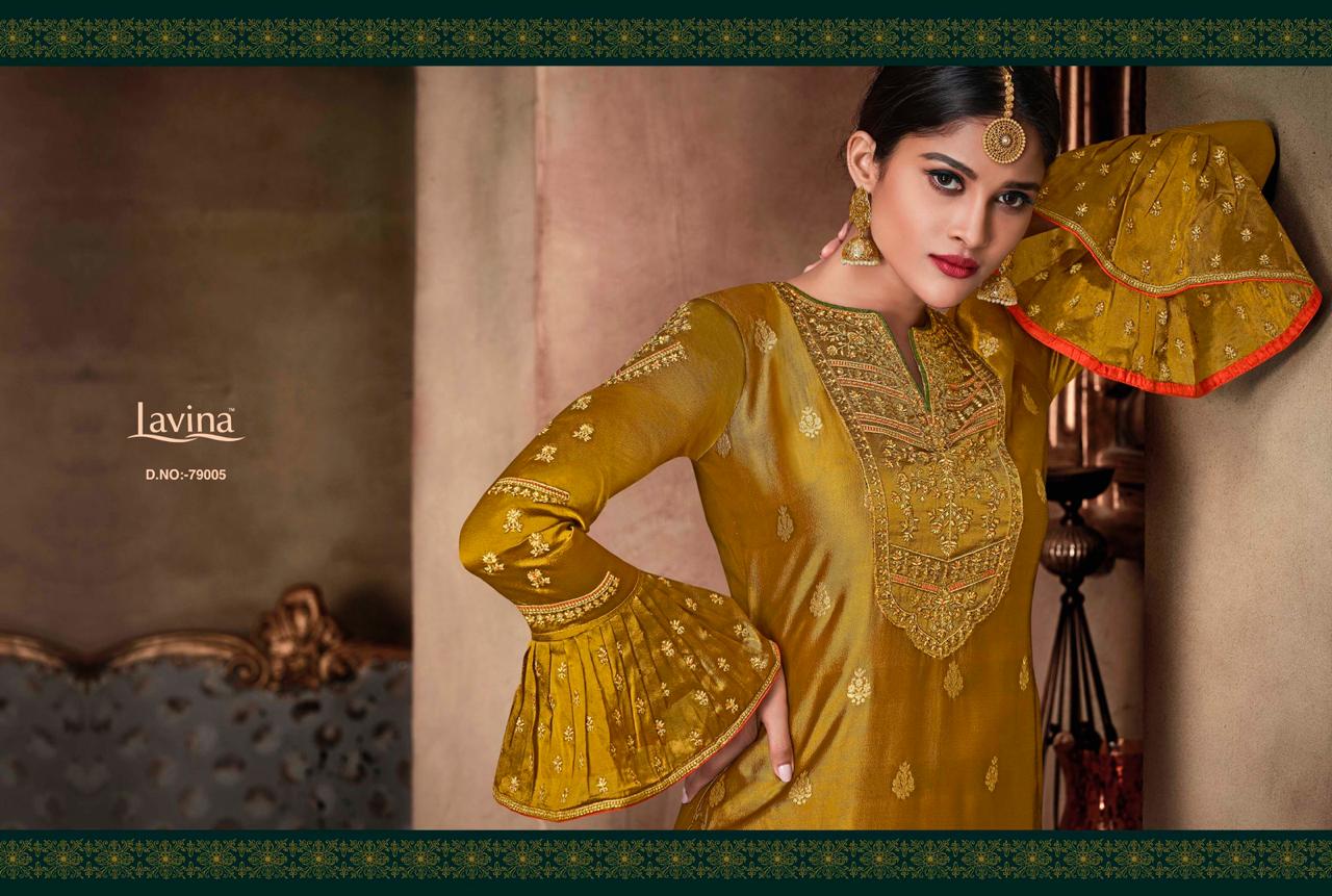 Buy Online Lavina Vol 79 Series 79001 To 79006 Banarasi Jaquard Suits Wholesale Supplier Gujarat 6 Pcs of Full Catalogue at Wholesale Price. Looking for Lavina Vol 79 Series 79001 To 79006 Banarasi Jaquard Suits Wholesale Supplier Gujarat Full Catalouge at Best Price? Buy Now Lavina Vol 79 Series 79001 To 79006 Banarasi Jaquard Suits Wholesale Supplier Gujarat at Wholesale Rate of Rs 10170 with Total 6 Pcs from authroized dealer and supplier of LAVINA Brand. Cost of Each piece is just only Rs 1695 which is very low and affordable price to resale the product in your retail store ,This is Surat based Wholesale Supplier & Dealer of LAVINA Brand. Click on Brand name to Know more about LAVINA Brand's products.Call or Whatsapp on 9898838984 for booking or enquiry