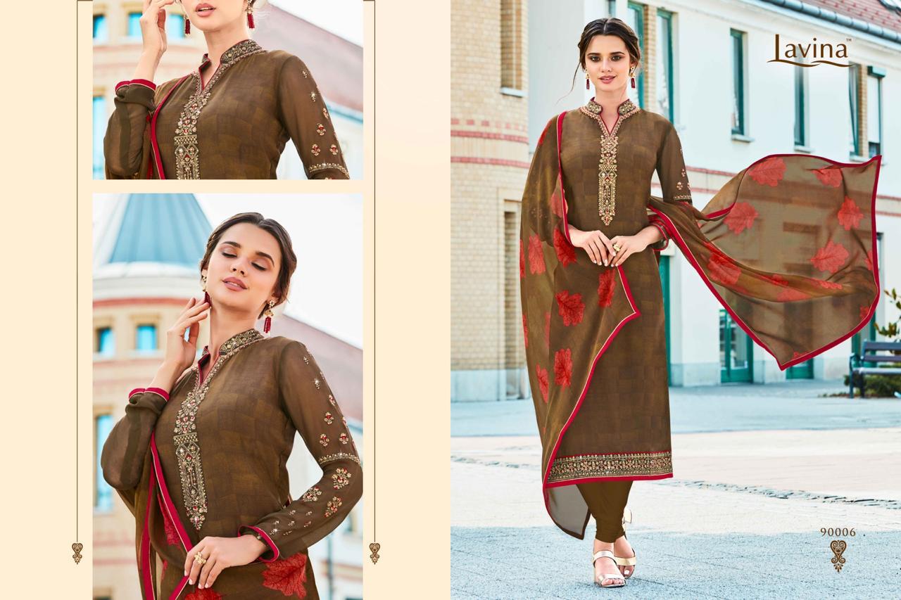 Buy Online Lavina Vol 90 By Lavina Series 90001 To 90007 Designer Party Wear Suits Wholesale Supplier Gujarat 7 Pcs of Full Catalogue at Wholesale Price. Looking for Lavina Vol 90 By Lavina Series 90001 To 90007 Designer Party Wear Suits Wholesale Supplier Gujarat Full Catalouge at Best Price? Buy Now Lavina Vol 90 By Lavina Series 90001 To 90007 Designer Party Wear Suits Wholesale Supplier Gujarat at Wholesale Rate of Rs 6587 with Total 7 Pcs from authroized dealer and supplier of LAVINA Brand. Cost of Each piece is just only Rs 941 which is very low and affordable price to resale the product in your retail store ,This is Surat based Wholesale Supplier & Dealer of LAVINA Brand. Click on Brand name to Know more about LAVINA Brand's products.Call or Whatsapp on 9898838984 for booking or enquiry