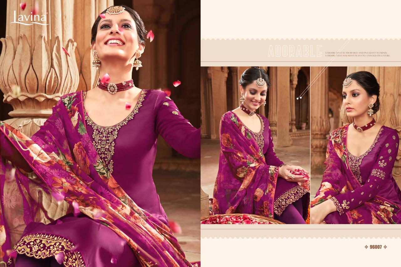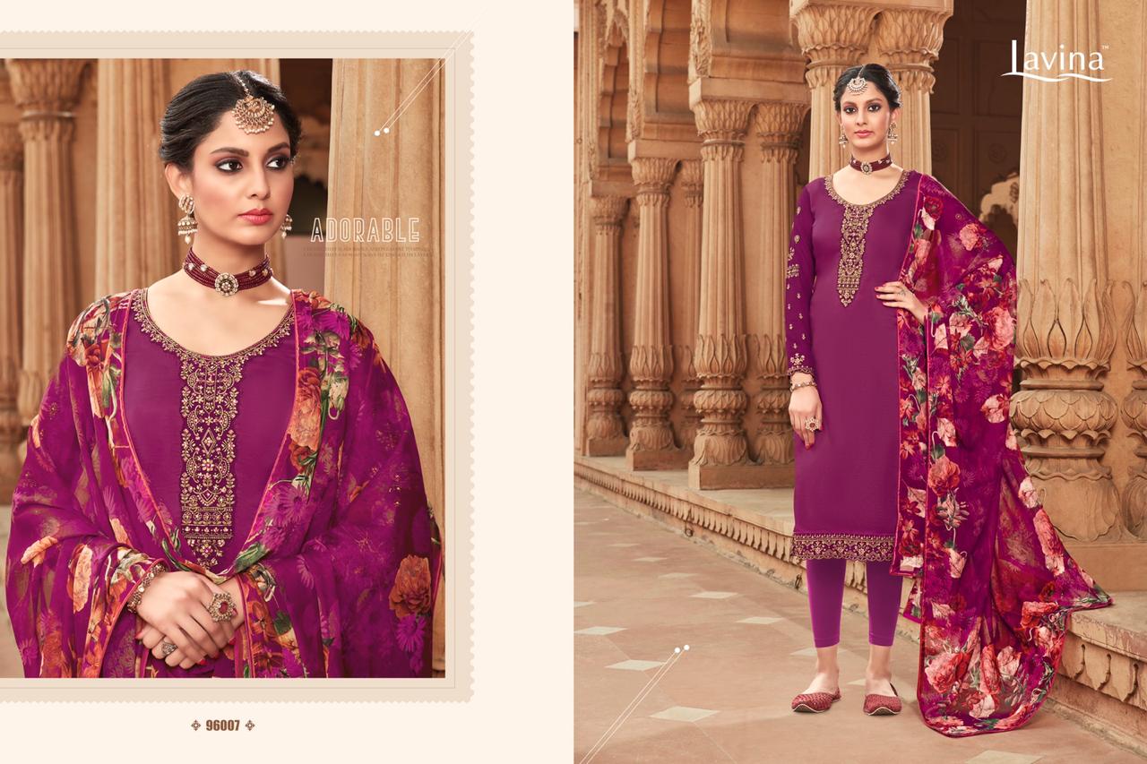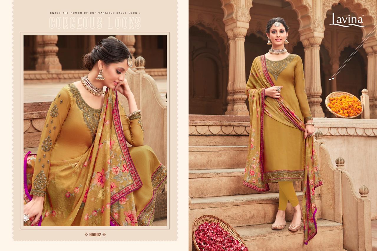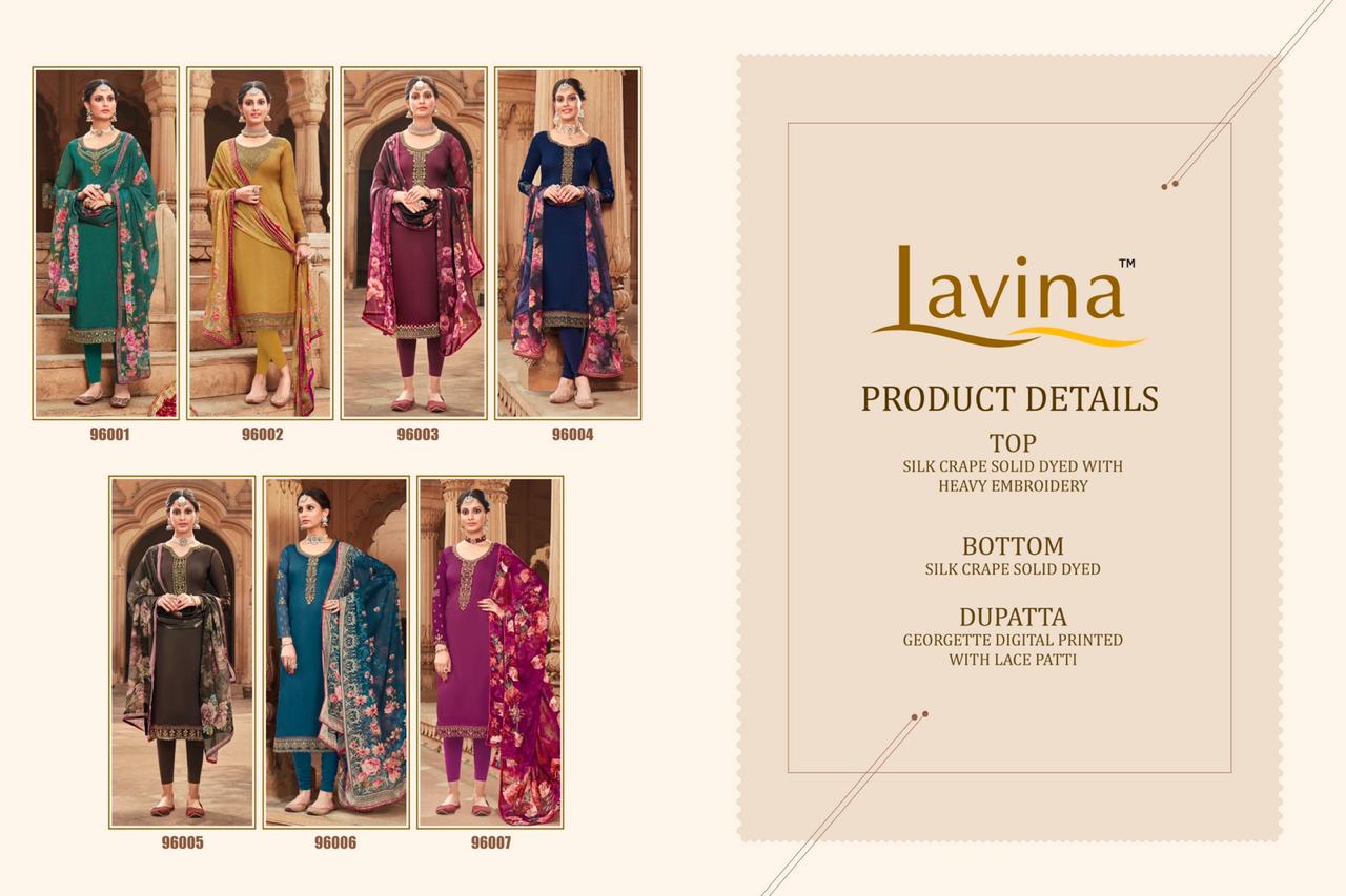 Buy Online Lavina Vol 96 Series 96001 Designer Party Wear Suits Wholesale Supplier Gujarat 7 Pcs of Full Catalogue at Wholesale Price. Looking for Lavina Vol 96 Series 96001 Designer Party Wear Suits Wholesale Supplier Gujarat Full Catalouge at Best Price? Buy Now Lavina Vol 96 Series 96001 Designer Party Wear Suits Wholesale Supplier Gujarat at Wholesale Rate of Rs 7525 with Total 7 Pcs from authroized dealer and supplier of LAVINA Brand. Cost of Each piece is just only Rs 1075 which is very low and affordable price to resale the product in your retail store ,This is Surat based Wholesale Supplier & Dealer of LAVINA Brand. Click on Brand name to Know more about LAVINA Brand's products.Call or Whatsapp on 9898838984 for booking or enquiry