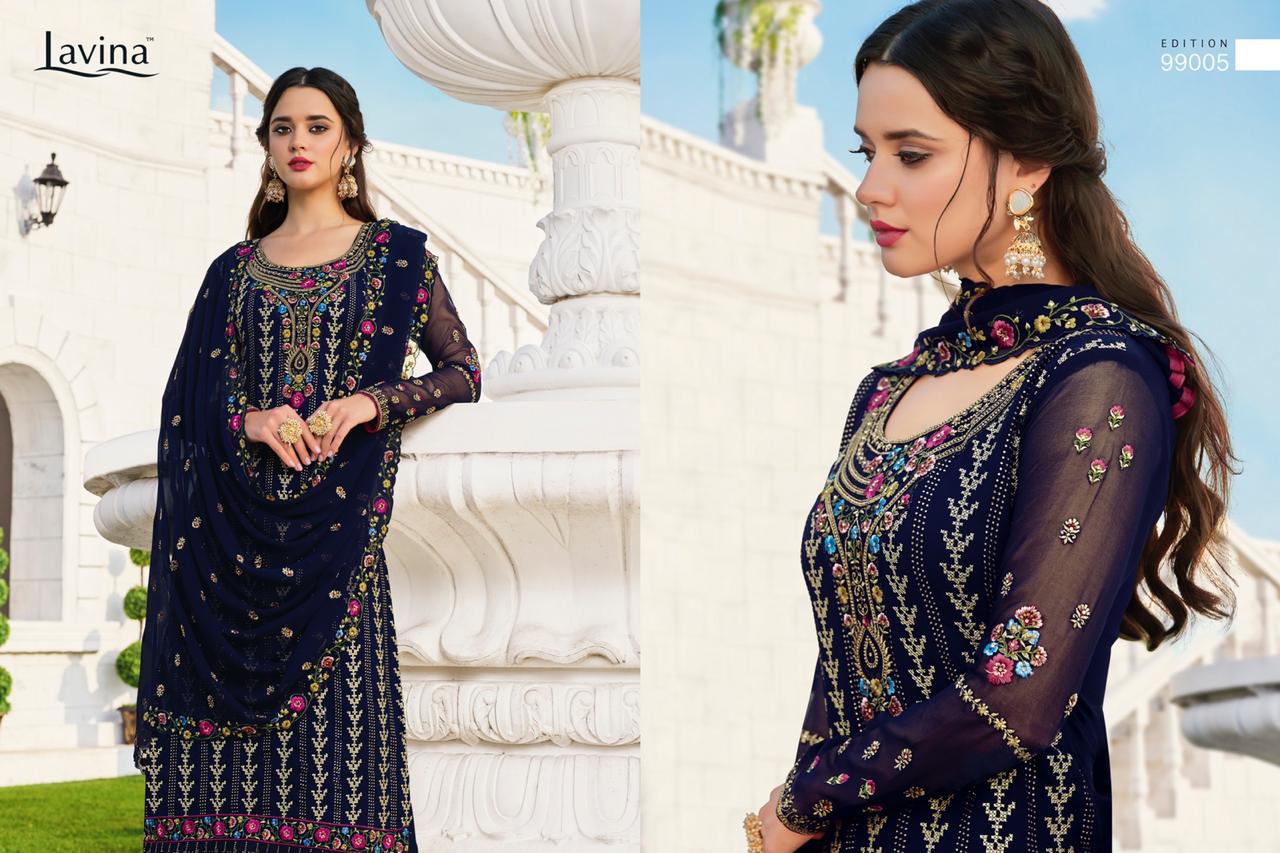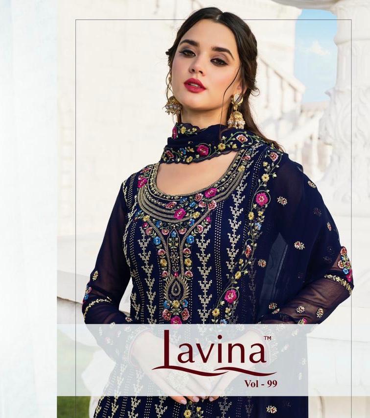 Buy Online Lavina Vol 99 Series 99001 To 99006 Designer Party Wear Suits Wholesale Supplier Gujarat 6 Pcs of Full Catalogue at Wholesale Price. Looking for Lavina Vol 99 Series 99001 To 99006 Designer Party Wear Suits Wholesale Supplier Gujarat Full Catalouge at Best Price? Buy Now Lavina Vol 99 Series 99001 To 99006 Designer Party Wear Suits Wholesale Supplier Gujarat at Wholesale Rate of Rs 11250 with Total 6 Pcs from authroized dealer and supplier of LAVINA Brand. Cost of Each piece is just only Rs 1875 which is very low and affordable price to resale the product in your retail store ,This is Surat based Wholesale Supplier & Dealer of LAVINA Brand. Click on Brand name to Know more about LAVINA Brand's products.Call or Whatsapp on 9898838984 for booking or enquiry