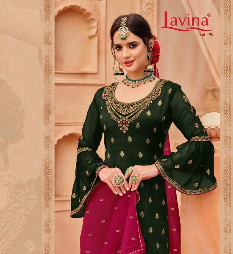 Buy Online Lavinia Vol 98 Series 98001 To 98006 Designer Suits Wholesale Supplier And Dealer Gujarat 6 Pcs of Full Catalogue at Wholesale Price. Looking for Lavinia Vol 98 Series 98001 To 98006 Designer Suits Wholesale Supplier And Dealer Gujarat Full Catalouge at Best Price? Buy Now Lavinia Vol 98 Series 98001 To 98006 Designer Suits Wholesale Supplier And Dealer Gujarat at Wholesale Rate of Rs 10770 with Total 6 Pcs from authroized dealer and supplier of LAVINA Brand. Cost of Each piece is just only Rs 1795 which is very low and affordable price to resale the product in your retail store ,This is Surat based Wholesale Supplier & Dealer of LAVINA Brand. Click on Brand name to Know more about LAVINA Brand's products.Call or Whatsapp on 9898838984 for booking or enquiry
