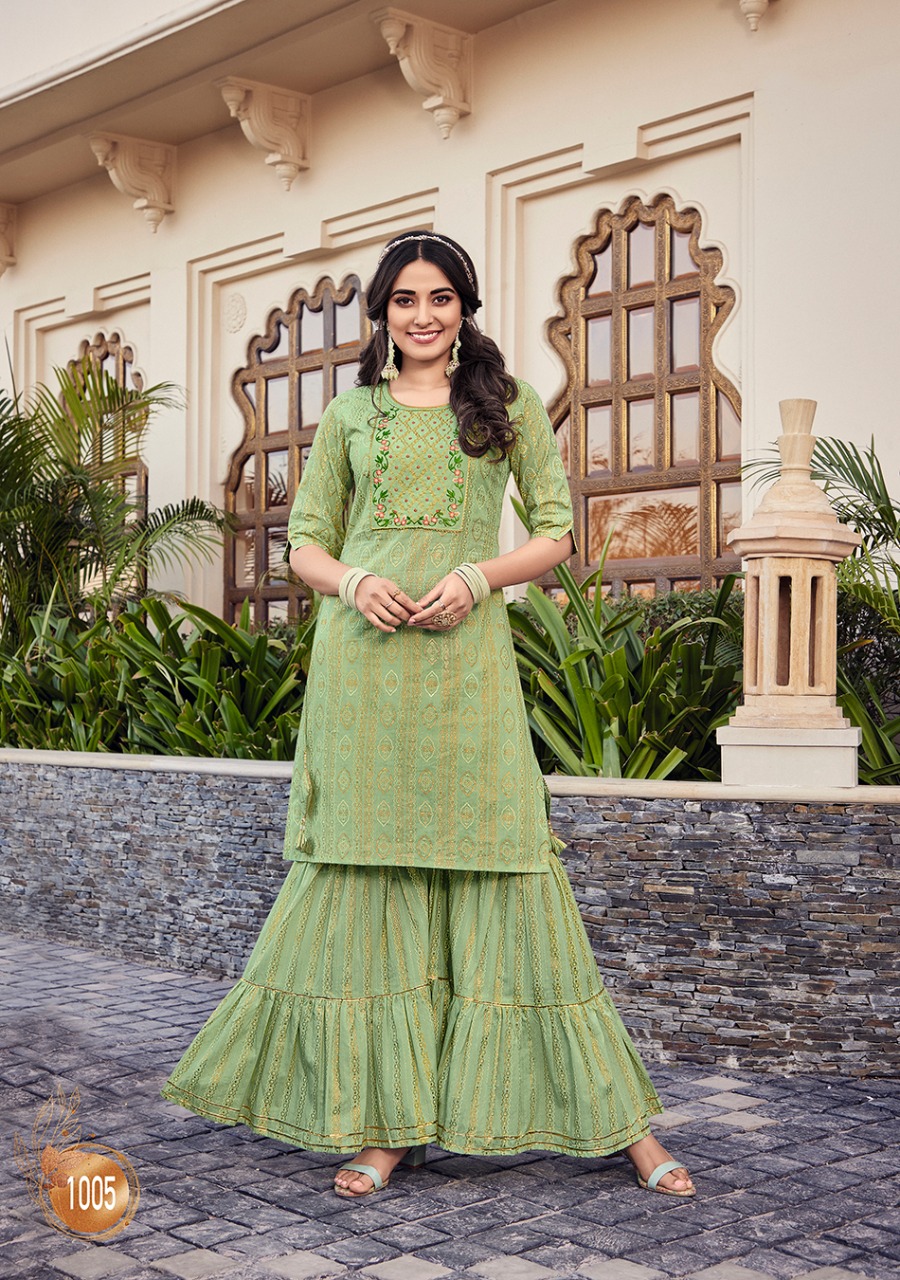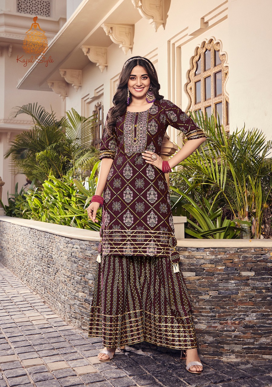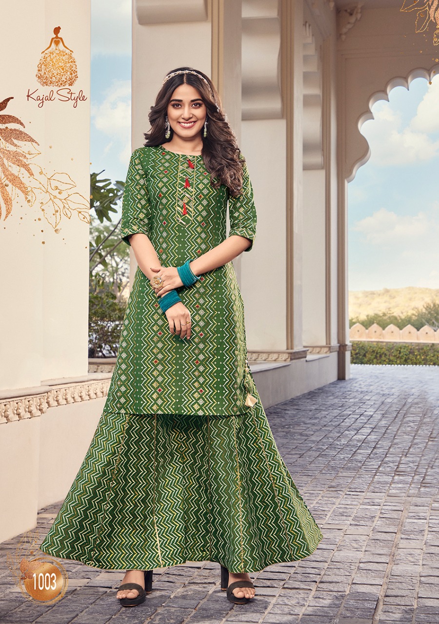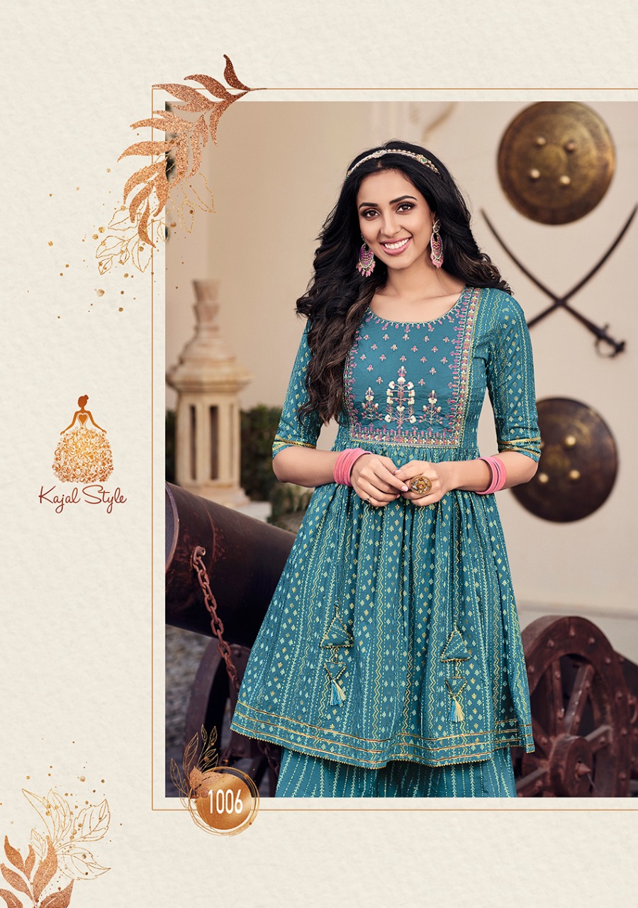 ? ? ? *KAJAL STYLE* Catalogue name: ? *Lavish Vol.1* ? (Kurti & Sharara) ?Details: ?Pattern :- *Kurti with Flair Sharara* ?Fabrics - *?? Heavy Cotton* *?? Fancy Embroidery work* *?? Classy Prints* ?Size - *S M L XL 2XL 3XL 4XL* ? Length Â?> *38 to 40* ?Designs - *8?? pcs* *RATE :- 8??4??9?? + GST* ??????hurryyy uppp....Book your order now...????????? Regards, *-VARNIRAJ INDUSTRIES PVT LTD-* |