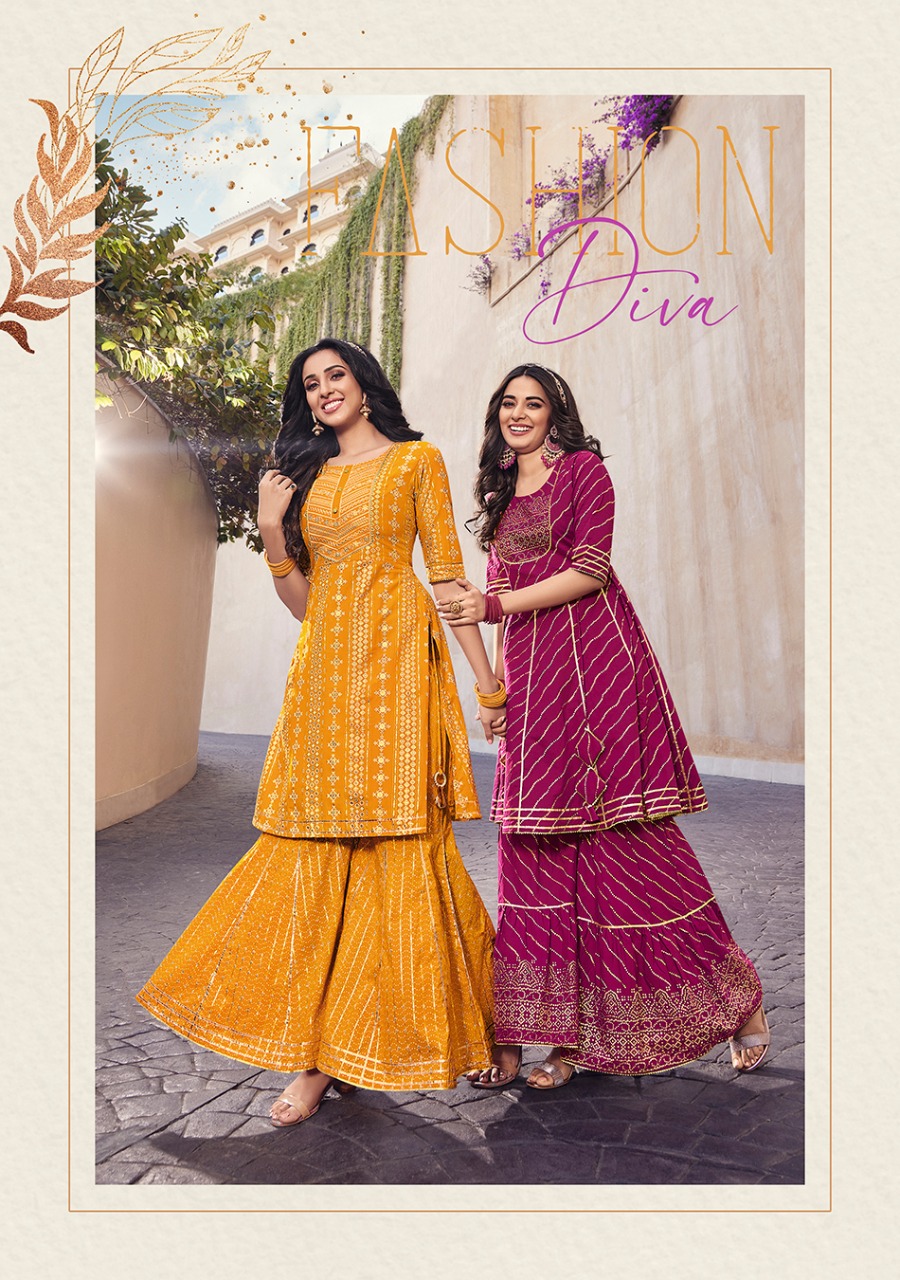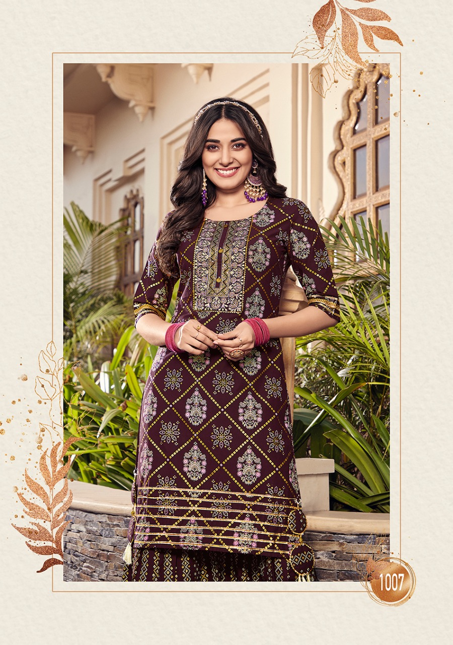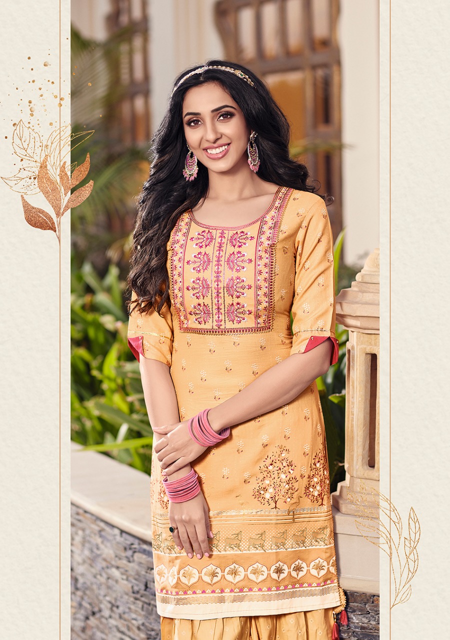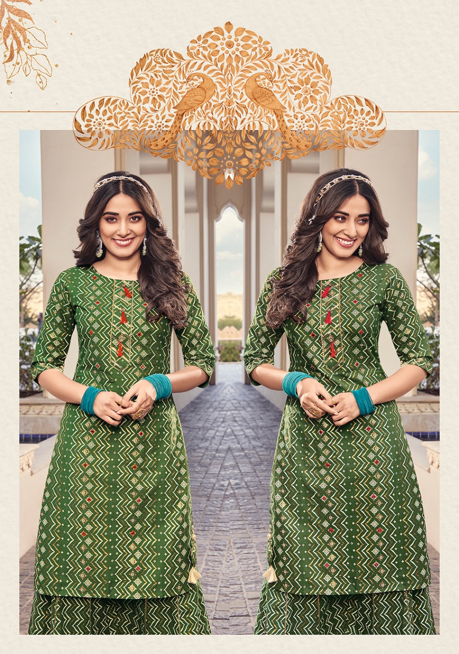 ? ? ? *KAJAL STYLE* Catalogue name: ? *Lavish Vol.1* ? (Kurti & Sharara) ?Details: ?Pattern :- *Kurti with Flair Sharara* ?Fabrics - *?? Heavy Cotton* *?? Fancy Embroidery work* *?? Classy Prints* ?Size - *S M L XL 2XL 3XL 4XL* ? Length Â?> *38 to 40* ?Designs - *8?? pcs* *RATE :- 8??4??9?? + GST* ??????hurryyy uppp....Book your order now...????????? Regards, *-VARNIRAJ INDUSTRIES PVT LTD-* |