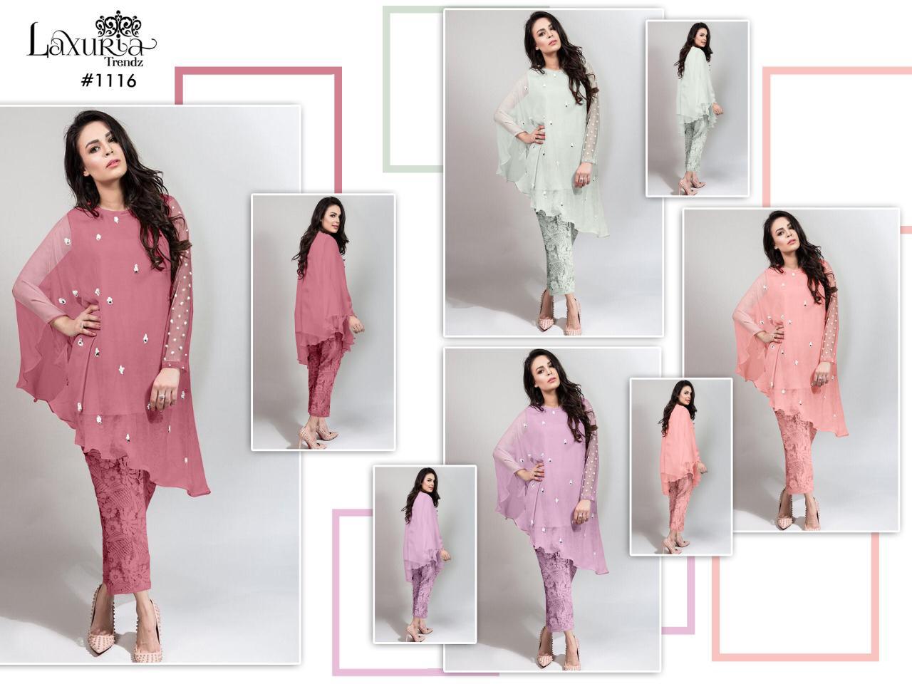 Buy Online Laxuria Trendz 1116 Kurtis With Bottom Wholesale Supplier And Dealer Surat 4 Pcs of Full Catalogue at Wholesale Price. Looking for Laxuria Trendz 1116 Kurtis With Bottom Wholesale Supplier And Dealer Surat Full Catalouge at Best Price? Buy Now Laxuria Trendz 1116 Kurtis With Bottom Wholesale Supplier And Dealer Surat at Wholesale Rate of Rs 4200 with Total 4 Pcs from authroized dealer and supplier of Brand. Cost of Each piece is just only Rs 1050 which is very low and affordable price to resale the product in your retail store ,This is Surat based Wholesale Supplier & Dealer of Brand. Click on Brand name to Know more about Brand's products.Call or Whatsapp on 9898838984 for booking or enquiry