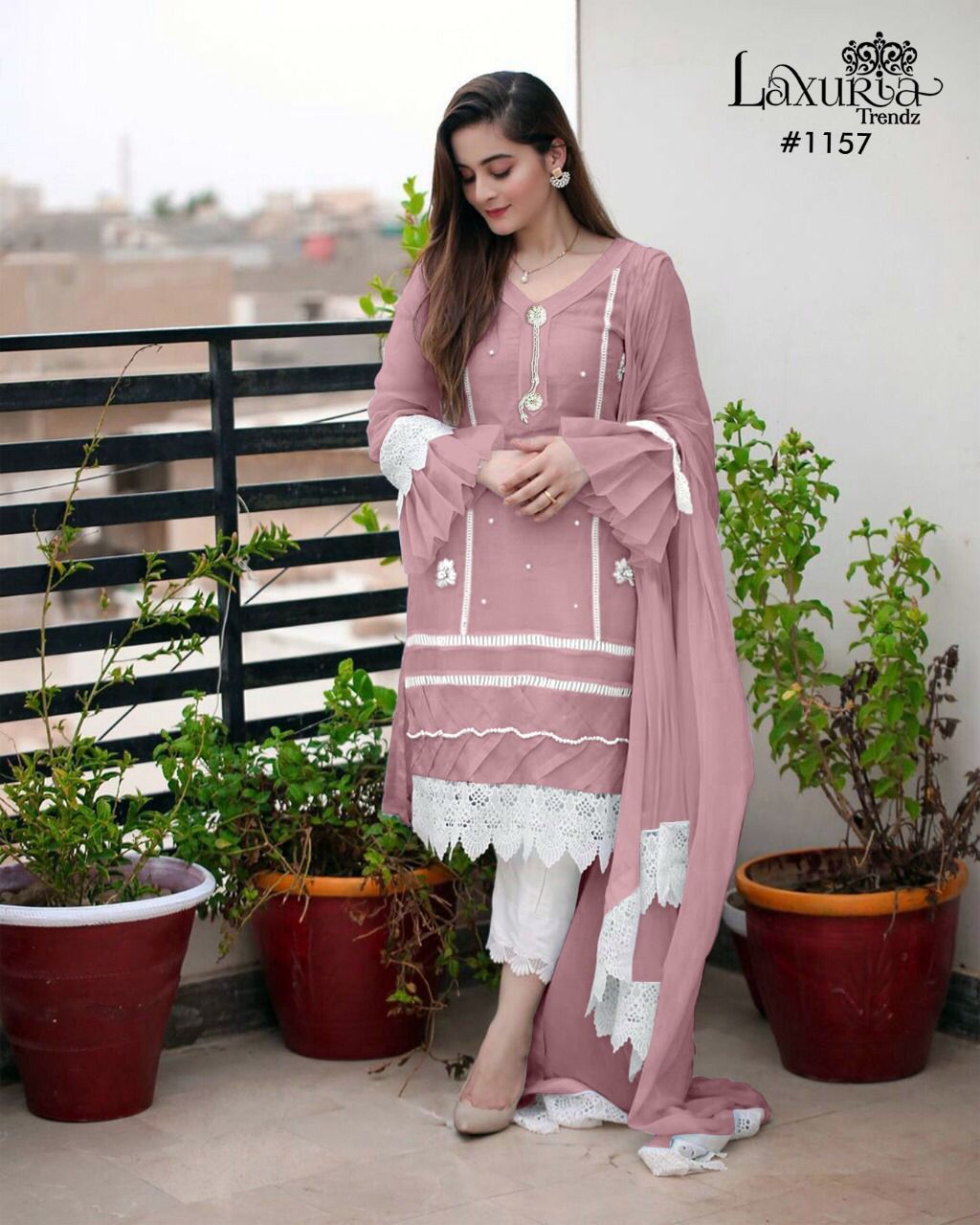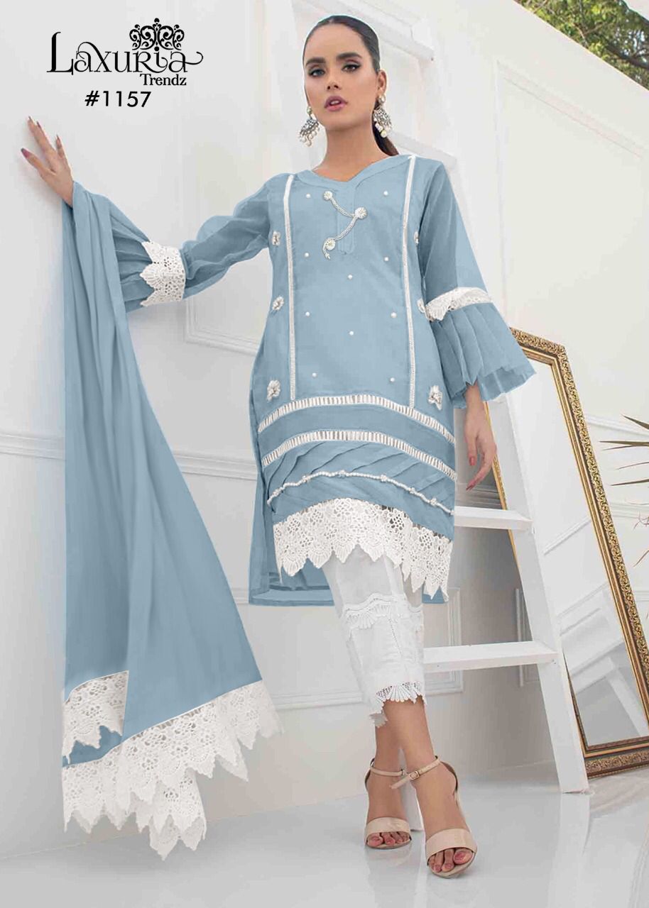 Buy Online Laxuria Trendz D No 1157 Wholesaler Supplier From Surat 2 Pcs of Full Catalogue at Wholesale Price. Looking for Laxuria Trendz D No 1157 Wholesaler Supplier From Surat Full Catalouge at Best Price? Buy Now Laxuria Trendz D No 1157 Wholesaler Supplier From Surat at Wholesale Rate of Rs 2598 with Total 2 Pcs from authroized dealer and supplier of Brand. Cost of Each piece is just only Rs 1299 which is very low and affordable price to resale the product in your retail store ,This is Surat based Wholesale Supplier & Dealer of Brand. Click on Brand name to Know more about Brand's products.Call or Whatsapp on 9898838984 for booking or enquiry