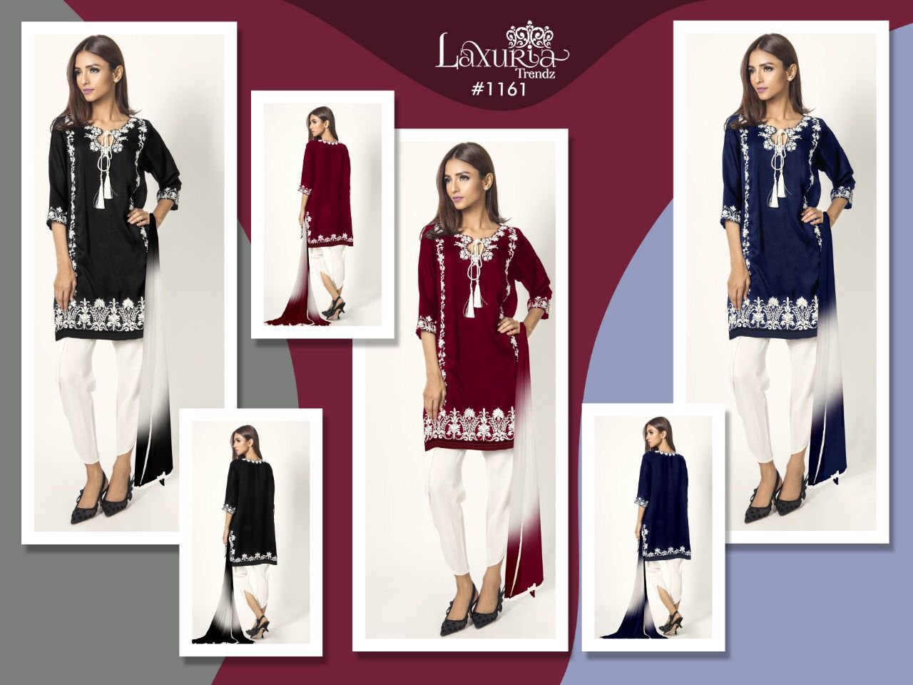 Buy Online Laxuria Trendz D No 1161 Wholesaler Supplier From Surat 3 Pcs of Full Catalogue at Wholesale Price. Looking for Laxuria Trendz D No 1161 Wholesaler Supplier From Surat Full Catalouge at Best Price? Buy Now Laxuria Trendz D No 1161 Wholesaler Supplier From Surat at Wholesale Rate of Rs 2997 with Total 3 Pcs from authroized dealer and supplier of Brand. Cost of Each piece is just only Rs 999 which is very low and affordable price to resale the product in your retail store ,This is Surat based Wholesale Supplier & Dealer of Brand. Click on Brand name to Know more about Brand's products.Call or Whatsapp on 9898838984 for booking or enquiry