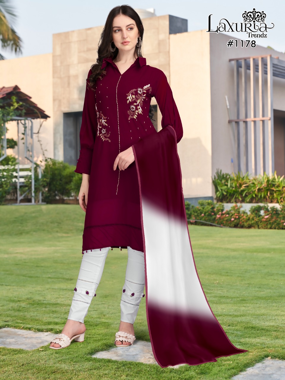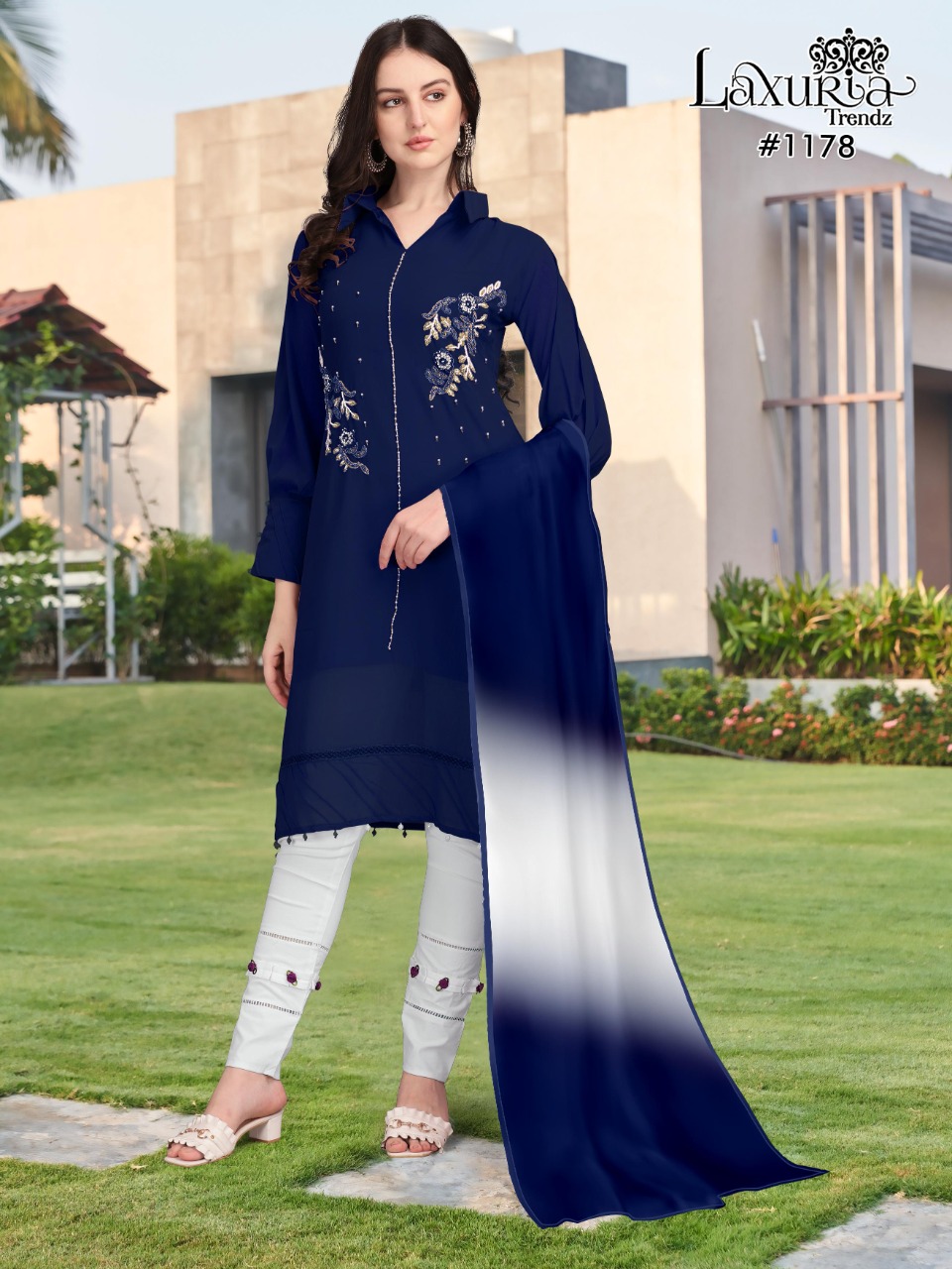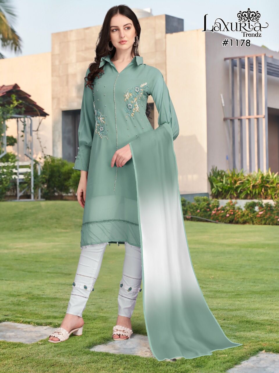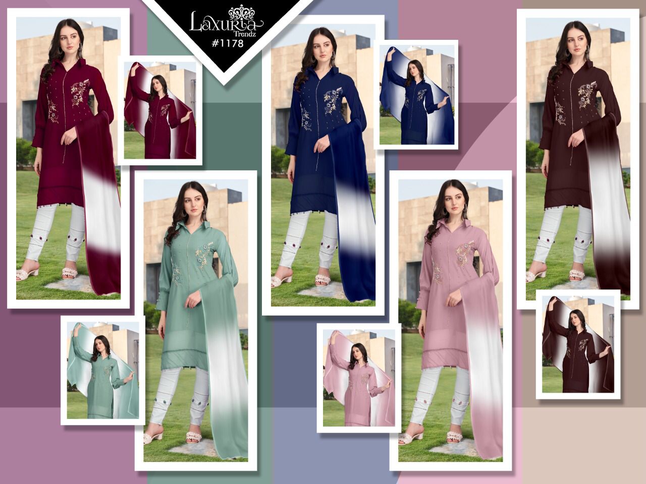Buy Online Laxuria Trendz D No 1178 Pakistani Style Top Bottom With Dupatta Single And Set Stockiest And Supplier From Surat 5 Pcs of Full Catalogue at Wholesale Price. Looking for Laxuria Trendz D No 1178 Pakistani Style Top Bottom With Dupatta Single And Set Stockiest And Supplier From Surat Full Catalouge at Best Price? Buy Now Laxuria Trendz D No 1178 Pakistani Style Top Bottom With Dupatta Single And Set Stockiest And Supplier From Surat at Wholesale Rate of Rs 6750 with Total 5 Pcs from authroized dealer and supplier of Brand. Cost of Each piece is just only Rs 1350 which is very low and affordable price to resale the product in your retail store ,This is Surat based Wholesale Supplier & Dealer of Brand. Click on Brand name to Know more about Brand's products.Call or Whatsapp on 9898838984 for booking or enquiry