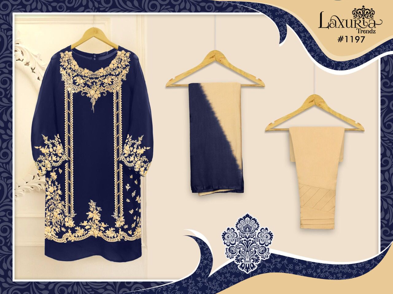 Buy Online Laxuria Trendz D No 1197 Top Bottom With Dupatta Pakistani Collection Manufacturer Traders And Dealer From India 3 Pcs of Full Catalogue at Wholesale Price. Looking for Laxuria Trendz D No 1197 Top Bottom With Dupatta Pakistani Collection Manufacturer Traders And Dealer From India Full Catalouge at Best Price? Buy Now Laxuria Trendz D No 1197 Top Bottom With Dupatta Pakistani Collection Manufacturer Traders And Dealer From India at Wholesale Rate of Rs 4497 with Total 3 Pcs from authroized dealer and supplier of Brand. Cost of Each piece is just only Rs 1499 which is very low and affordable price to resale the product in your retail store ,This is Surat based Wholesale Supplier & Dealer of Brand. Click on Brand name to Know more about Brand's products.Call or Whatsapp on 9898838984 for booking or enquiry