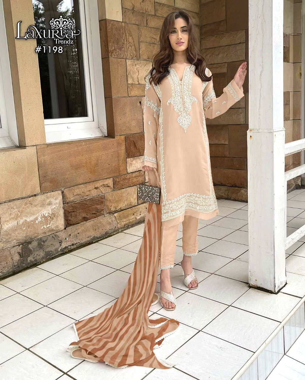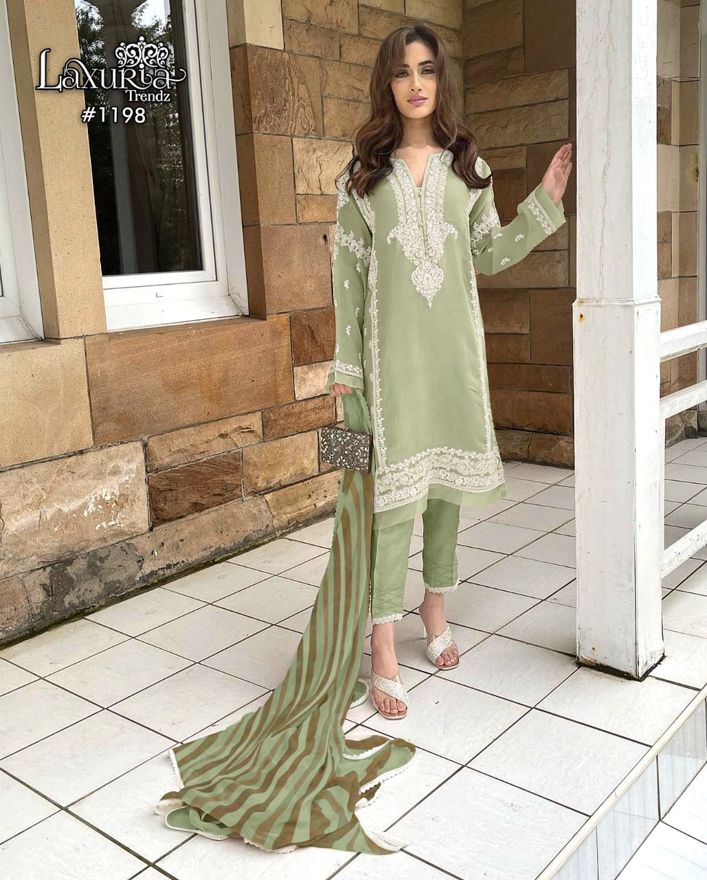 Buy Online Laxuria Trendz D No 1198 Kurti Pant With Dupatta Pakistani Collection Manufacturer Traders And Dealer From India 2 Pcs of Full Catalogue at Wholesale Price. Looking for Laxuria Trendz D No 1198 Kurti Pant With Dupatta Pakistani Collection Manufacturer Traders And Dealer From India Full Catalouge at Best Price? Buy Now Laxuria Trendz D No 1198 Kurti Pant With Dupatta Pakistani Collection Manufacturer Traders And Dealer From India at Wholesale Rate of Rs 2900 with Total 2 Pcs from authroized dealer and supplier of Brand. Cost of Each piece is just only Rs 1450 which is very low and affordable price to resale the product in your retail store ,This is Surat based Wholesale Supplier & Dealer of Brand. Click on Brand name to Know more about Brand's products.Call or Whatsapp on 9898838984 for booking or enquiry
