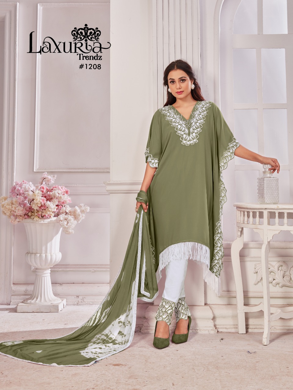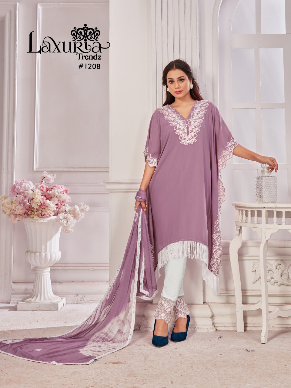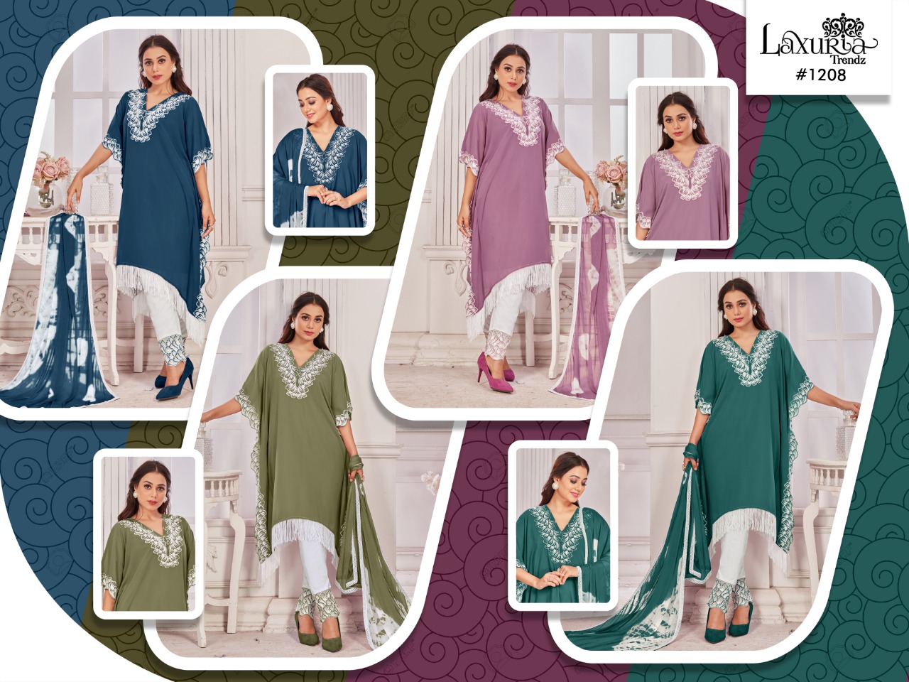 Buy Online Laxuria Trendz D No 1208 Georgette Top Bottom With Dupatta Pakistani Collection Manufacturer Traders And Dealer From India 4 Pcs of Full Catalogue at Wholesale Price. Looking for Laxuria Trendz D No 1208 Georgette Top Bottom With Dupatta Pakistani Collection Manufacturer Traders And Dealer From India Full Catalouge at Best Price? Buy Now Laxuria Trendz D No 1208 Georgette Top Bottom With Dupatta Pakistani Collection Manufacturer Traders And Dealer From India at Wholesale Rate of Rs 5000 with Total 4 Pcs from authroized dealer and supplier of Brand. Cost of Each piece is just only Rs 1250 which is very low and affordable price to resale the product in your retail store ,This is Surat based Wholesale Supplier & Dealer of Brand. Click on Brand name to Know more about Brand's products.Call or Whatsapp on 9898838984 for booking or enquiry