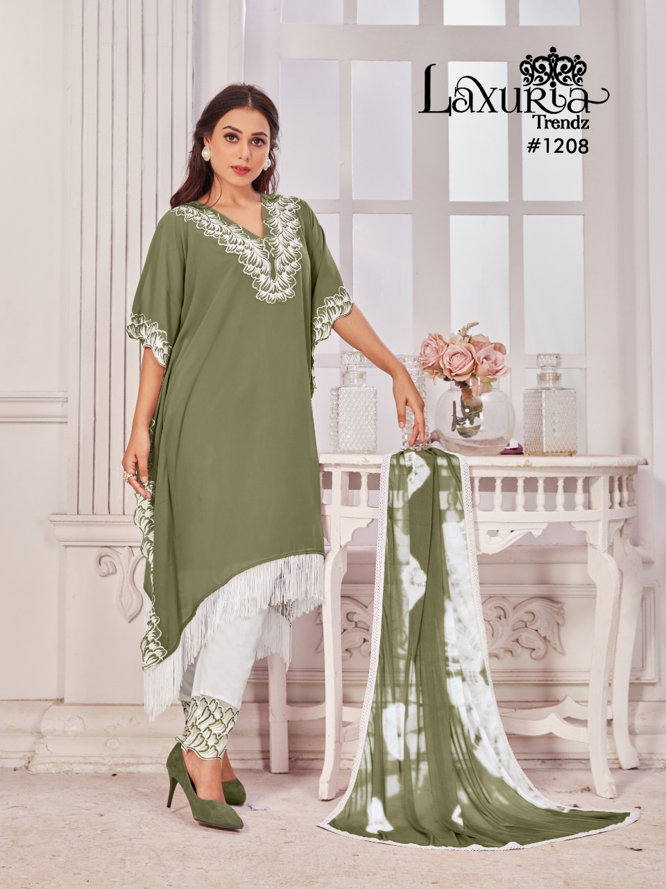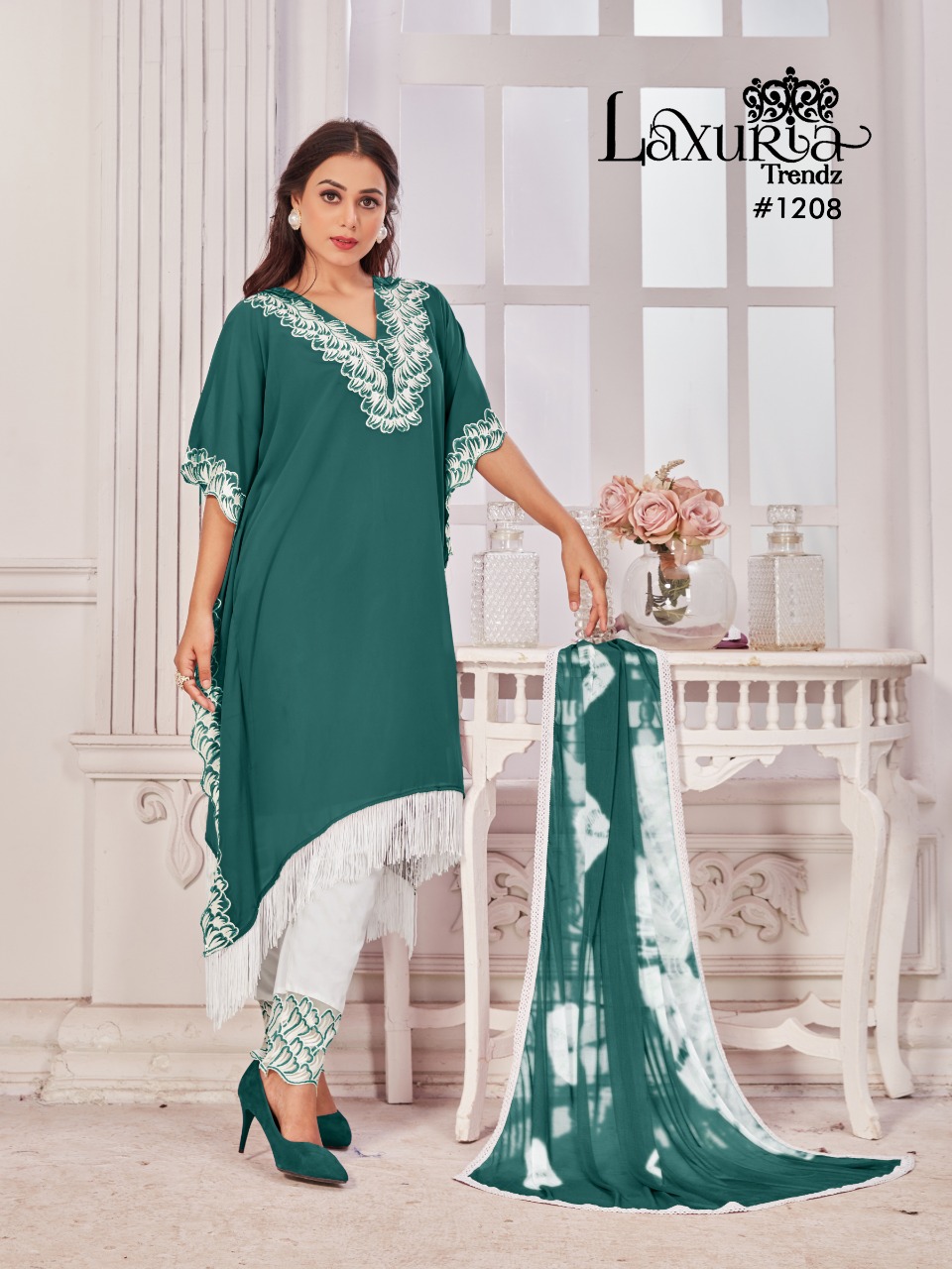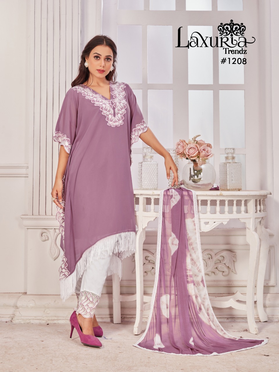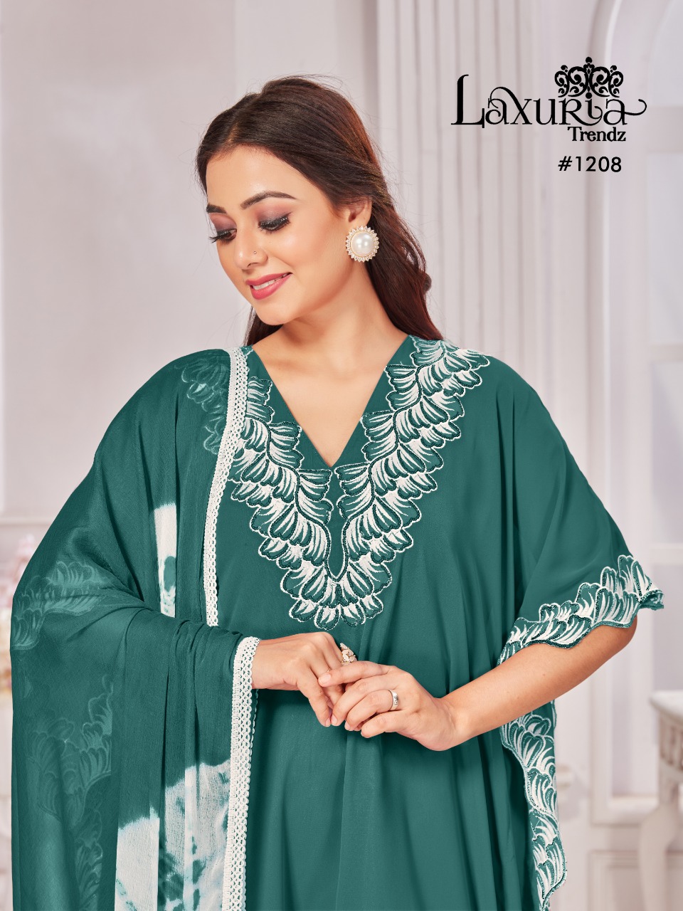Buy Online Laxuria Trendz D No 1208 Georgette Top Bottom With Dupatta Pakistani Collection Manufacturer Traders And Dealer From India 4 Pcs of Full Catalogue at Wholesale Price. Looking for Laxuria Trendz D No 1208 Georgette Top Bottom With Dupatta Pakistani Collection Manufacturer Traders And Dealer From India Full Catalouge at Best Price? Buy Now Laxuria Trendz D No 1208 Georgette Top Bottom With Dupatta Pakistani Collection Manufacturer Traders And Dealer From India at Wholesale Rate of Rs 5000 with Total 4 Pcs from authroized dealer and supplier of Brand. Cost of Each piece is just only Rs 1250 which is very low and affordable price to resale the product in your retail store ,This is Surat based Wholesale Supplier & Dealer of Brand. Click on Brand name to Know more about Brand's products.Call or Whatsapp on 9898838984 for booking or enquiry