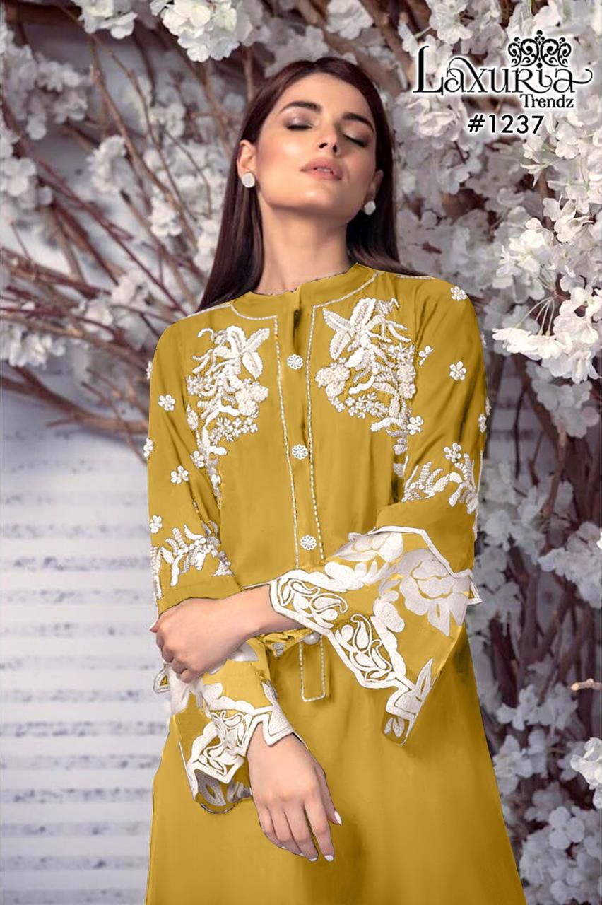 Buy Online Laxuria Trendz D No 1237 Pret Collection Manufacturer Surat 4 Pcs of Full Catalogue at Wholesale Price. Looking for Laxuria Trendz D No 1237 Pret Collection Manufacturer Surat Full Catalouge at Best Price? Buy Now Laxuria Trendz D No 1237 Pret Collection Manufacturer Surat at Wholesale Rate of Rs 5600 with Total 4 Pcs from authroized dealer and supplier of Brand. Cost of Each piece is just only Rs 1400 which is very low and affordable price to resale the product in your retail store ,This is Surat based Wholesale Supplier & Dealer of Brand. Click on Brand name to Know more about Brand's products.Call or Whatsapp on 9898838984 for booking or enquiry
