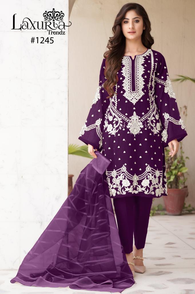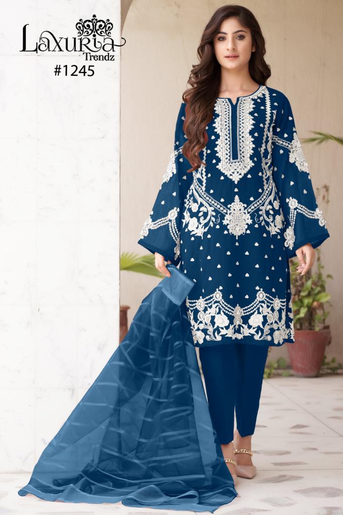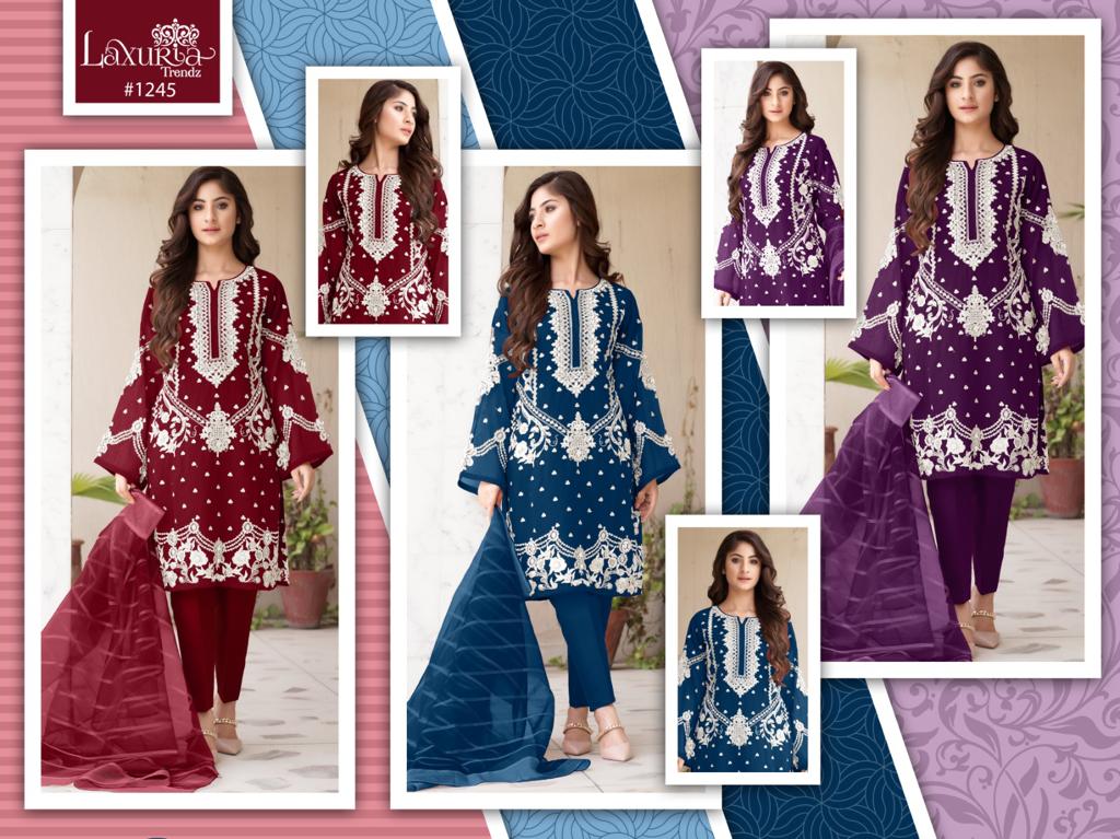 Buy Online Laxuria Trendz D No 1245 3 Pcs of Full Catalogue at Wholesale Price. Looking for Laxuria Trendz D No 1245 Full Catalouge at Best Price? Buy Now Laxuria Trendz D No 1245 at Wholesale Rate of Rs 3750 with Total 3 Pcs from authroized dealer and supplier of Brand. Cost of Each piece is just only Rs 1250 which is very low and affordable price to resale the product in your retail store ,This is Surat based Wholesale Supplier & Dealer of Brand. Click on Brand name to Know more about Brand's products.Call or Whatsapp on 9898838984 for booking or enquiry